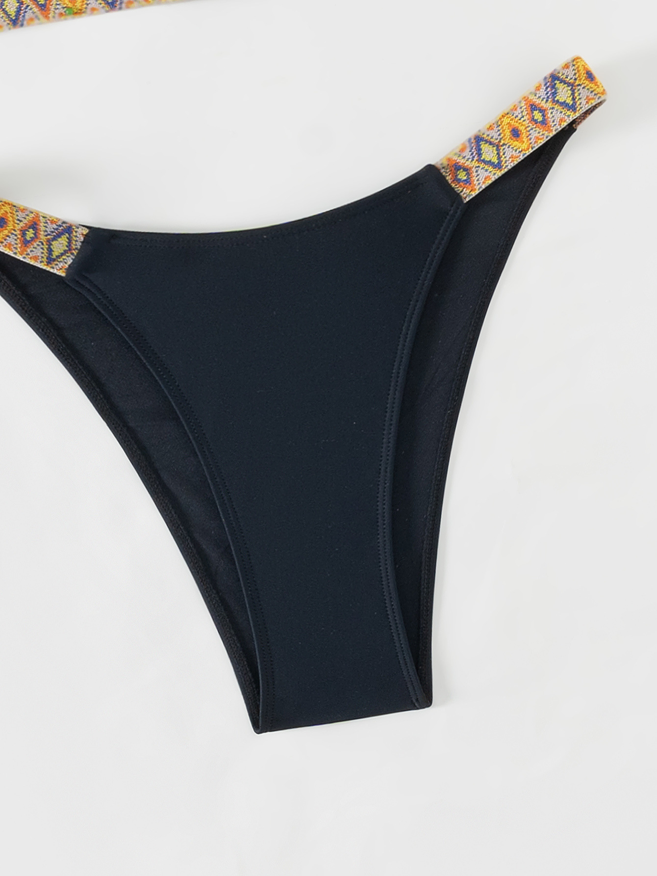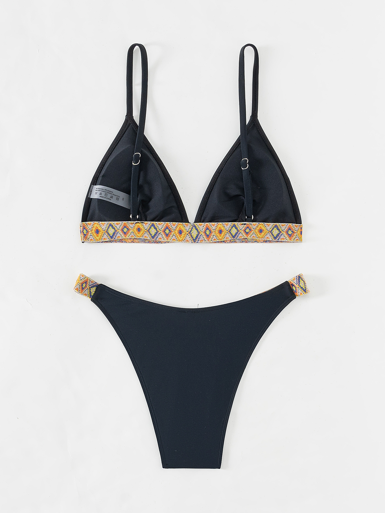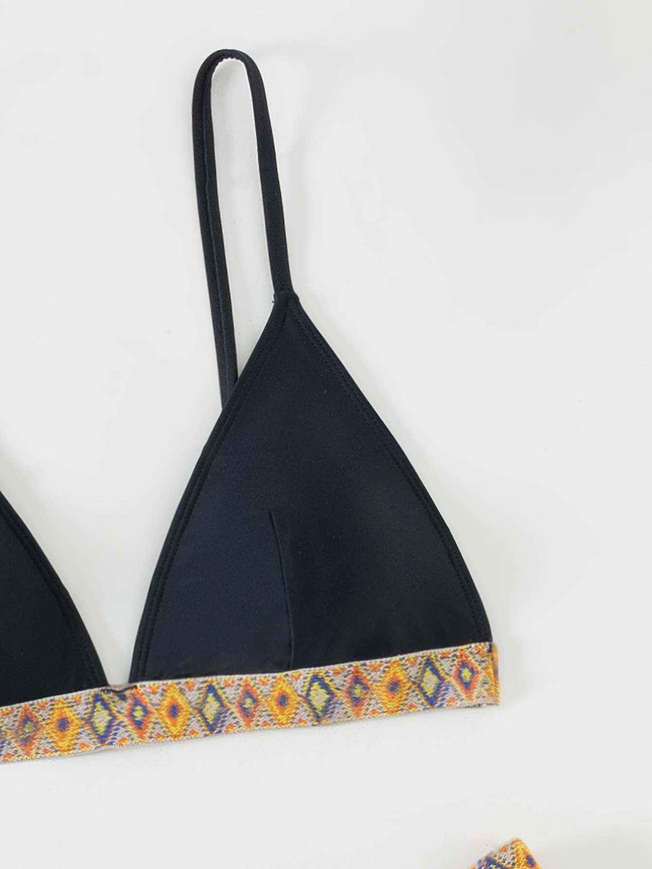 Bikini Ribbon Stitching Triangle Cup Sexy Split Bikini Swimwear Swimsuit Women