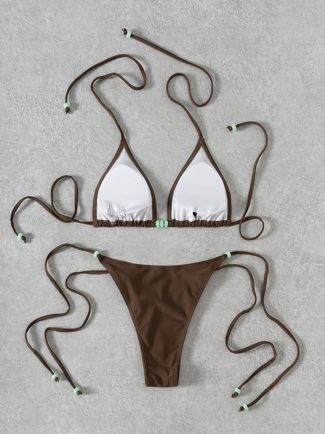 Bikini Solid Color Beaded Lace up Sexy Split Bikini Swimsuit Swimwear Women