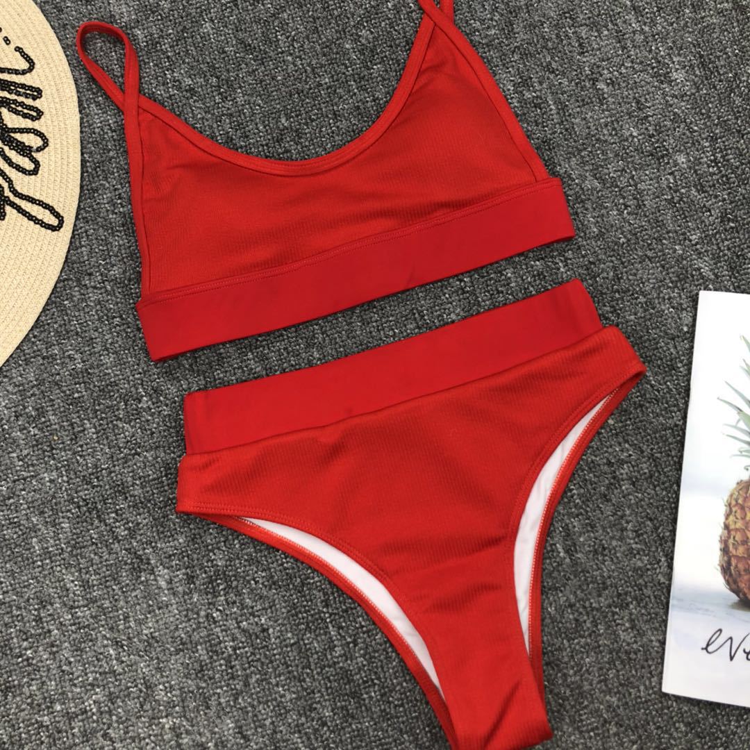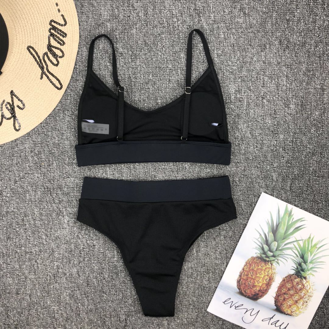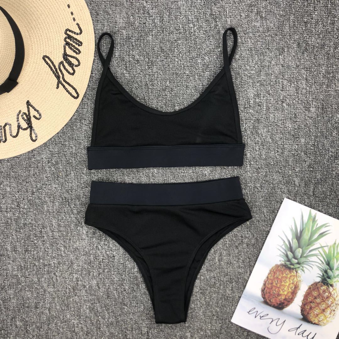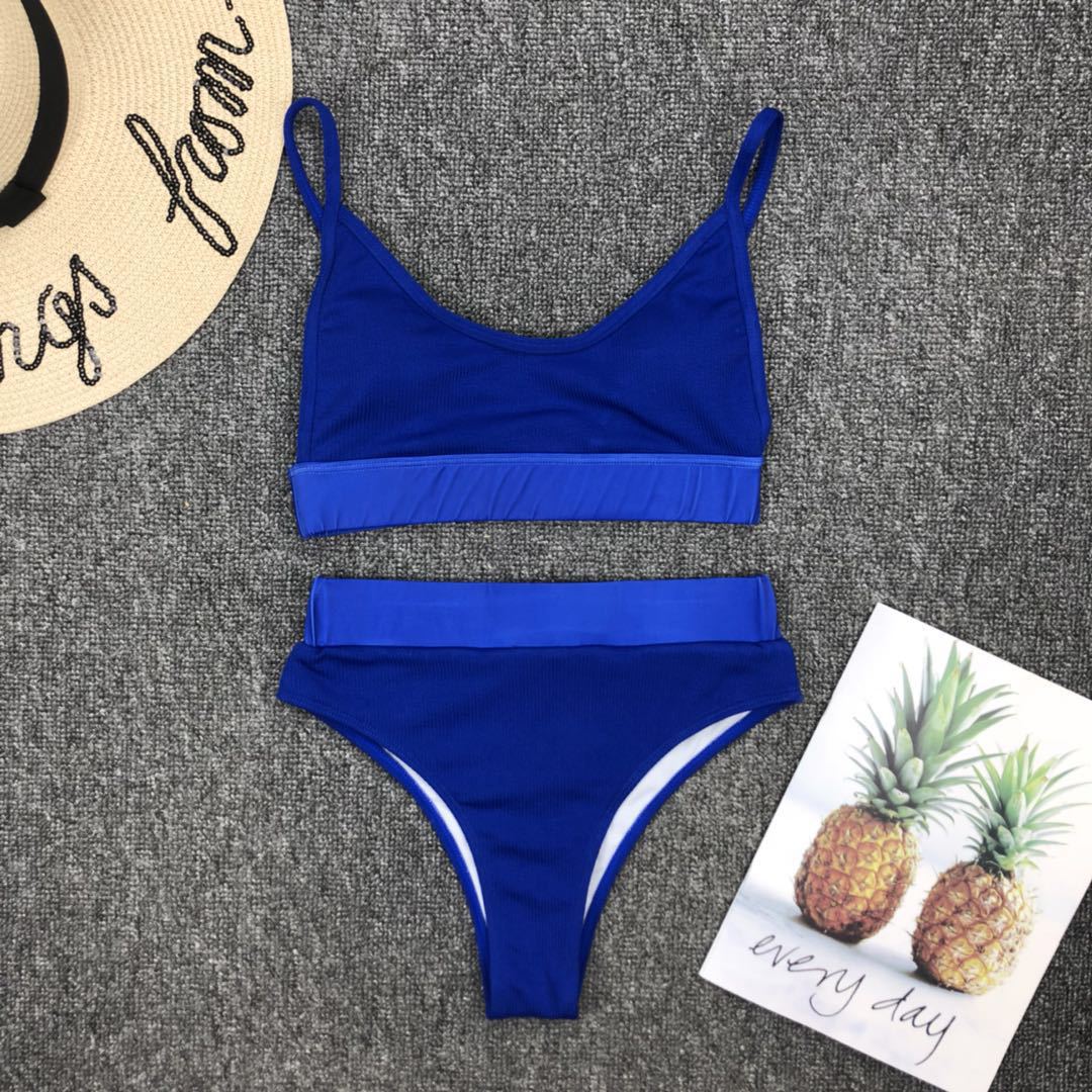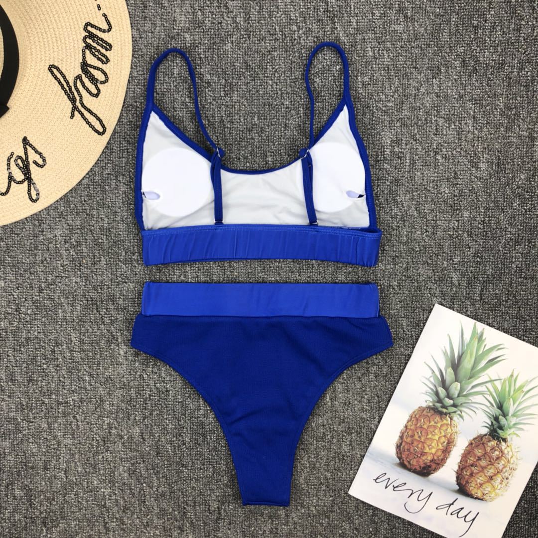 Bikini Solid Color Special Cloth Stitching Sexy Bikini High Waist Bikini