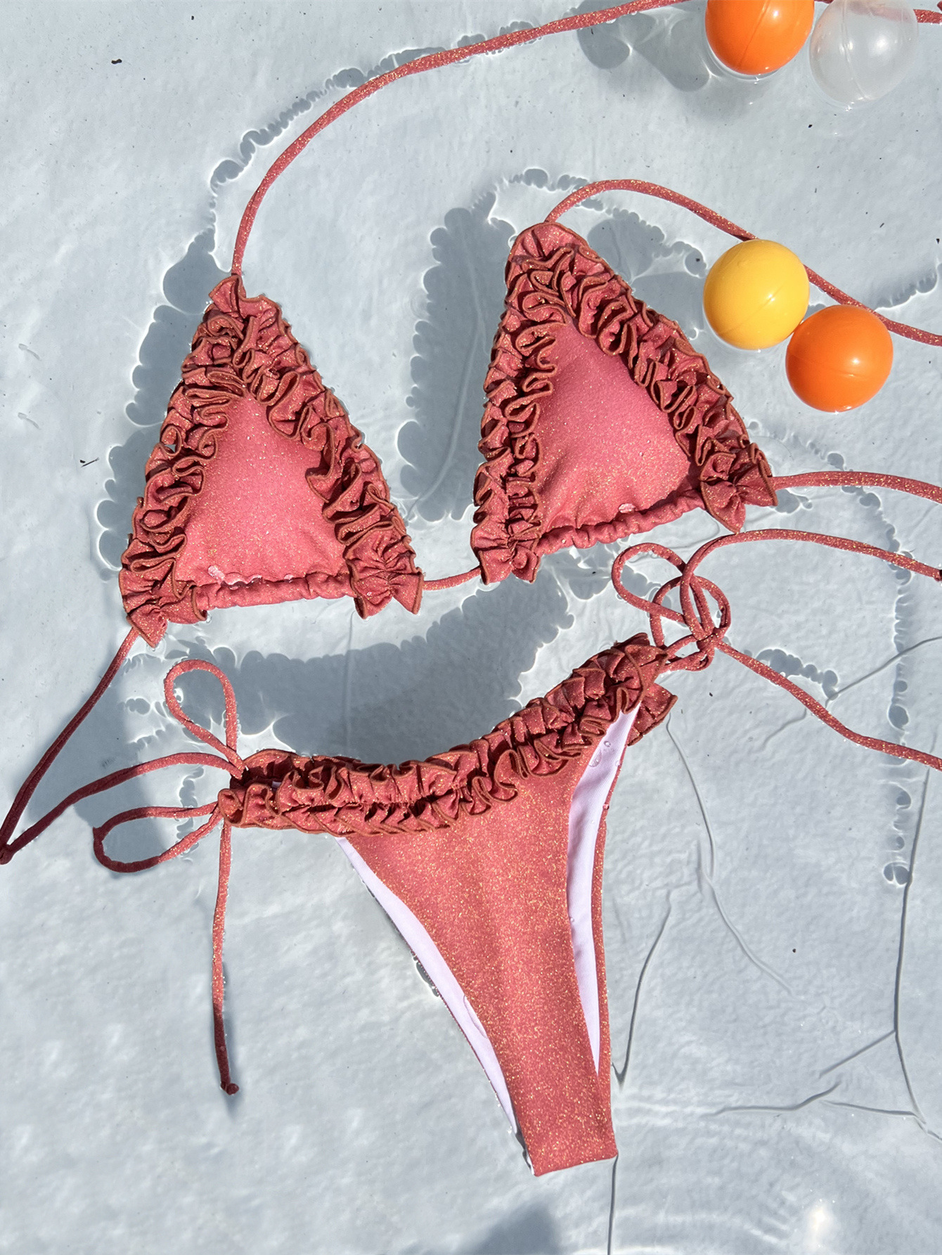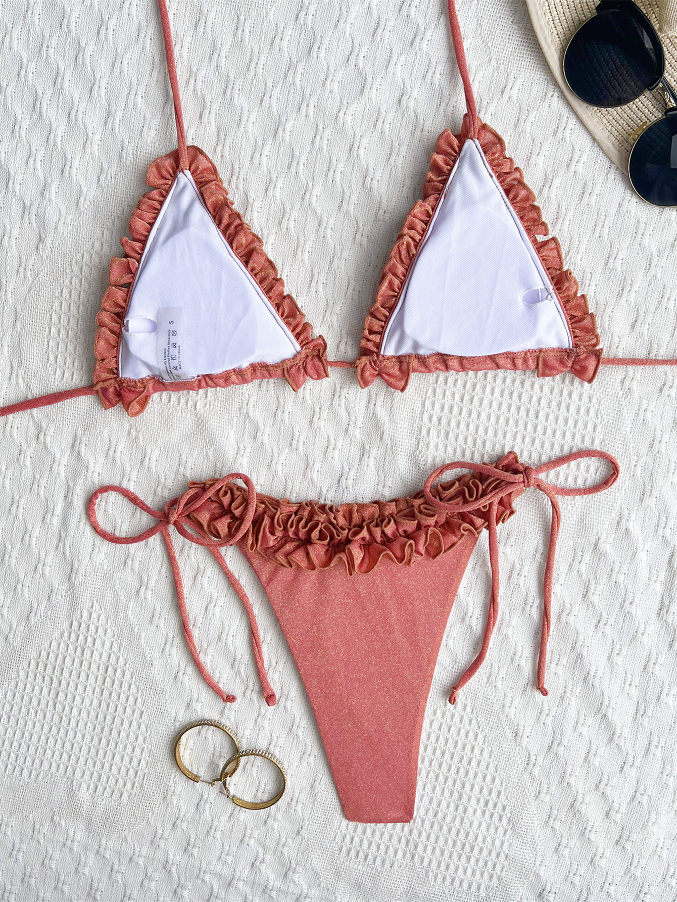 Bikini Solid Color Swimsuit Backless Swimwear Women Tied Swimsuit Sexy