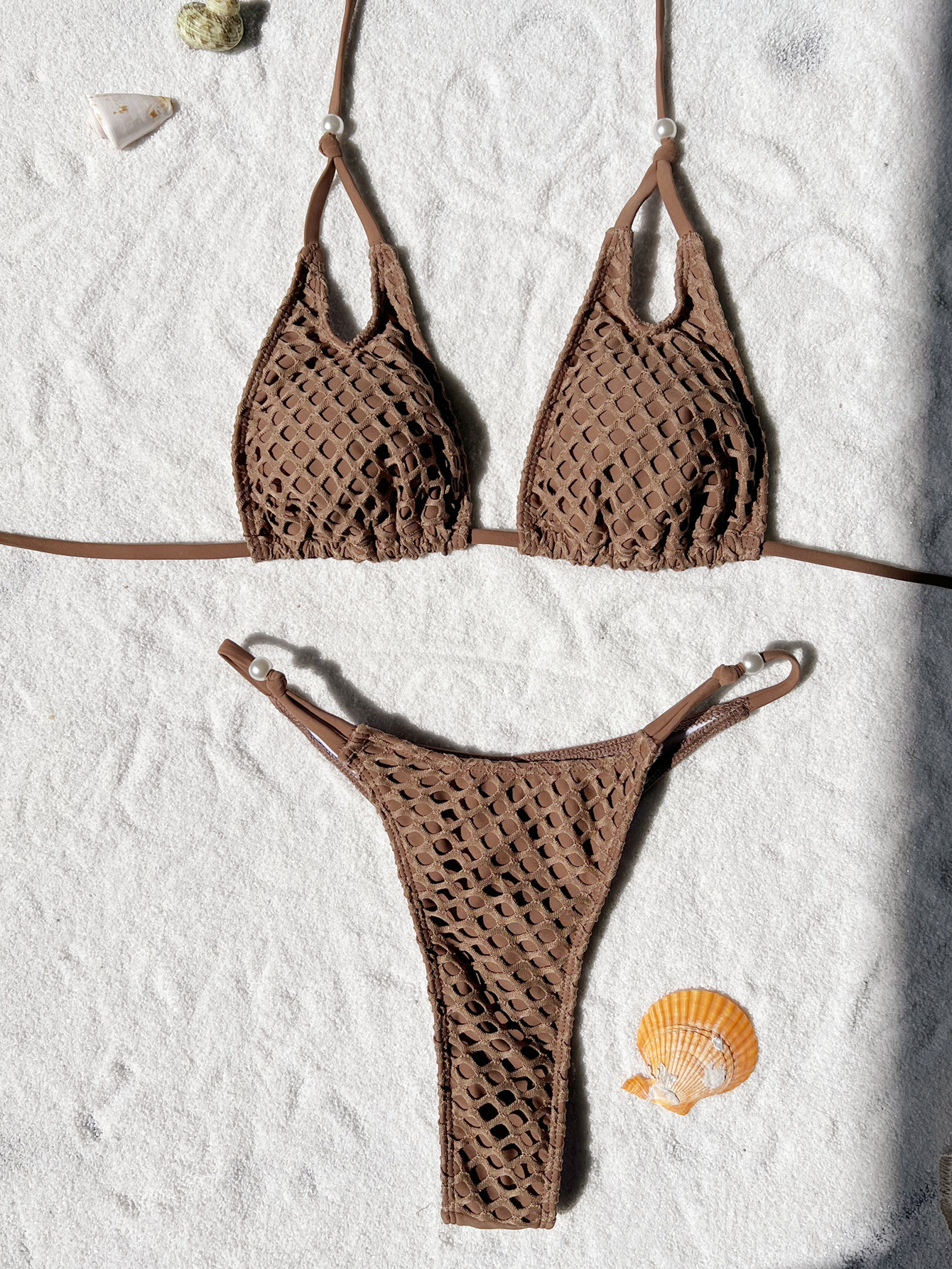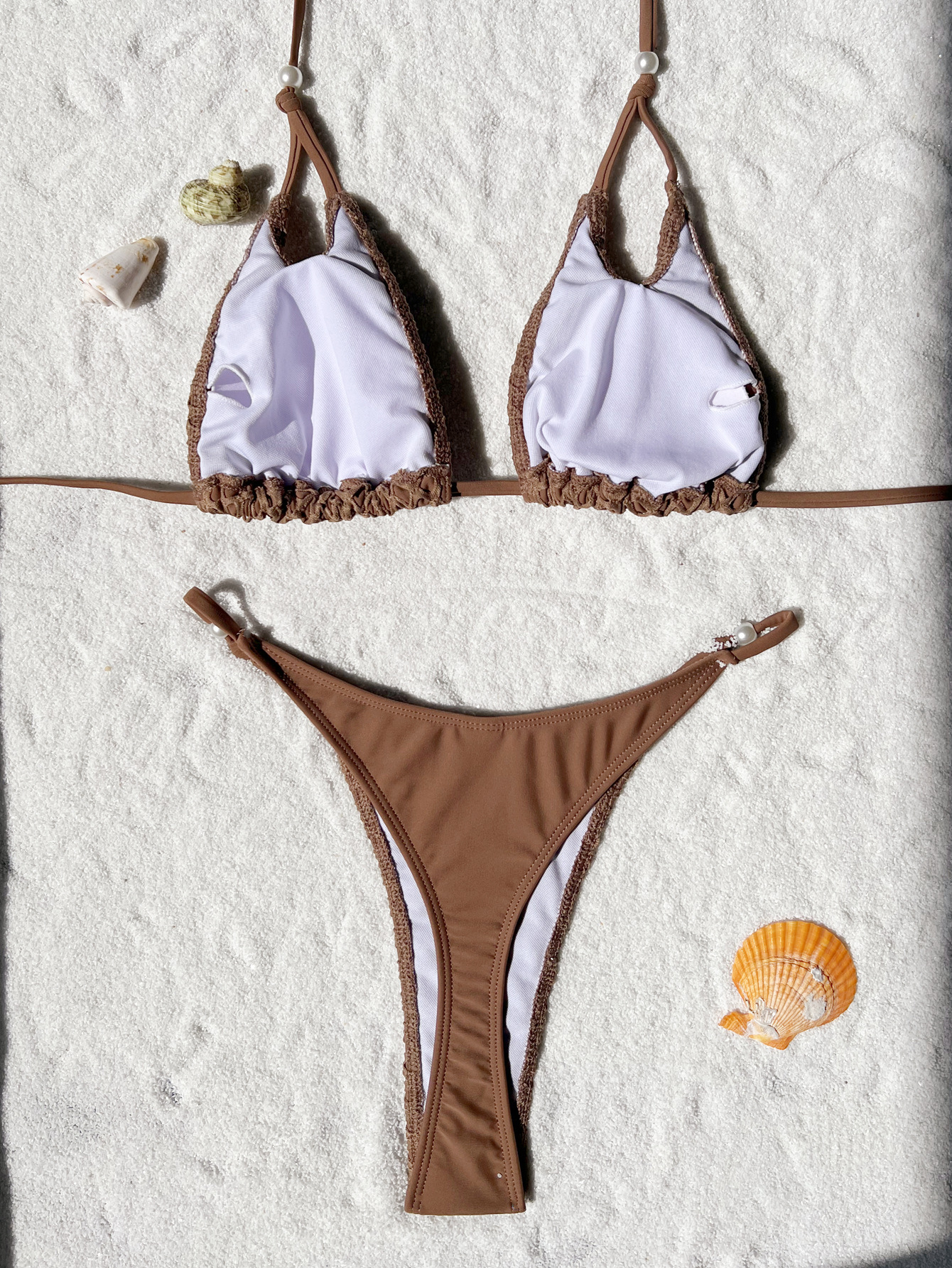 Bikini Solid Color Swimsuit Sexy Swimwear Women Backless Swimsuit Strap