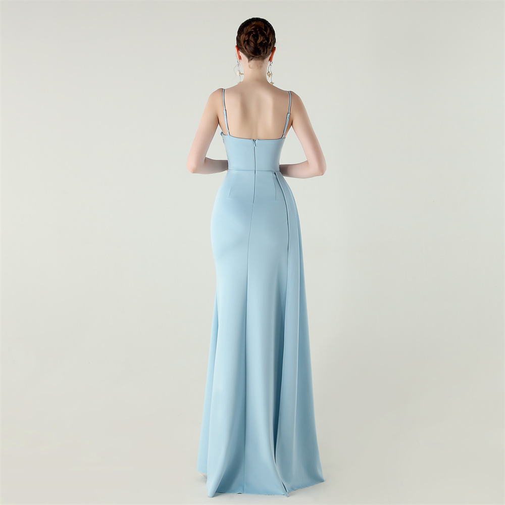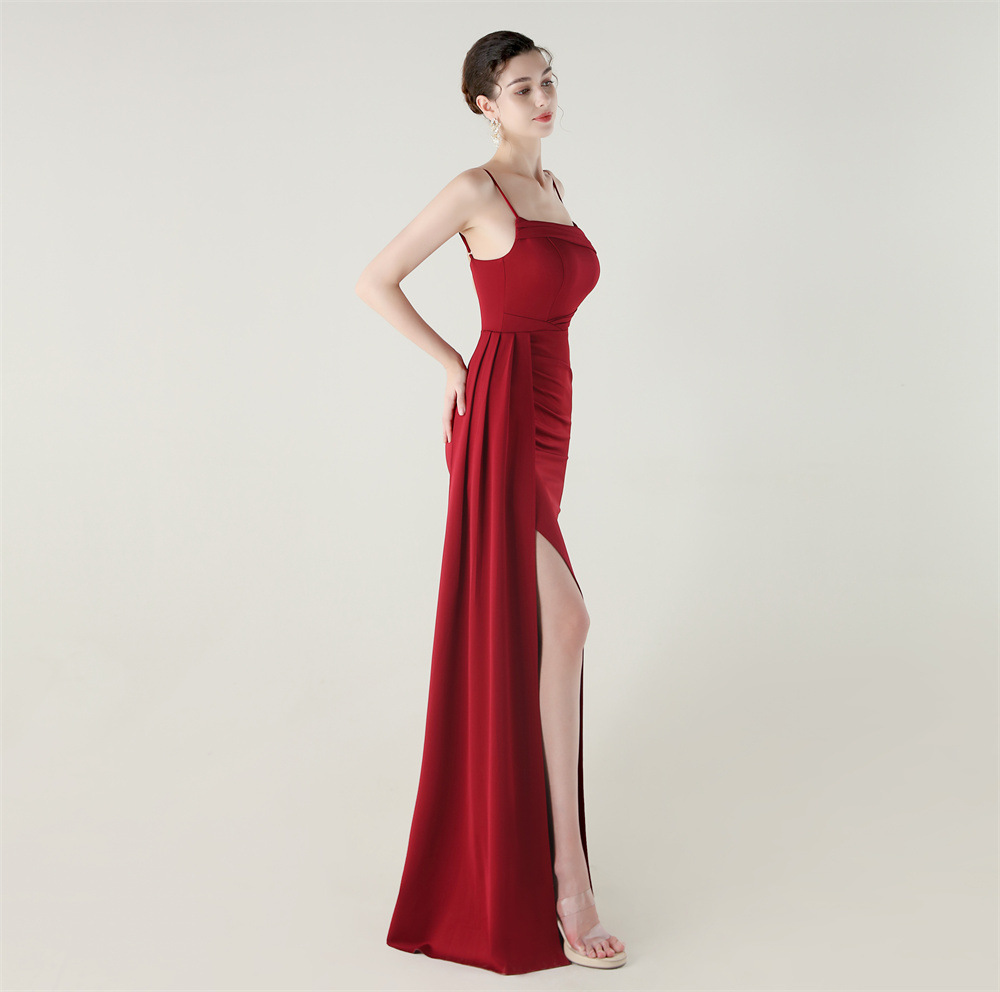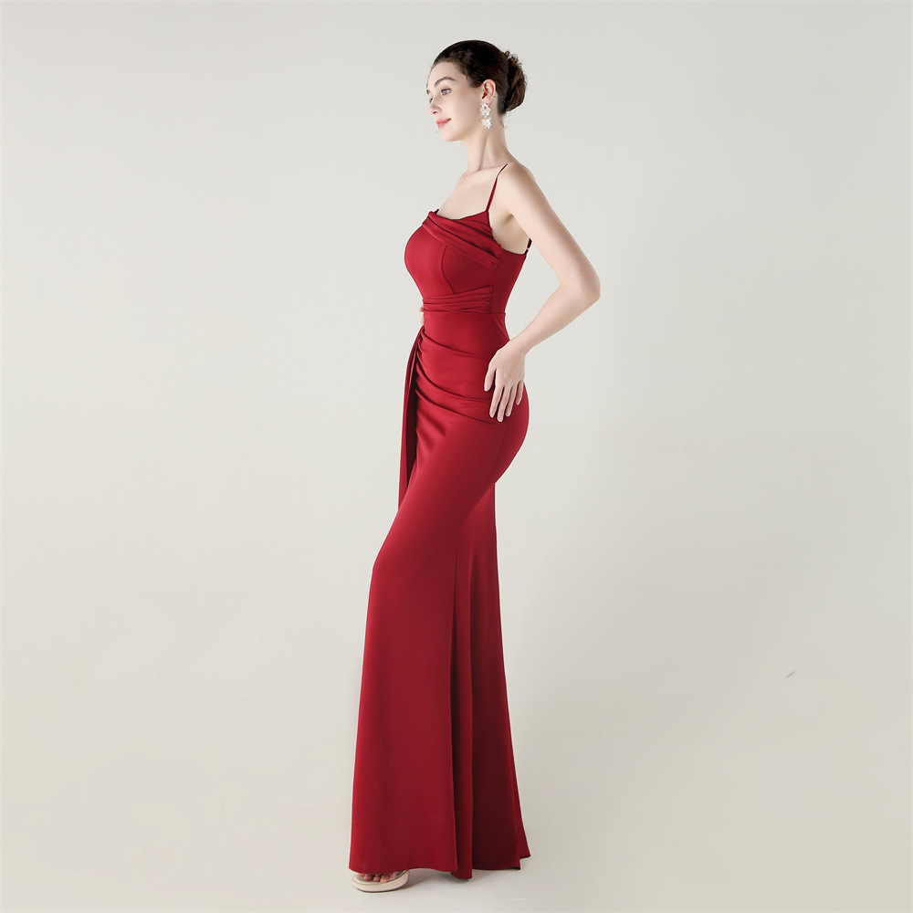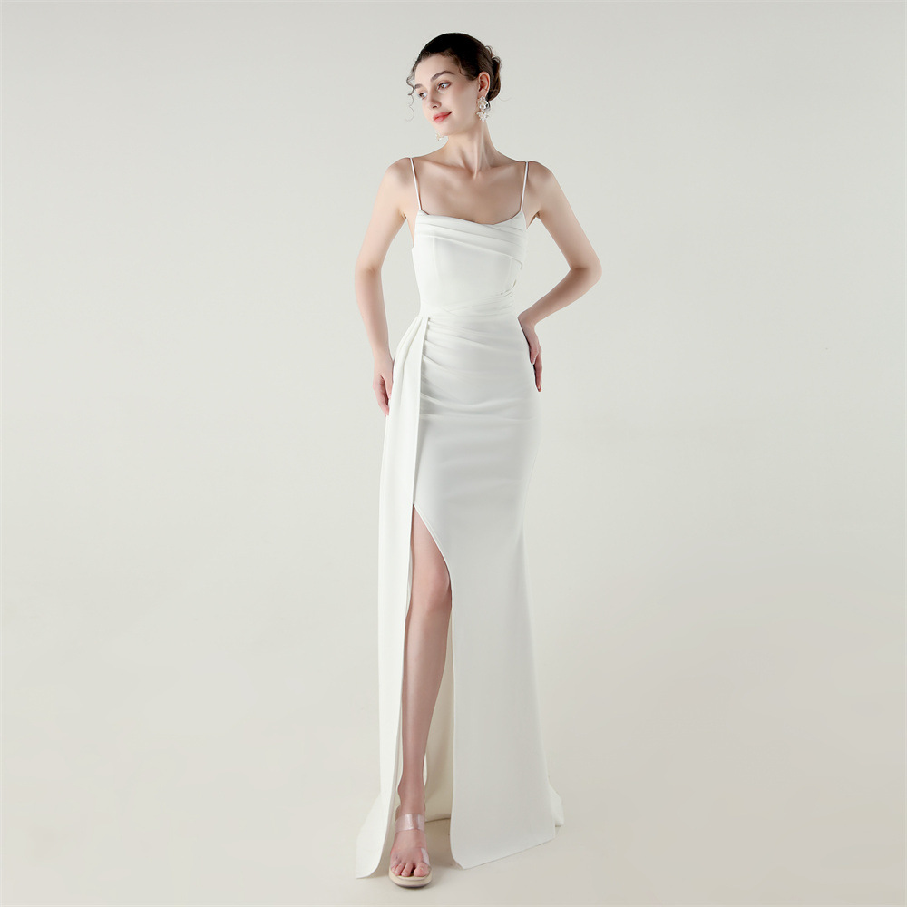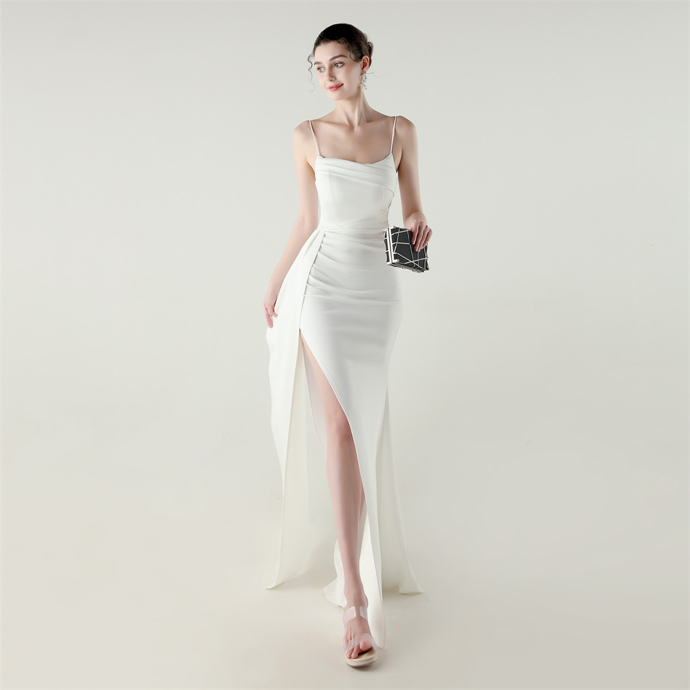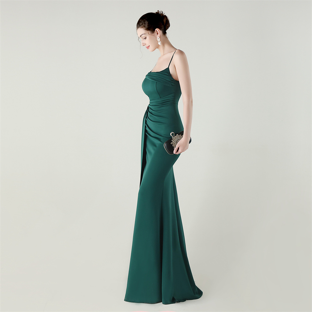 Camisole Tube Top Satin Pleated Fishtail High Slit Evening Dress Elegant Slim Dress for Dinner Ceremony