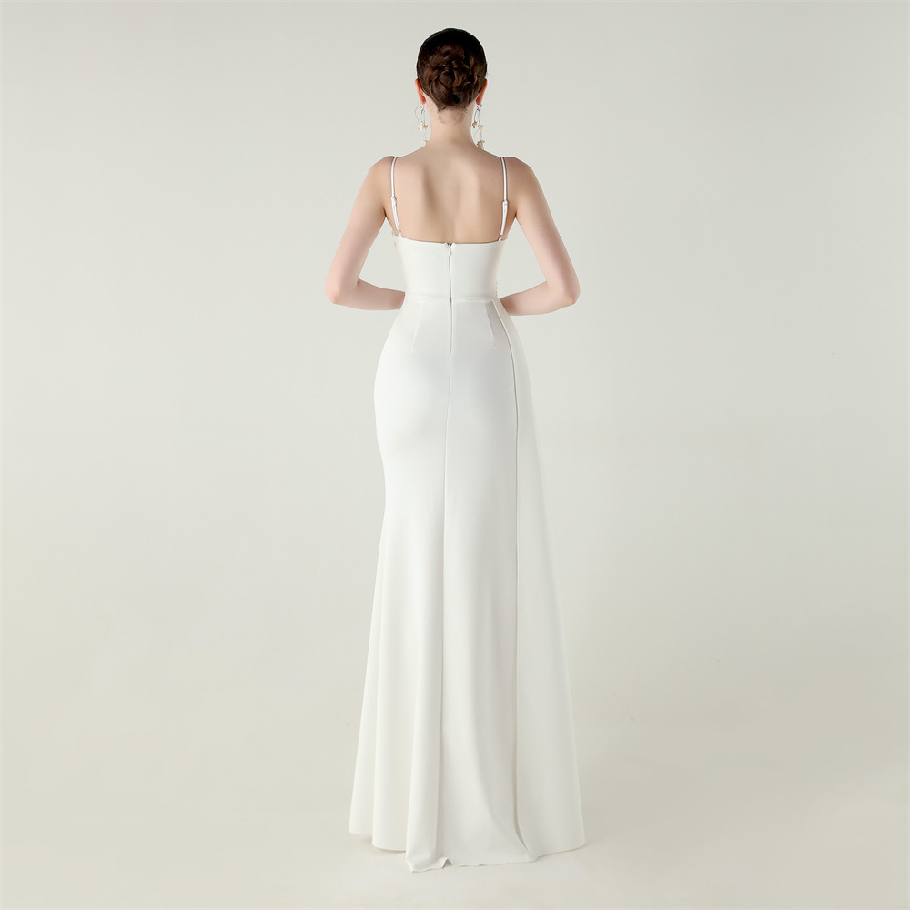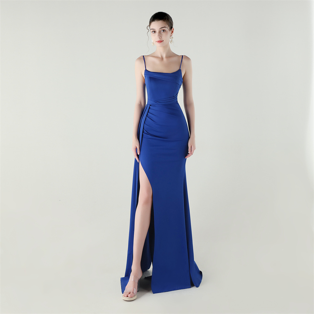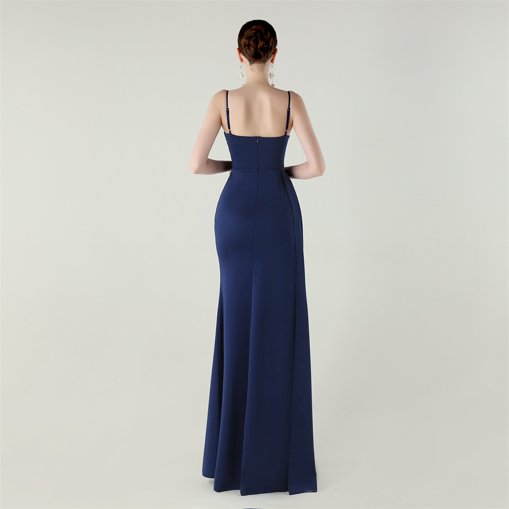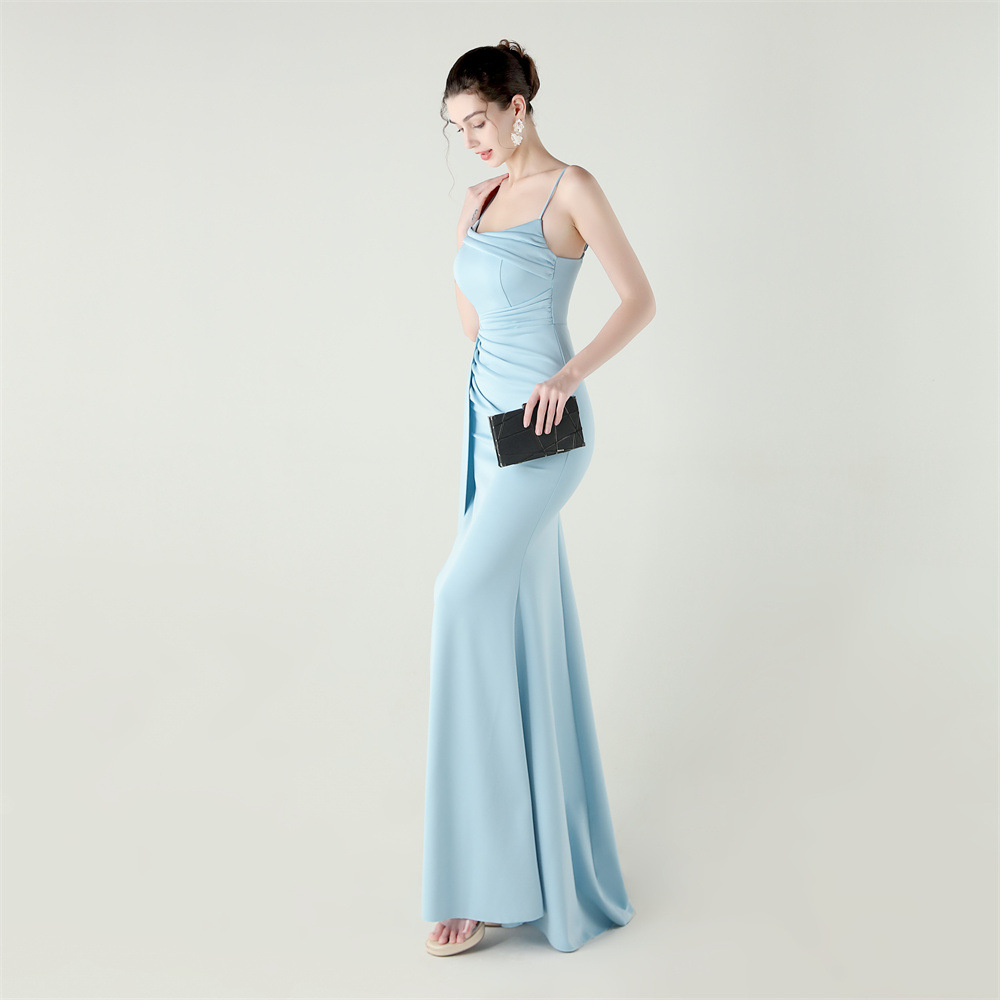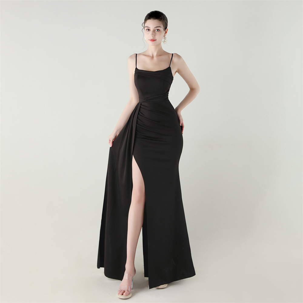 Camisole Tube Top Satin Pleated Fishtail High Slit Evening Dress Elegant Slim Dress for Dinner Ceremony