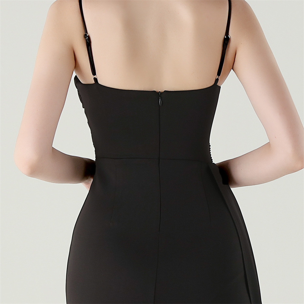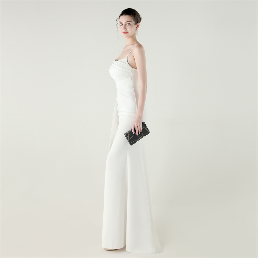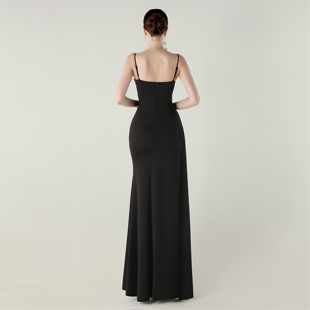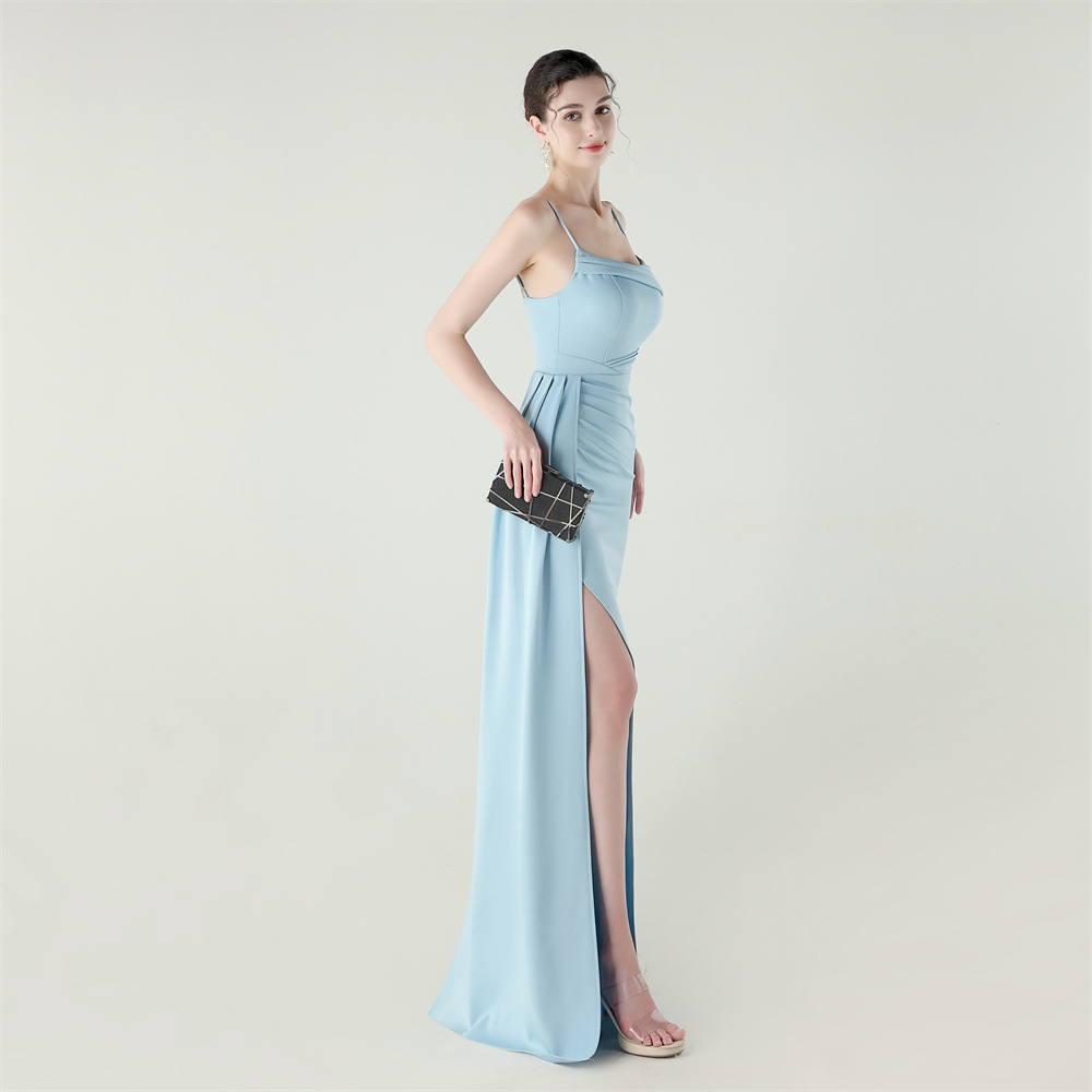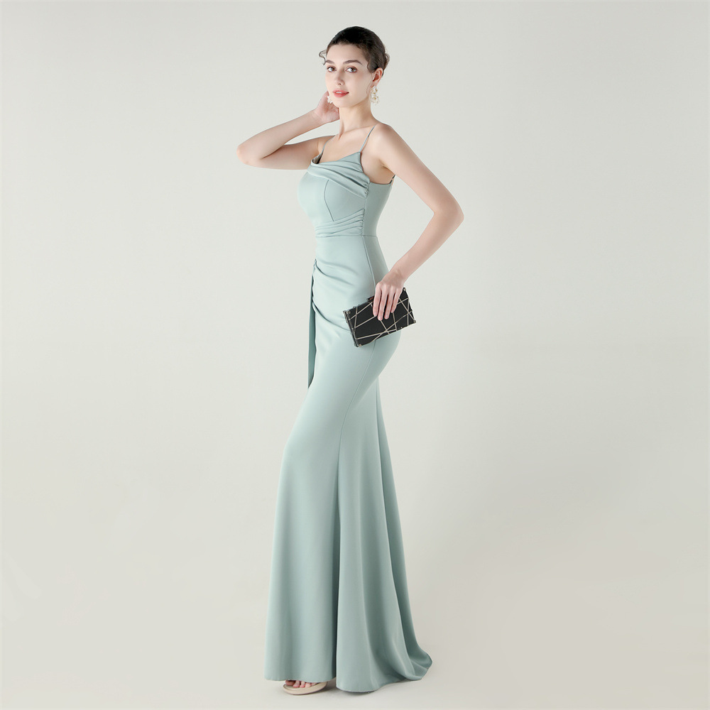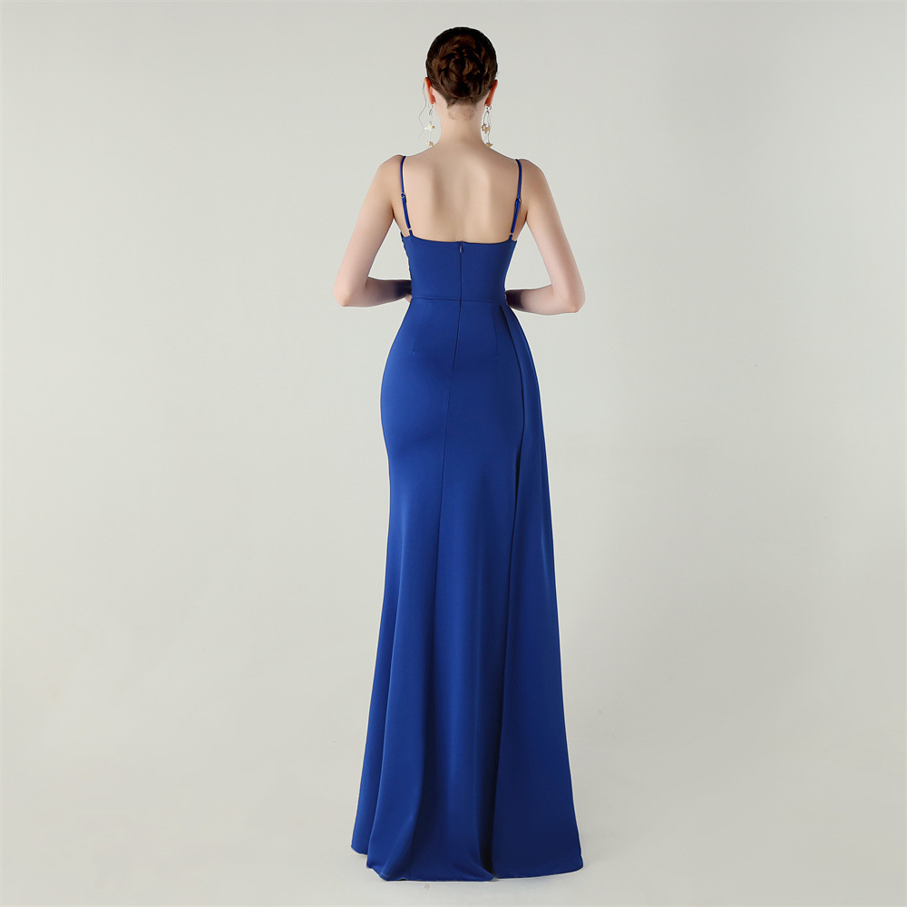 Camisole Tube Top Satin Pleated Fishtail High Slit Evening Dress Elegant Slim Dress for Dinner Ceremony