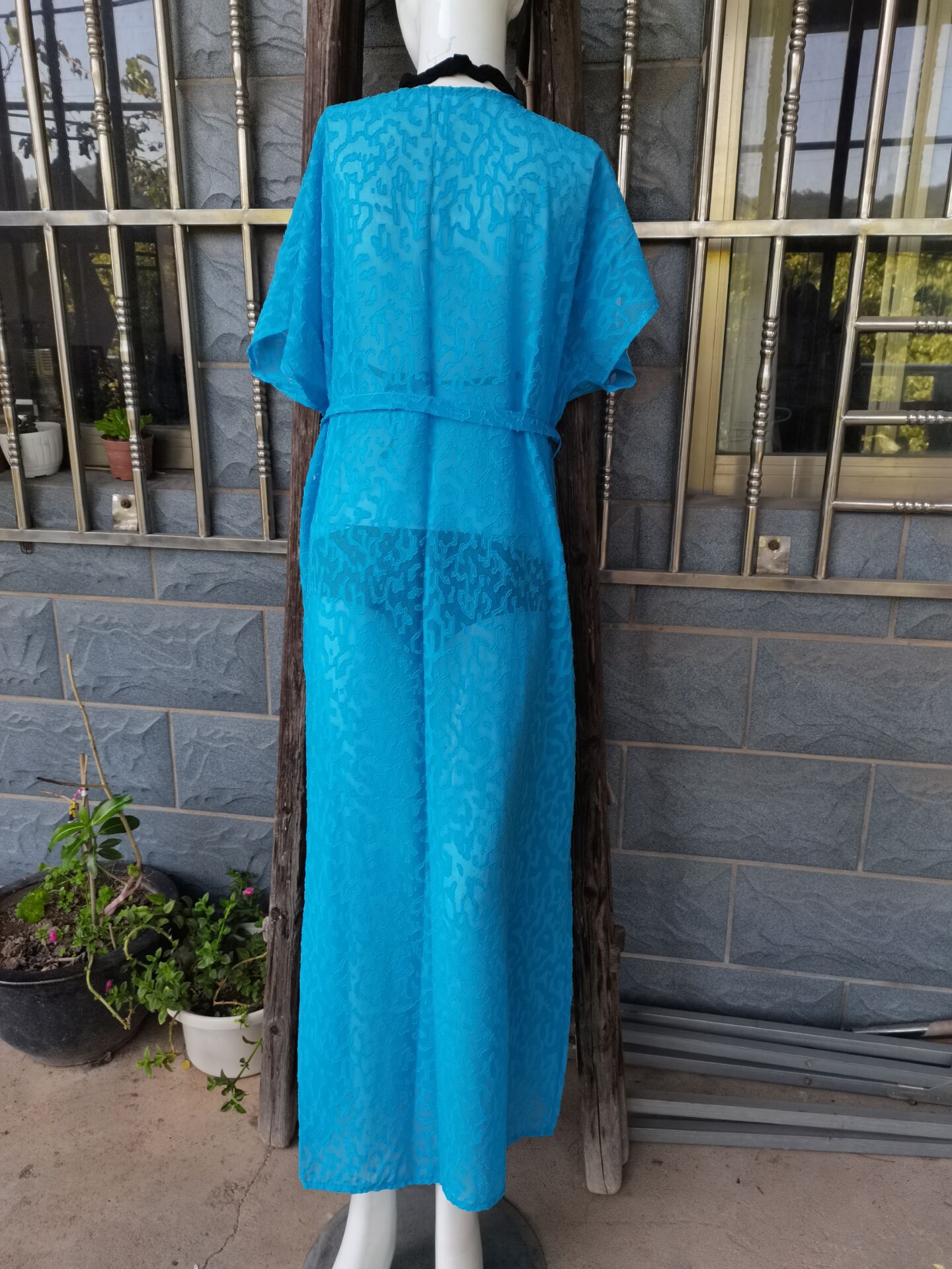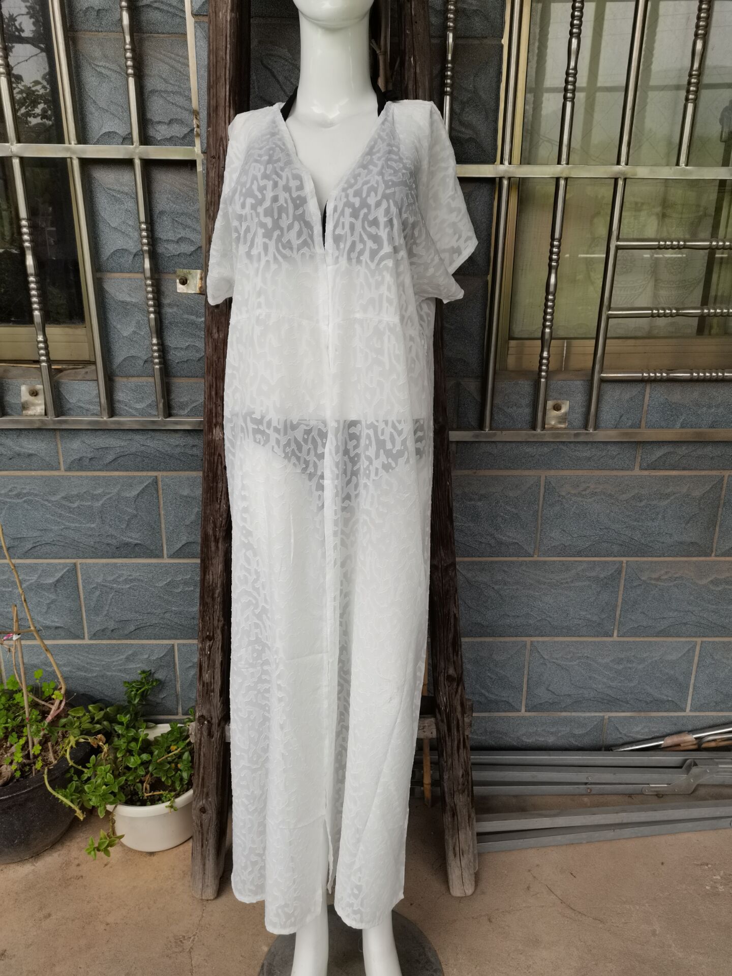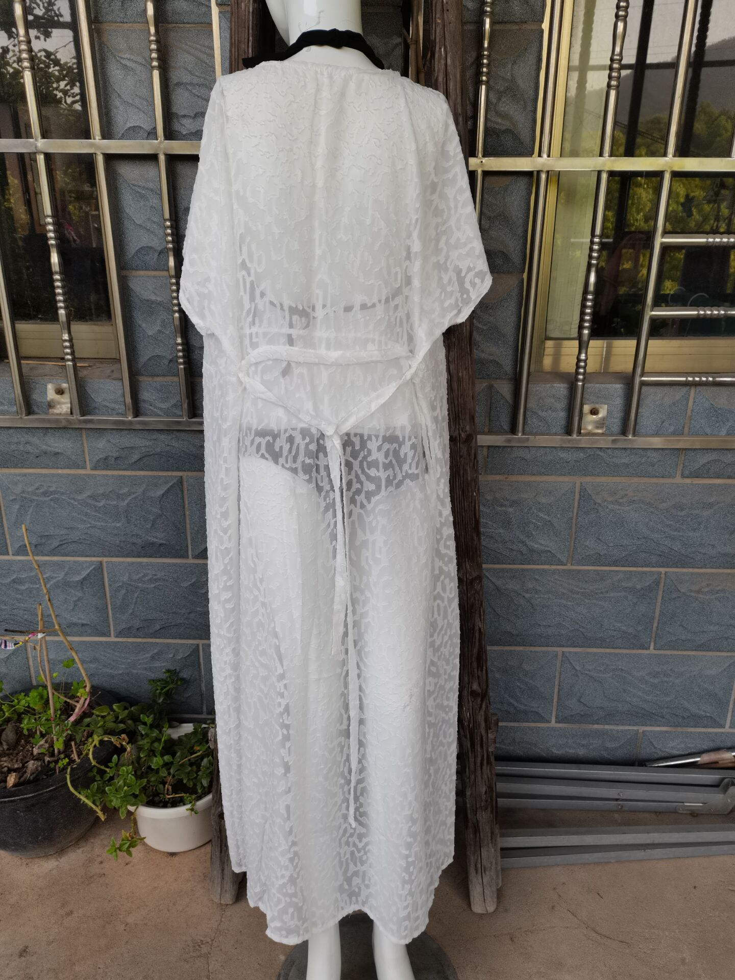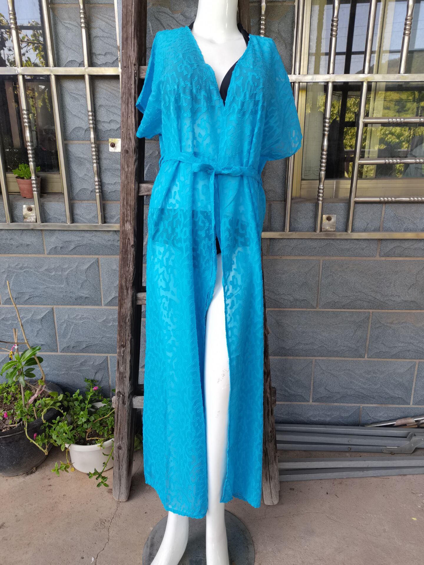 Jacquard Material Lace-up Cardigan Holiday Casual Beach Bikini Cover 2 Colors