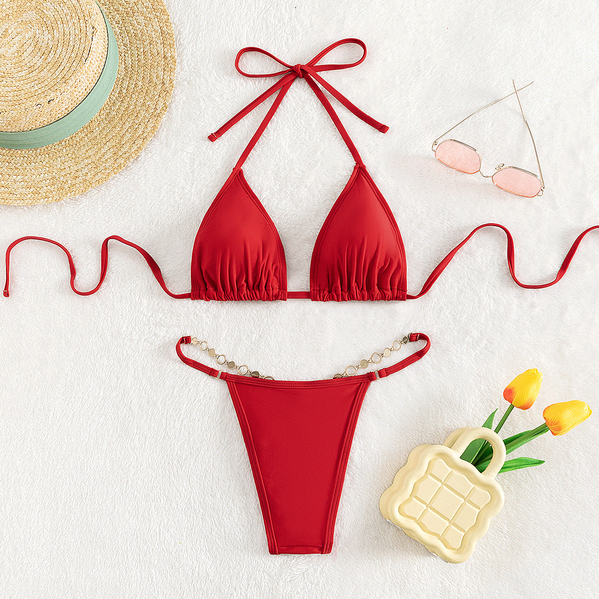 Ladies Swimsuit Split Swimsuit Solid Color Swimsuit Summer T Back Sexy Women Bikini