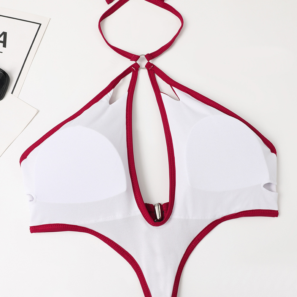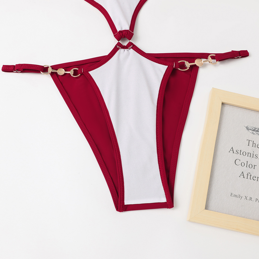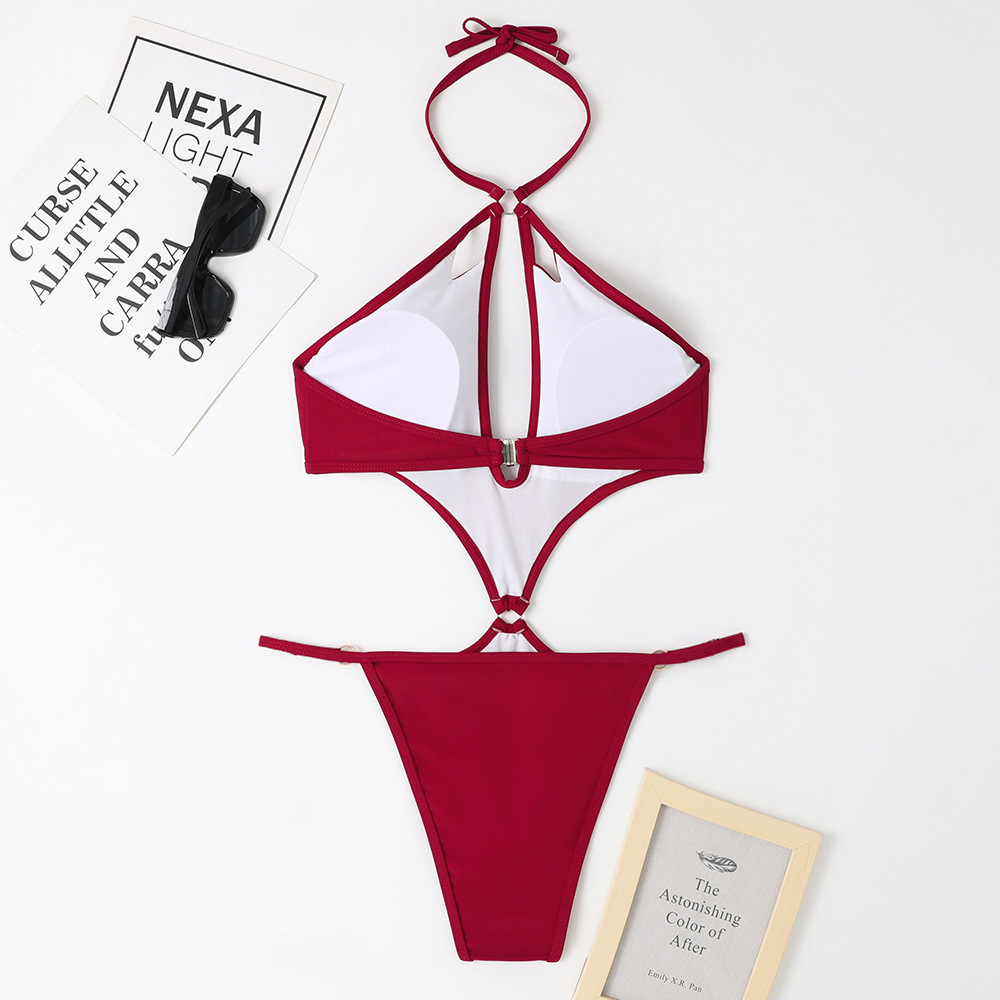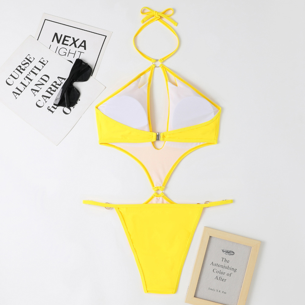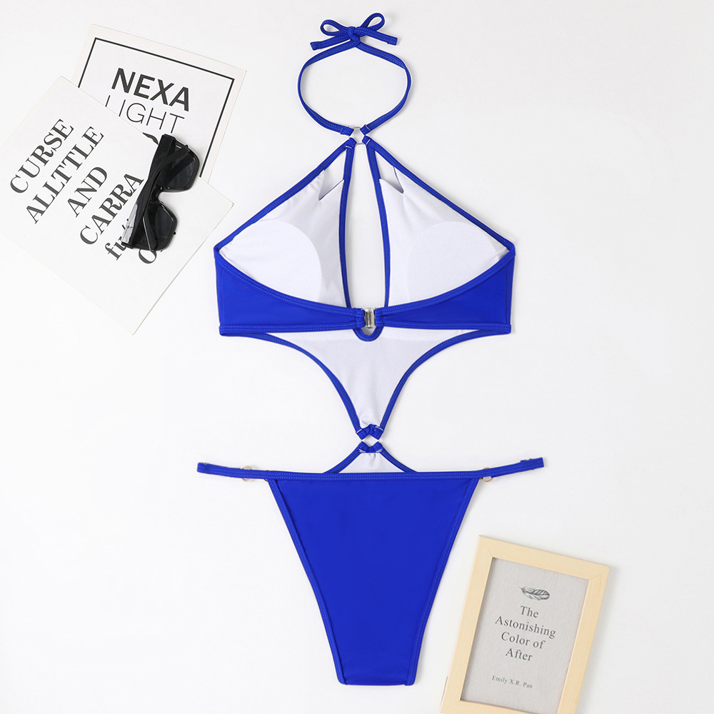 One Piece Multi Color Hollow Out Cutout Sexy Pearl Chain Halter Triangle Sexy Swimsuit Women