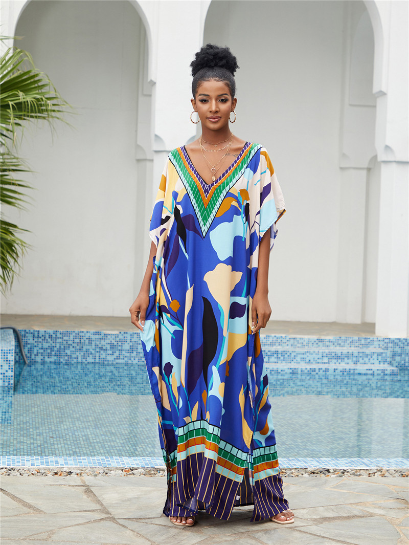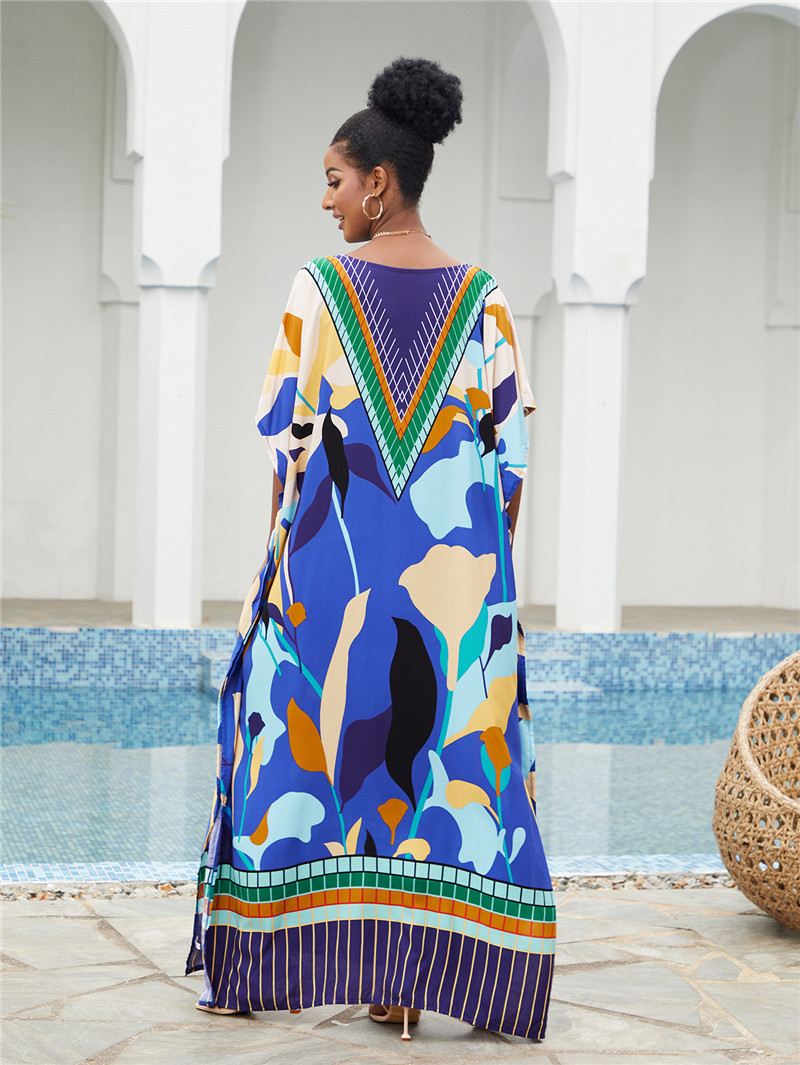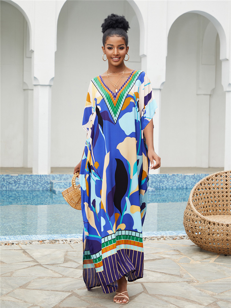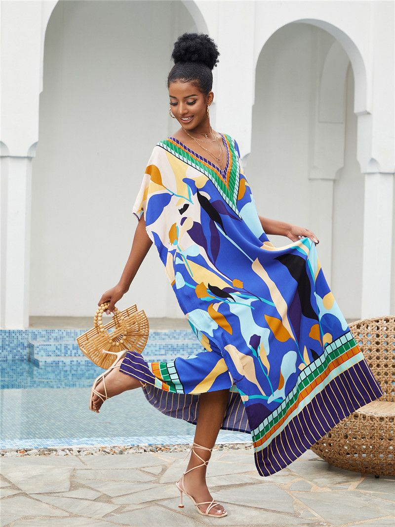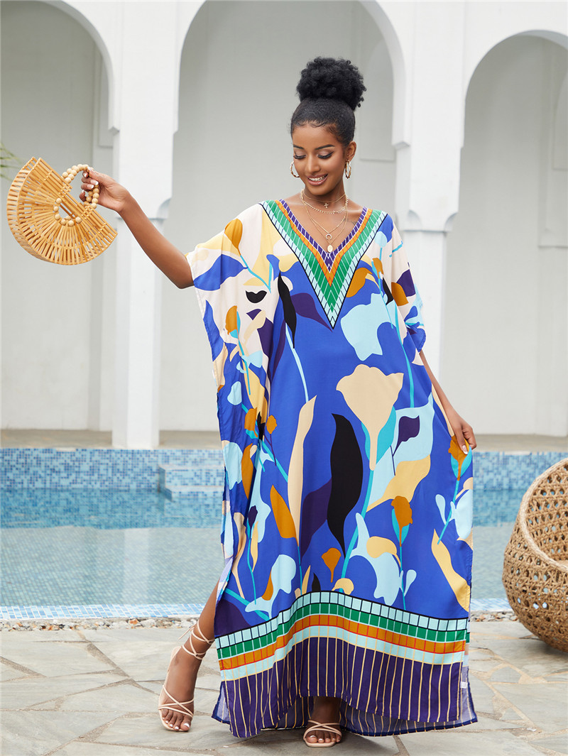 Printed Beach Blouse Loose Robe Vacation Sun Protection Shirt Beach Cover Up
