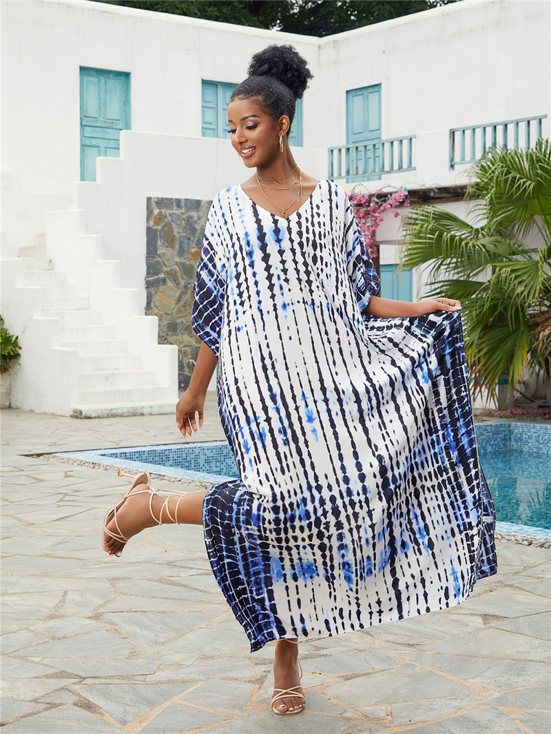 Printed Beach Blouse Loose Robe Vacation Sun Protection Shirt Swimsuit Blouse