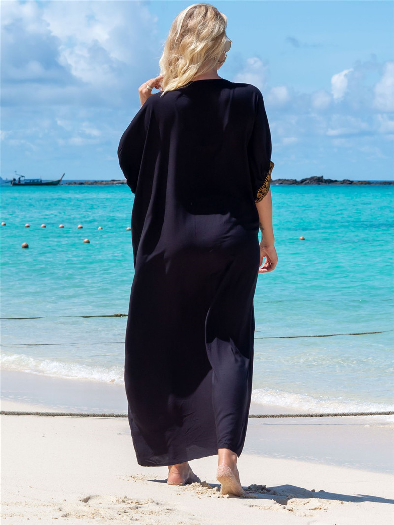 Rayon Gold Thread Embroidery Beach Cover up Sexy Loose Embroidery Vacation Skirt Beach Cover Up