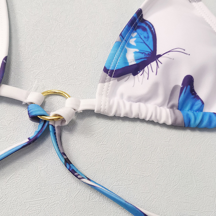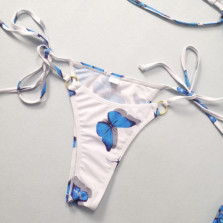 Ring Butterfly Print Sexy Beach Women Bikini Three Piece Set
