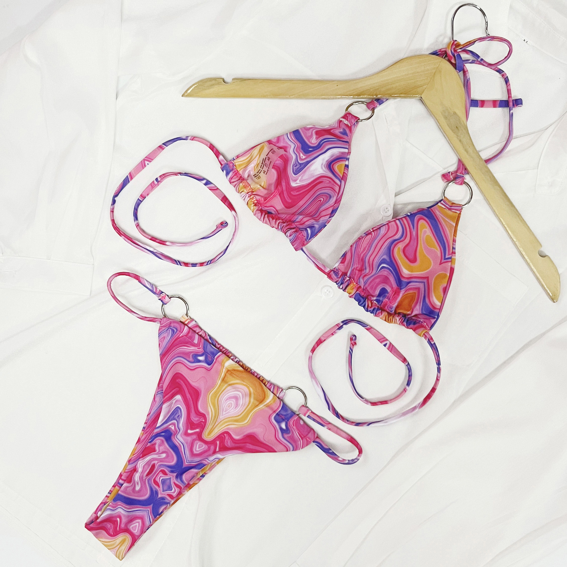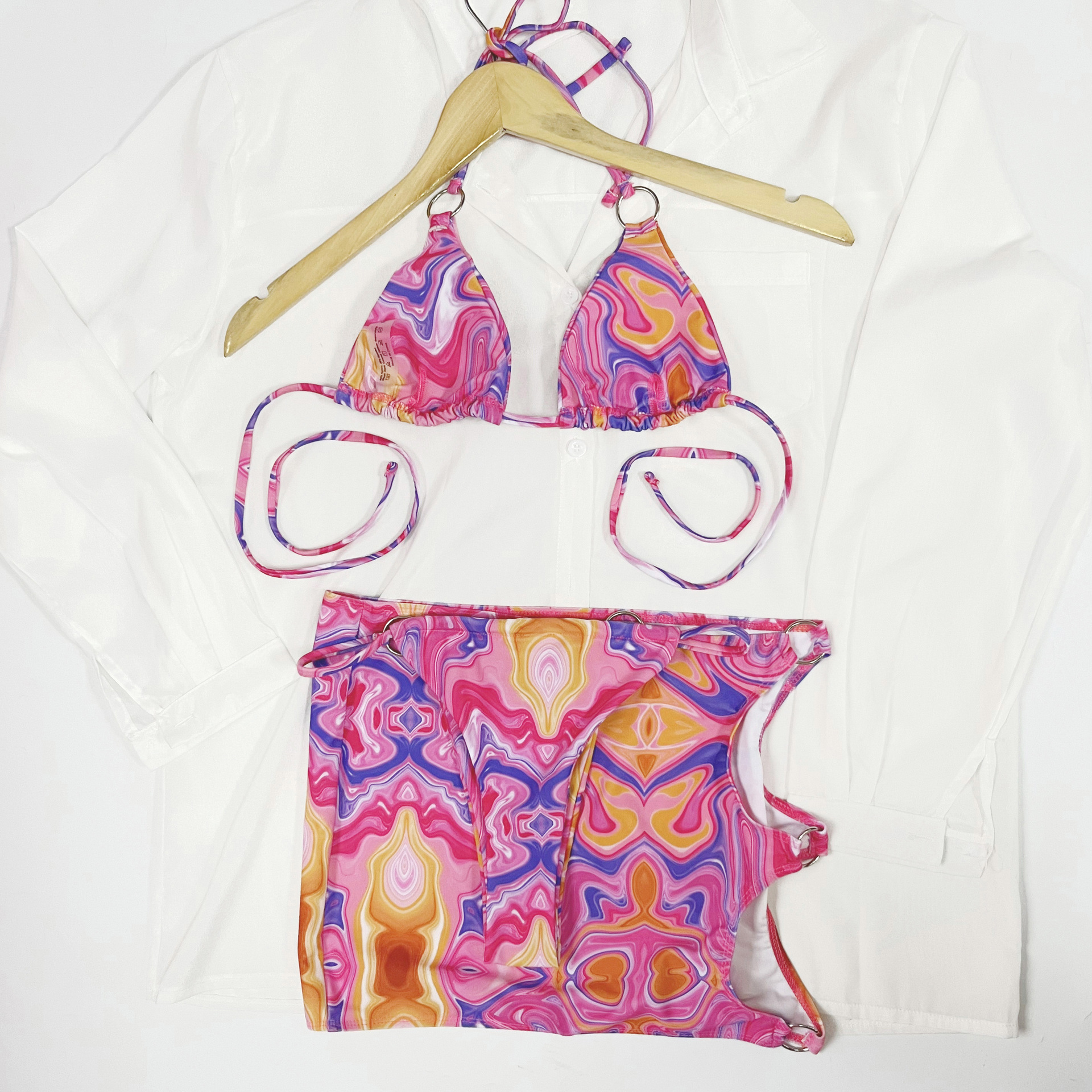 Sexy Printed Bikini Three Piece Outer Skirt Swimsuit