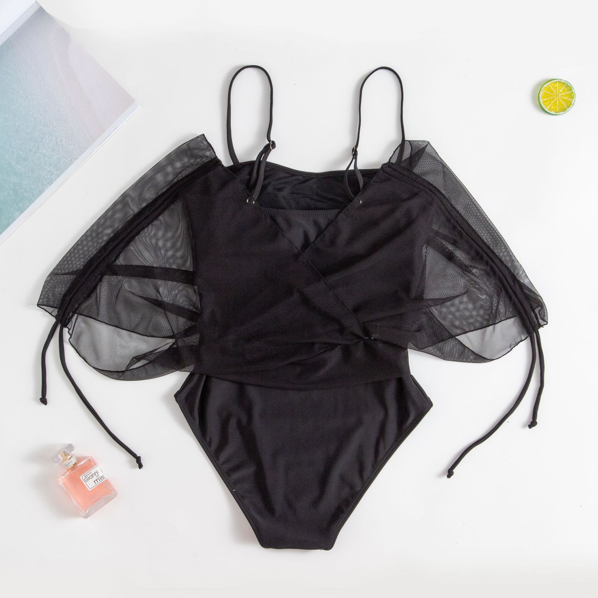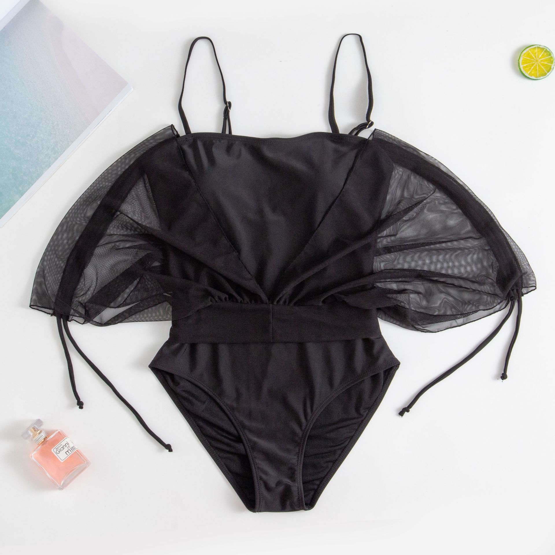 Sexy Solid Color One Piece High Waist Mesh V Neck Top