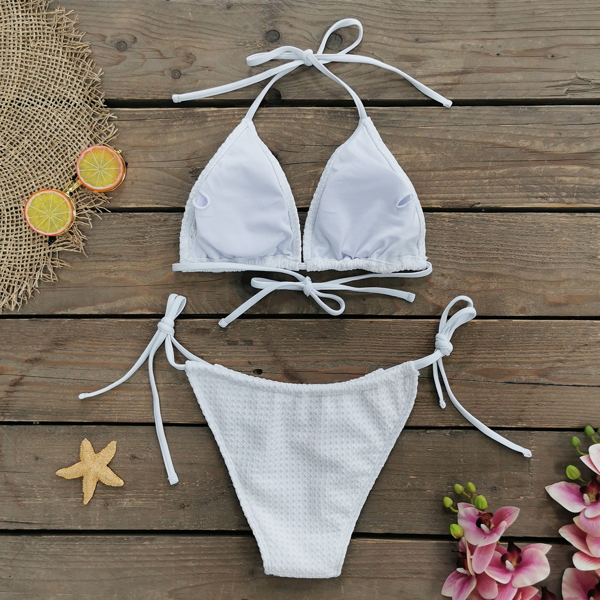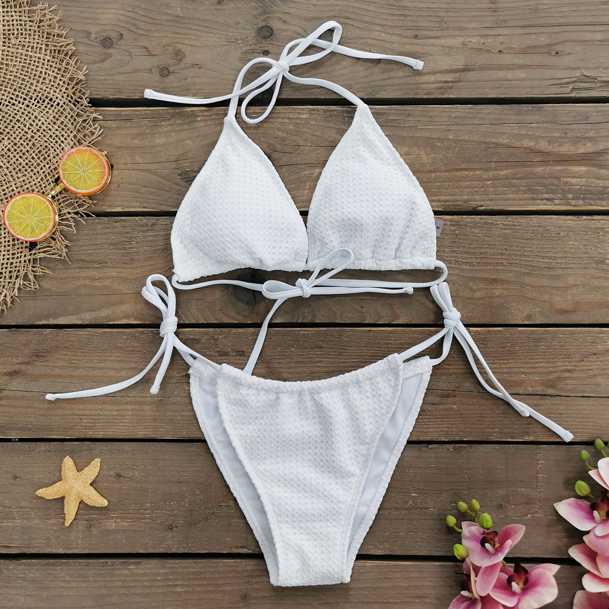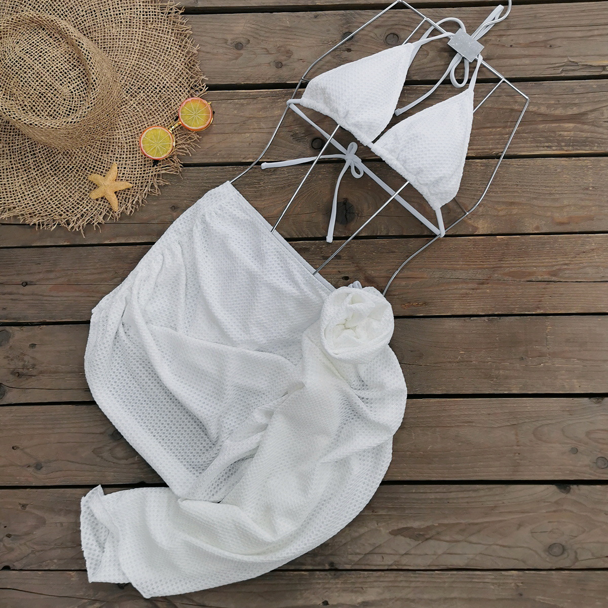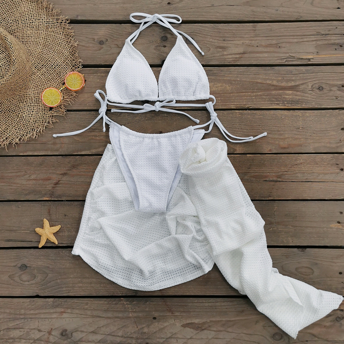 Solid Color Lace up Sexy Three-Point Bikini Three Piece Split Swimsuit Women Bikini