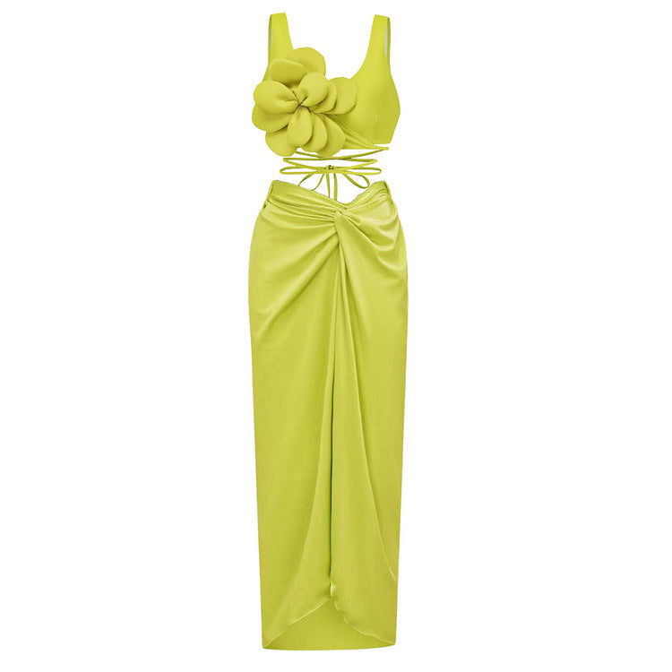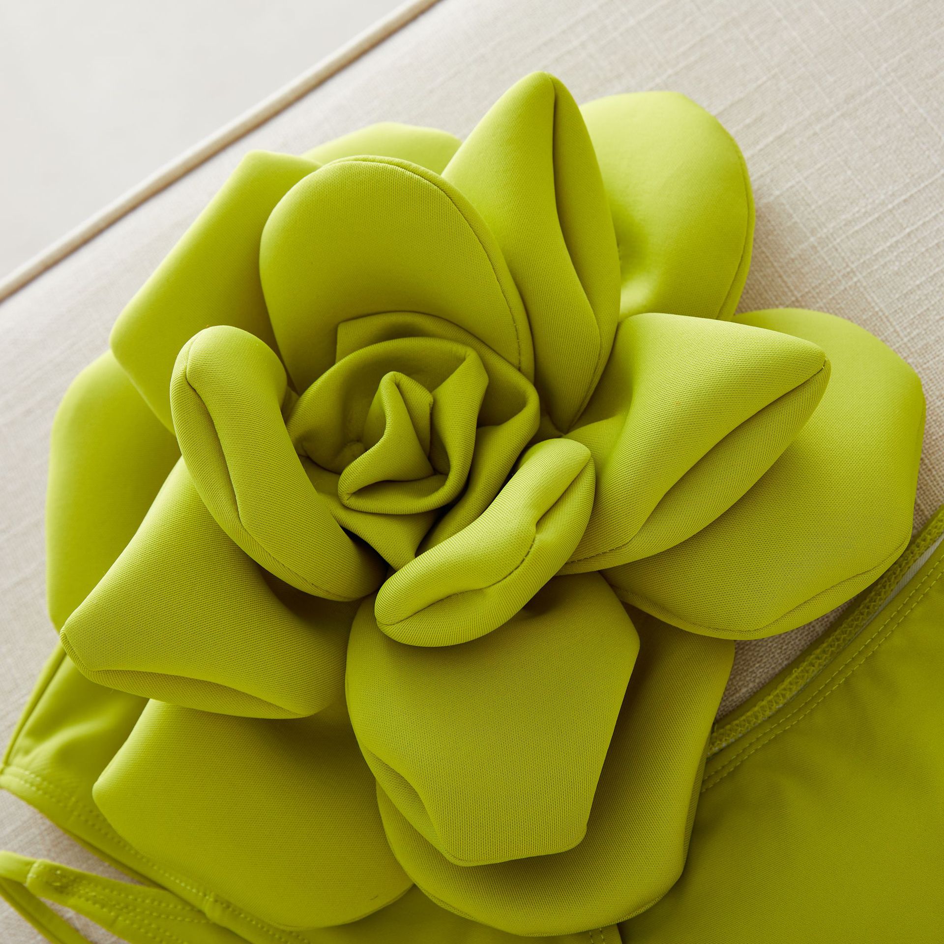Solid Color Split Swimsuit Women Sexy High Waist Banded Bikini Three Piece Set Bikini