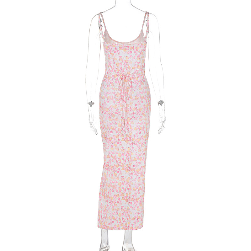 Spring Autumn Slim Fit Sexy Backless Sleeveless Printed Younger Women Clothing Cami Dress