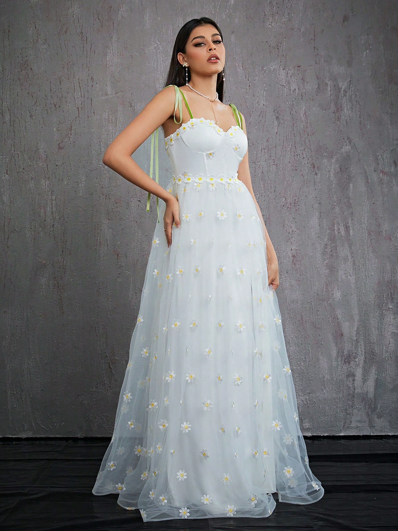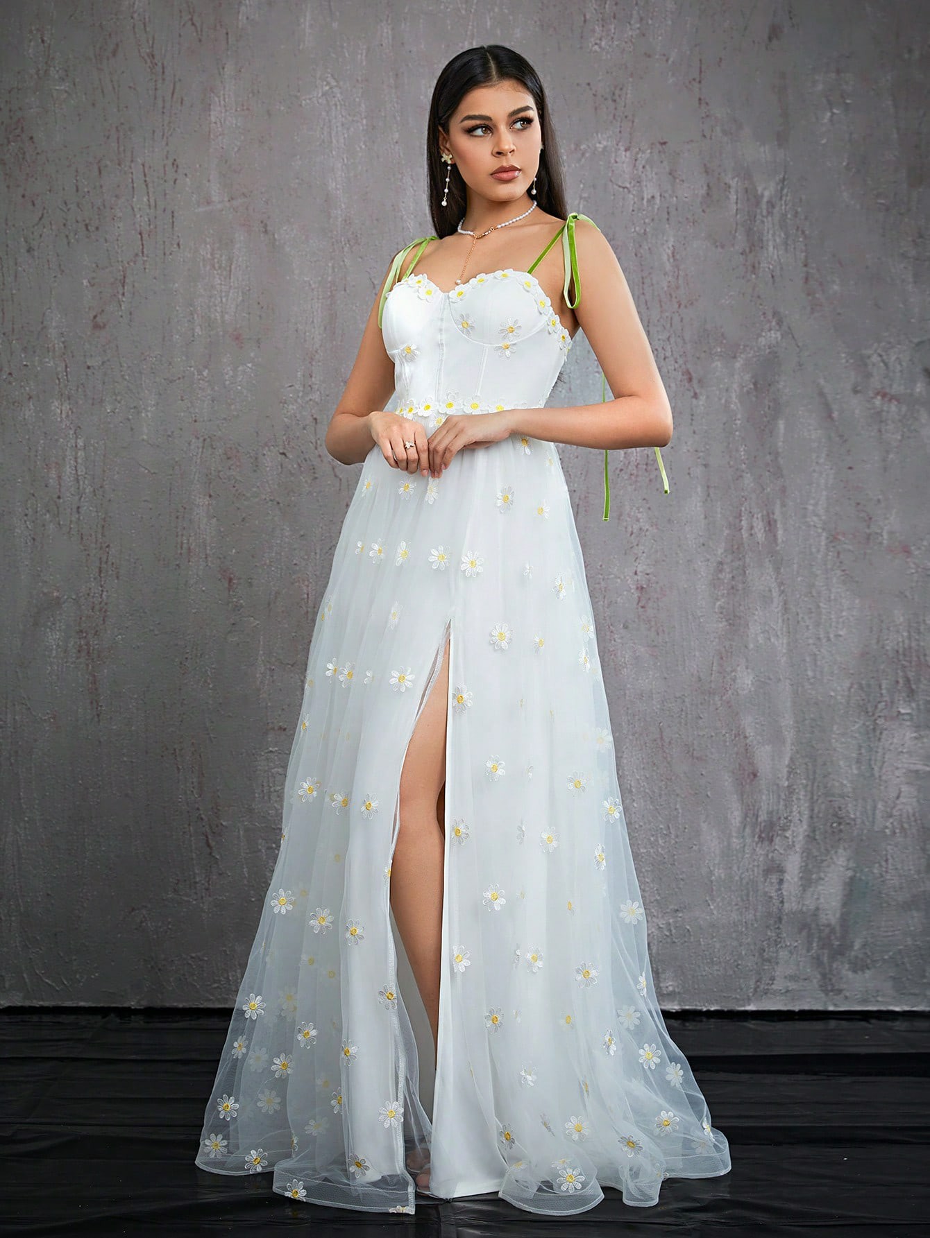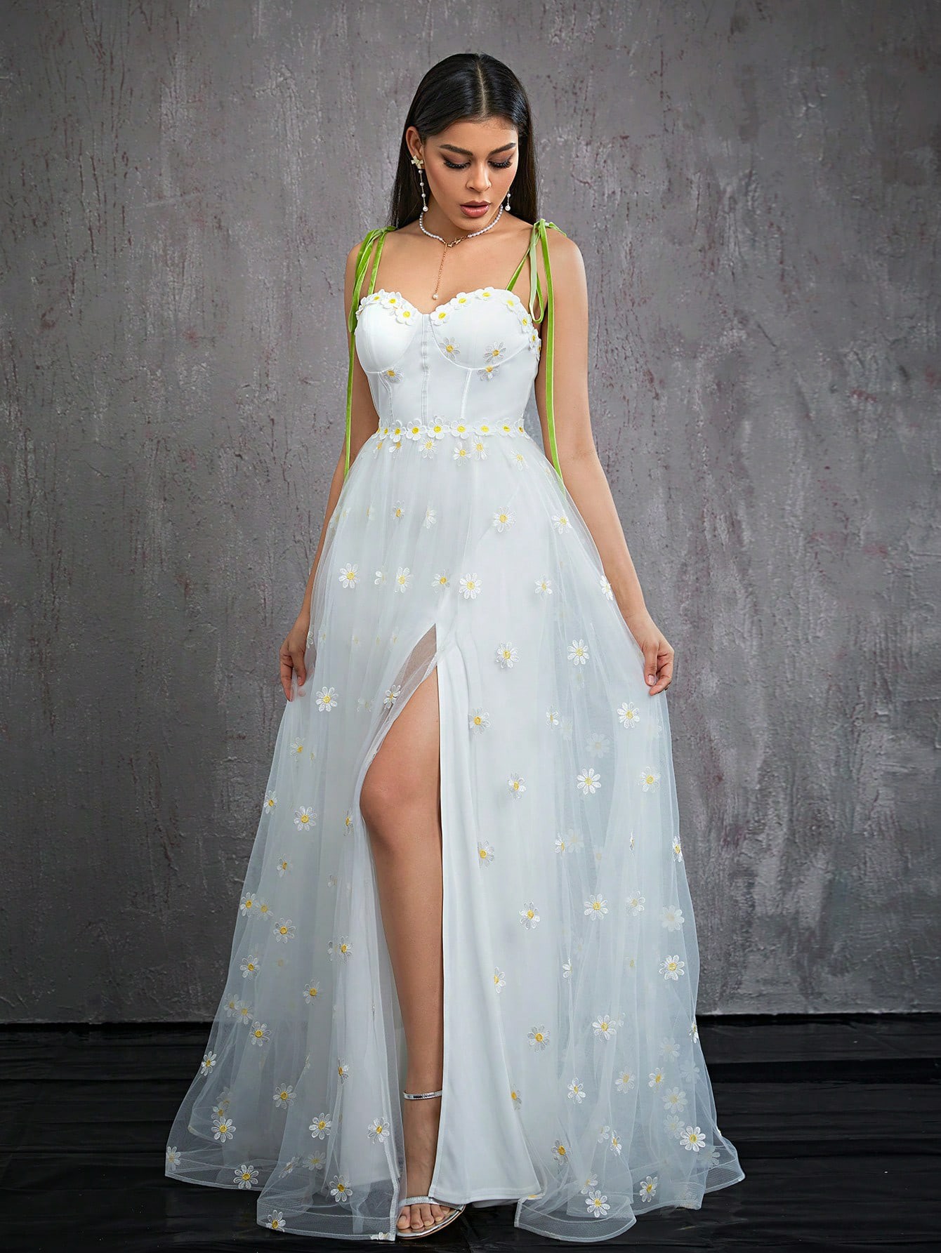 Suspender Tube Top Dress Slim Slit Evening Dress Floral Decoration Annual Meeting Adult Formal Dress