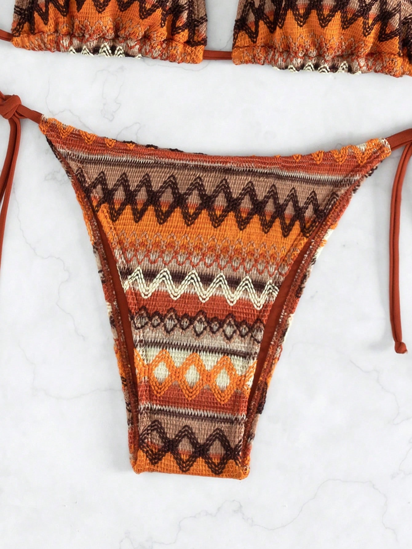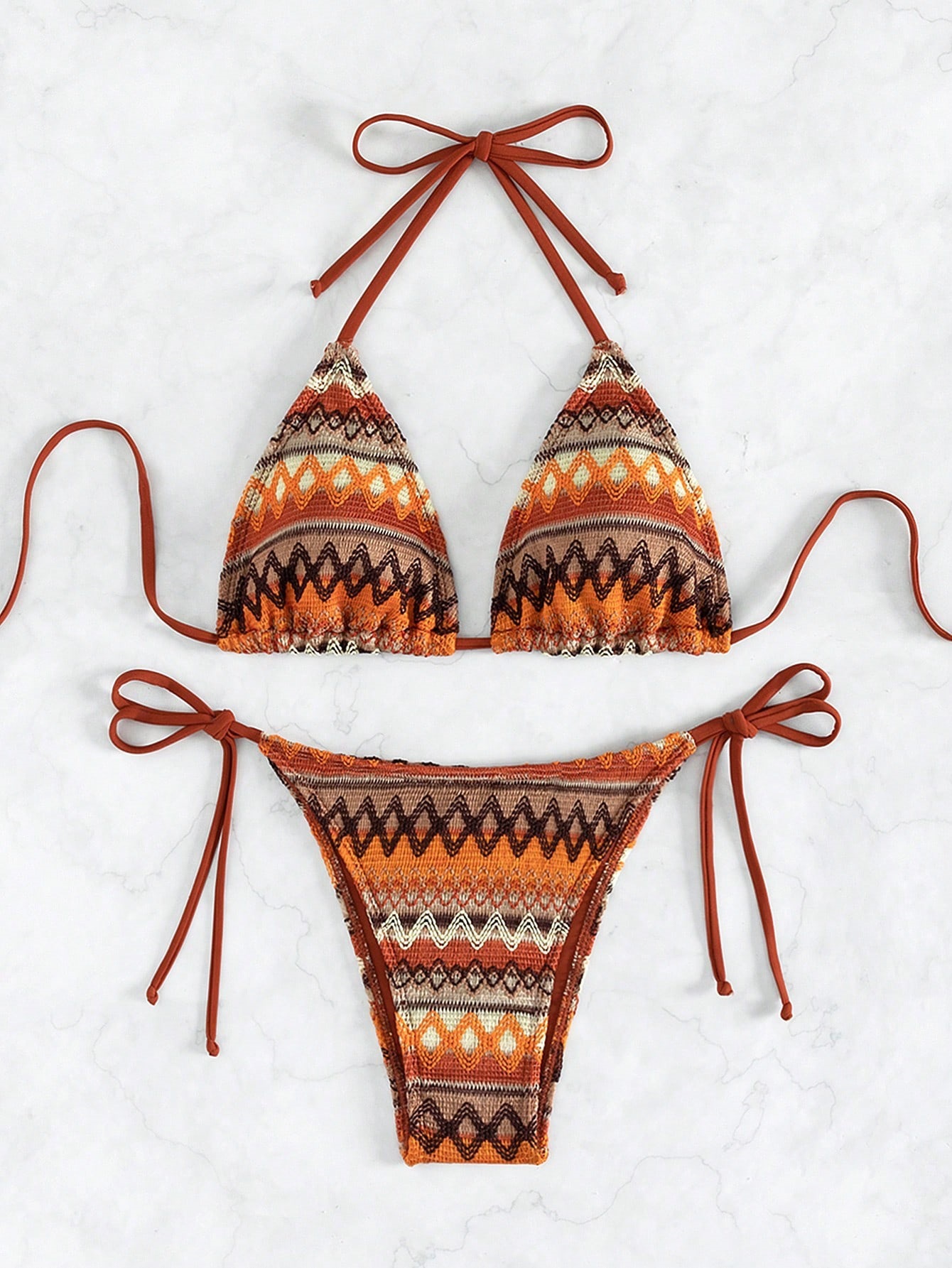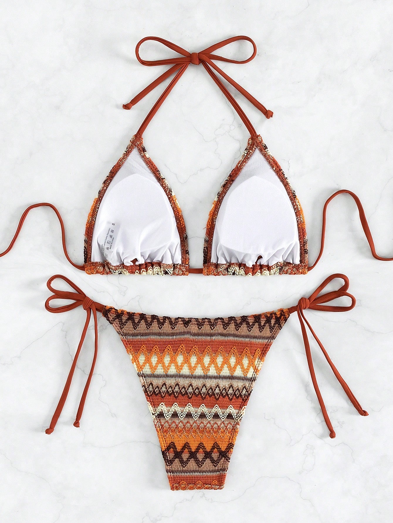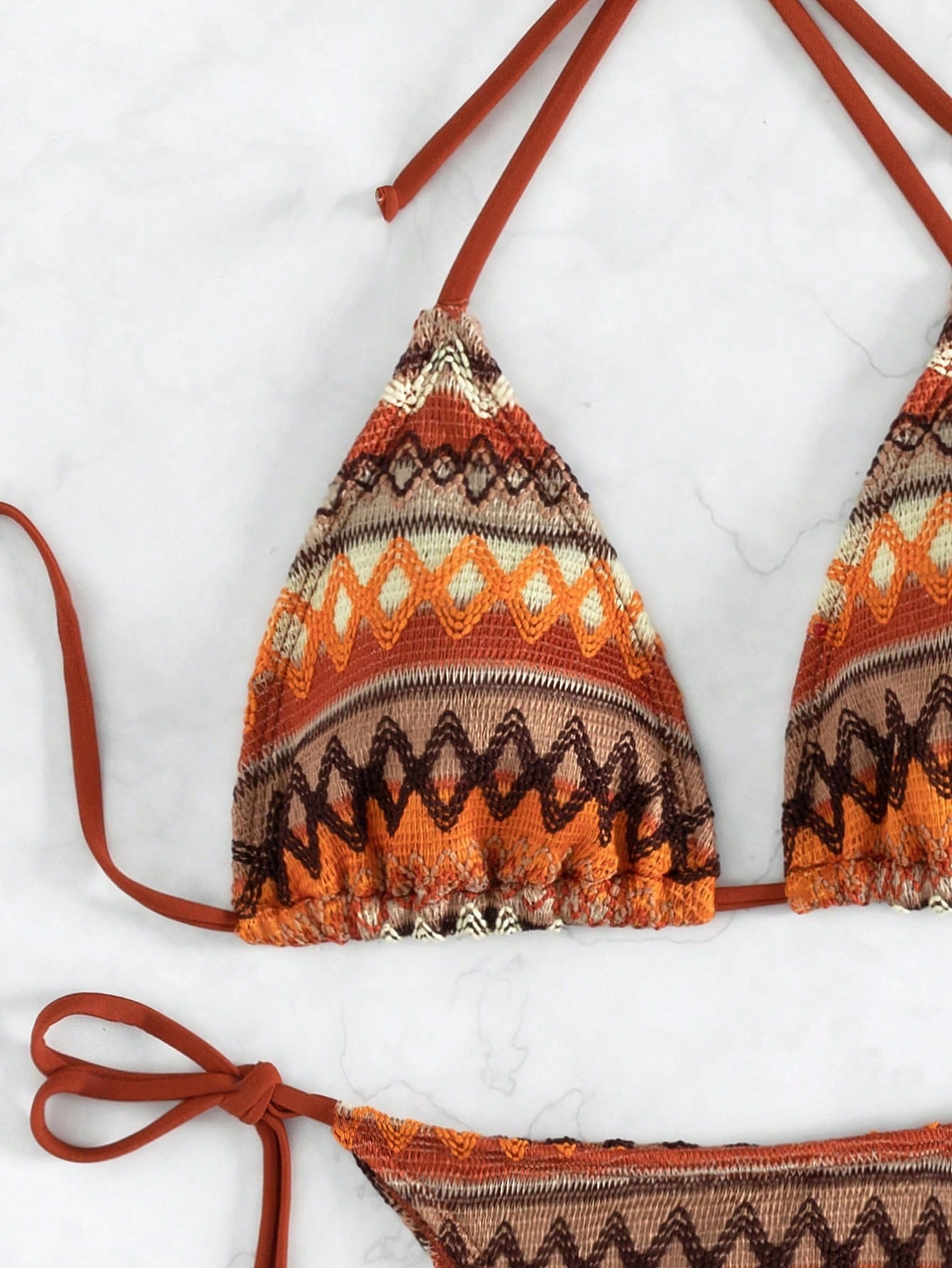Swimsuit Women Bikini Woven Beach Geometric Abstract Pattern Knotted Bikini Swimsuit