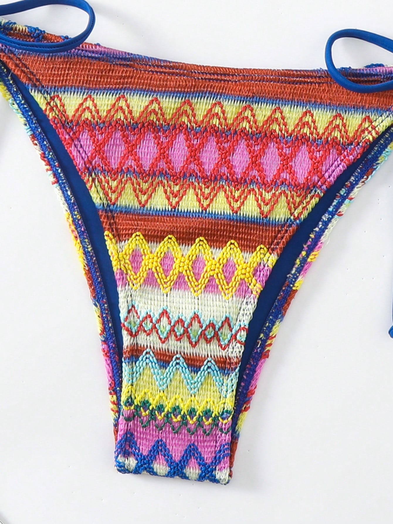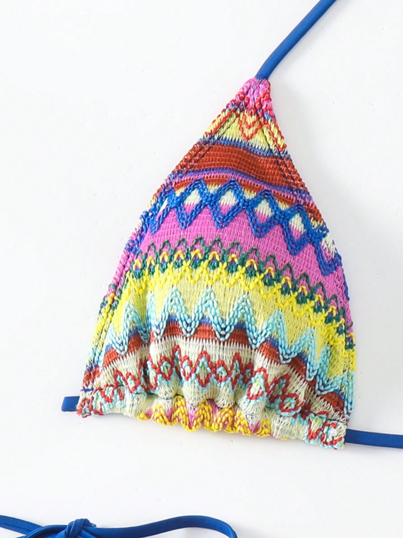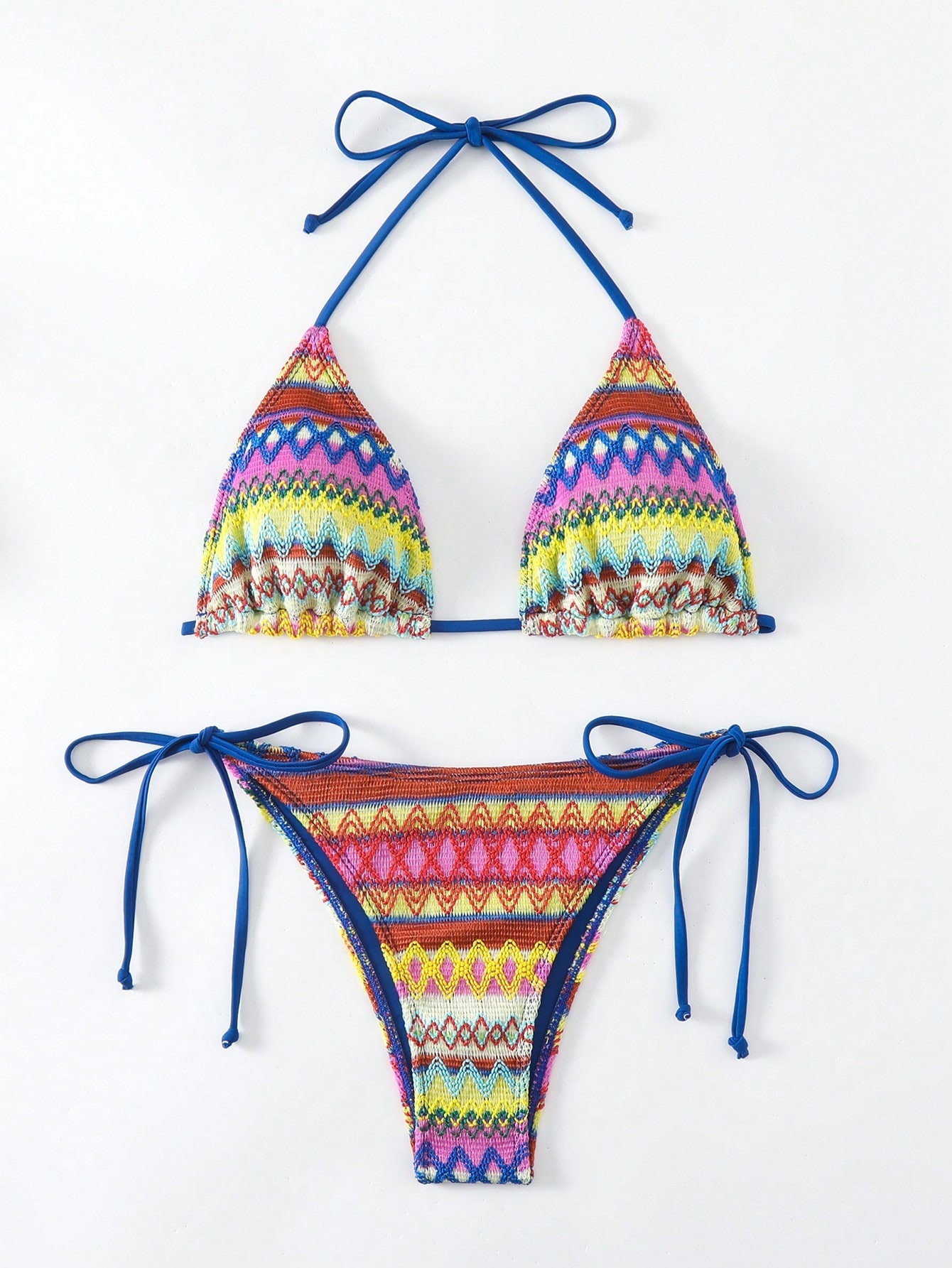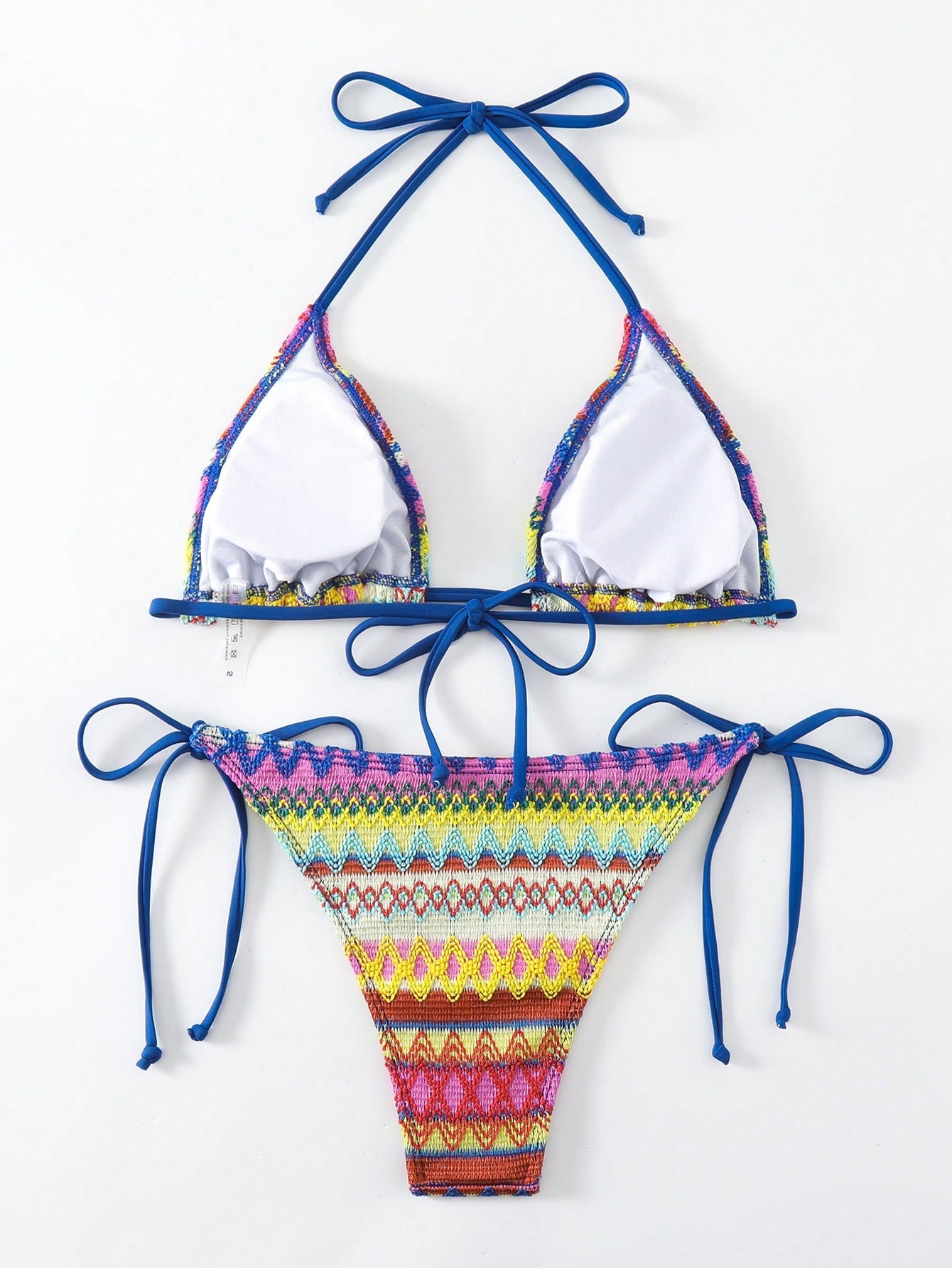 Swimsuit Women Bikini Woven Beach Geometric Abstract Pattern Knotted Bikini Swimsuit