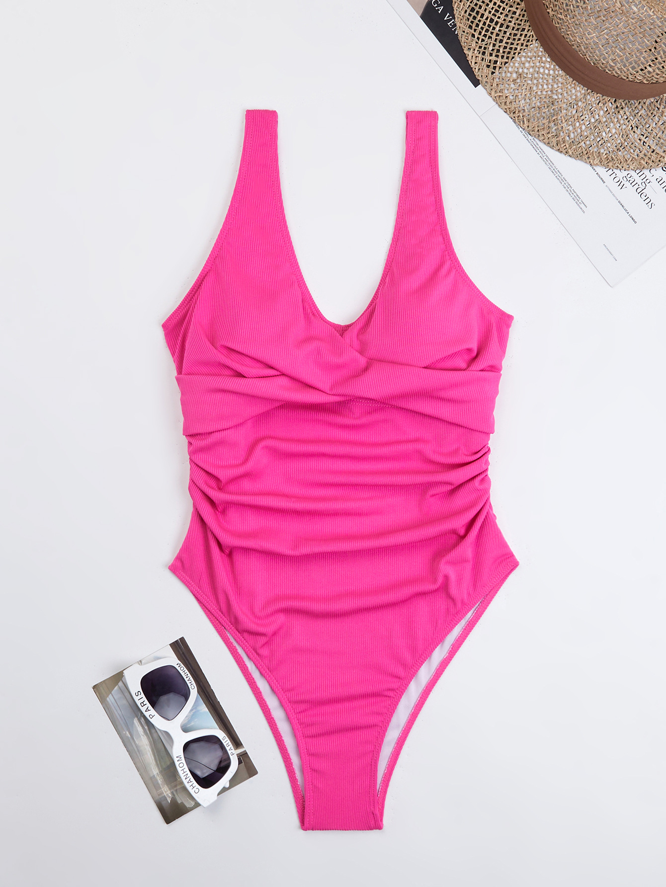 Swimsuit Women Triangle One Piece Solid Color Bikini Sports Conservative Swimsuit