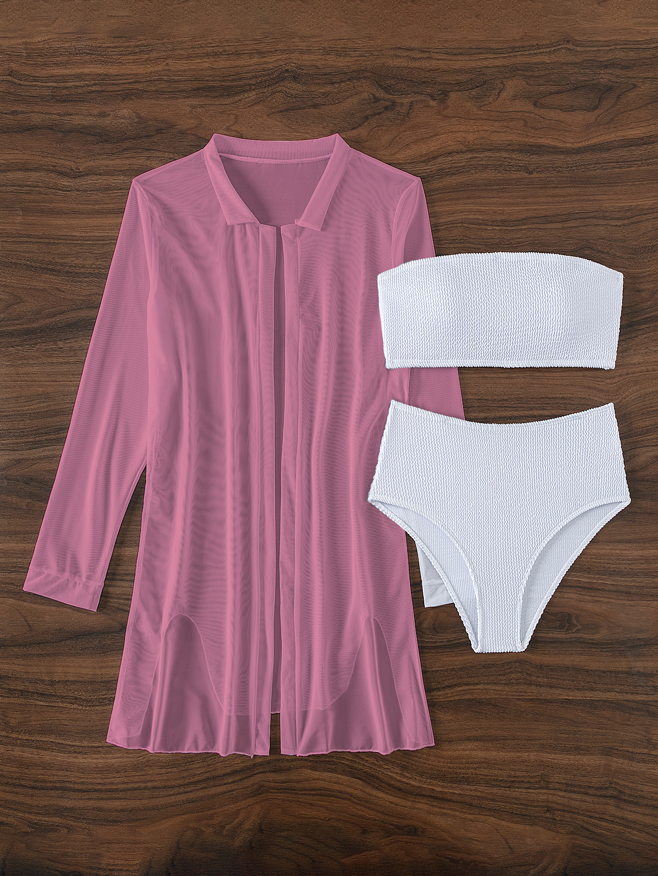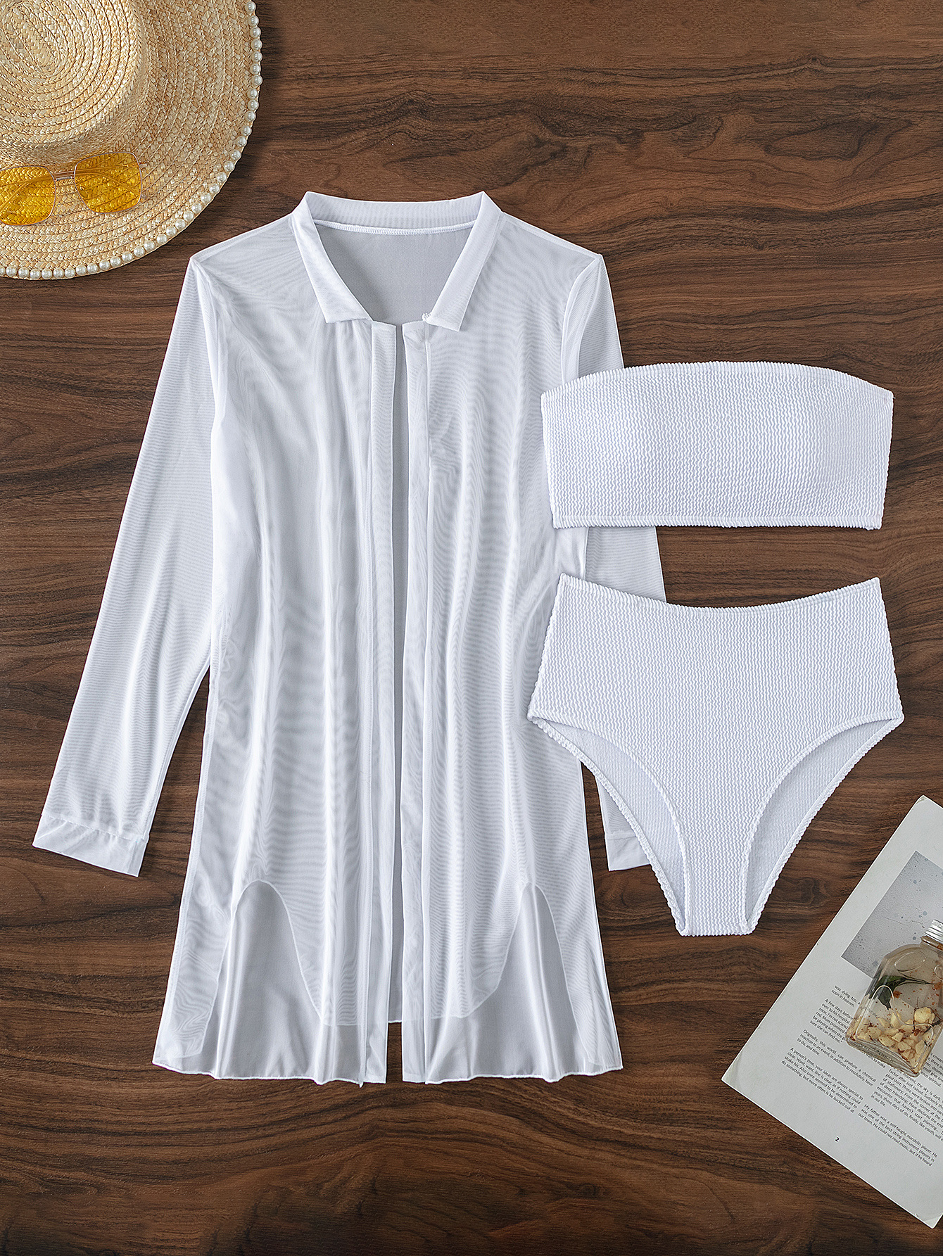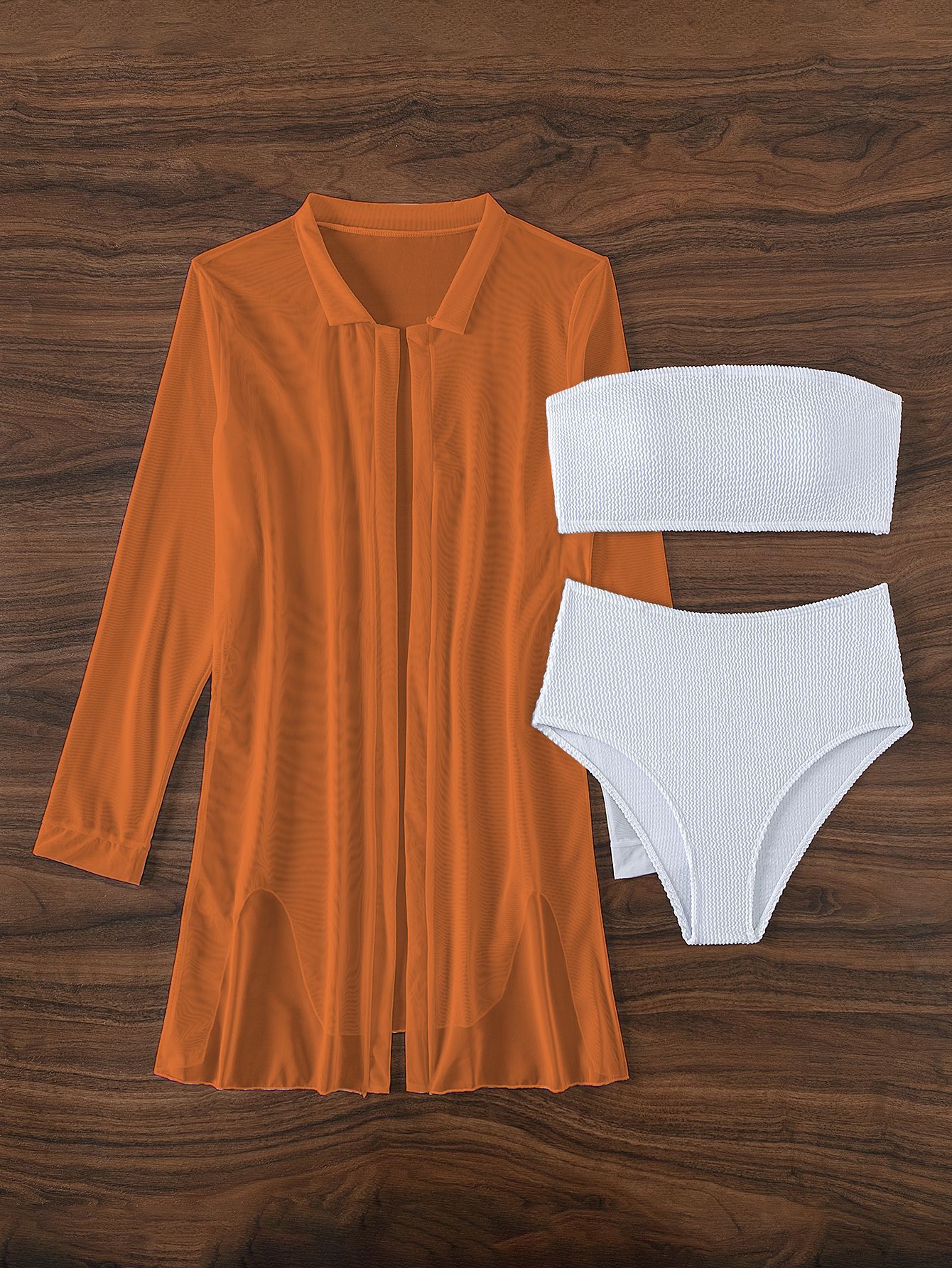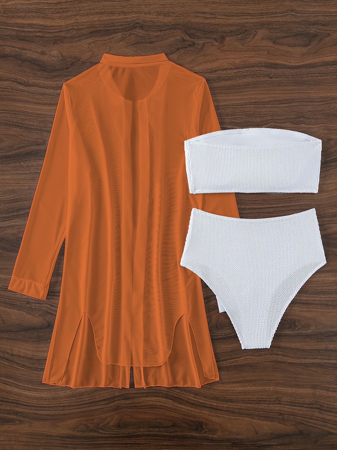 Swimsuit Women's Split High Waist Solid Color Bikini Internet Celebrity Blouse Long Sleeve Swimsuit