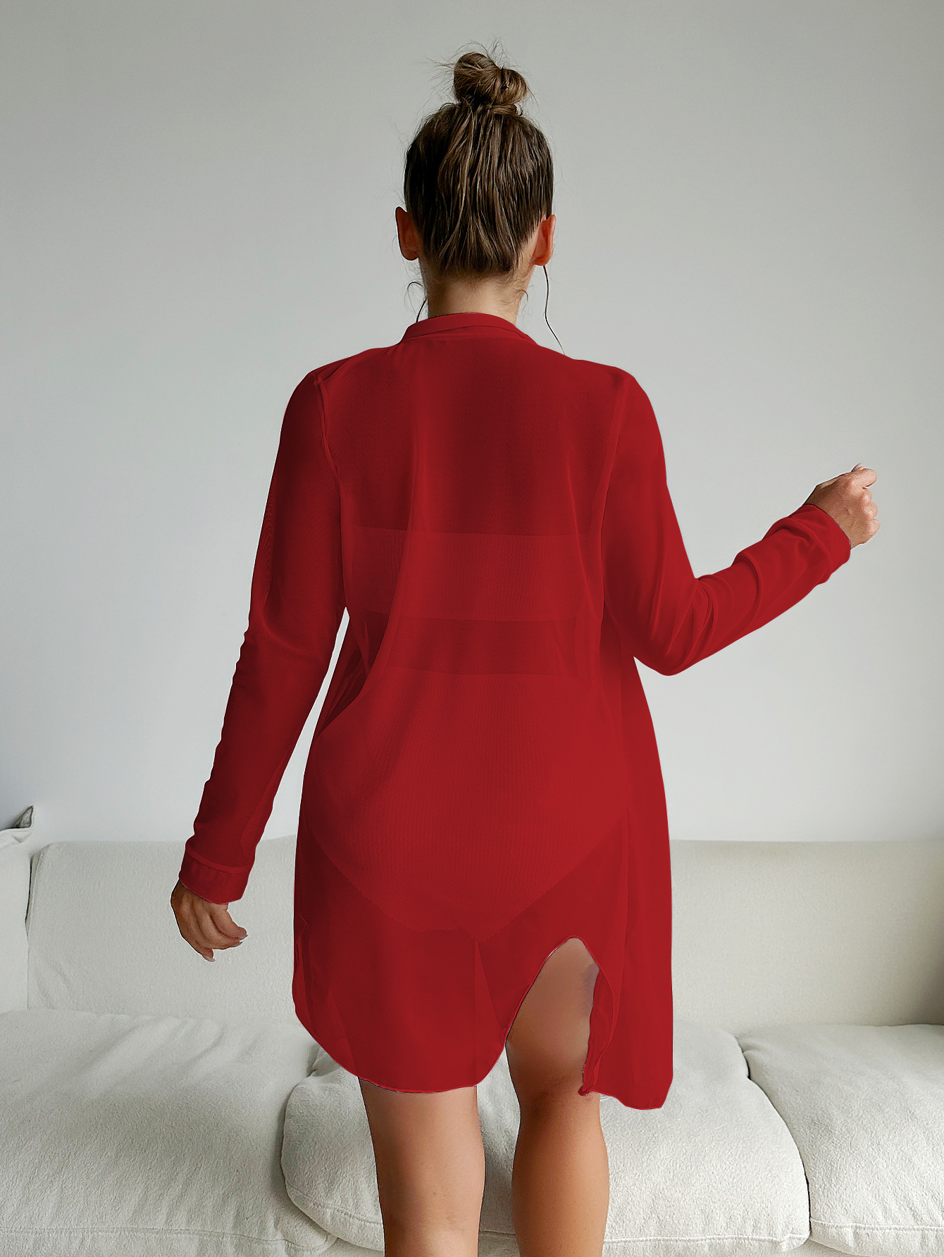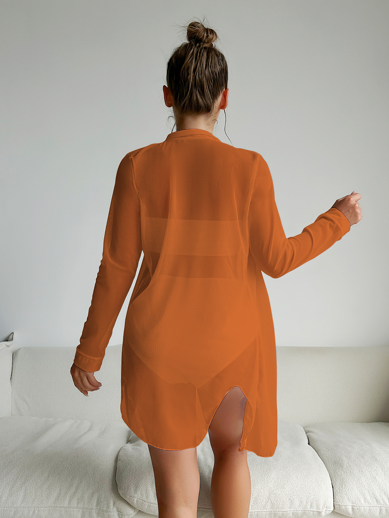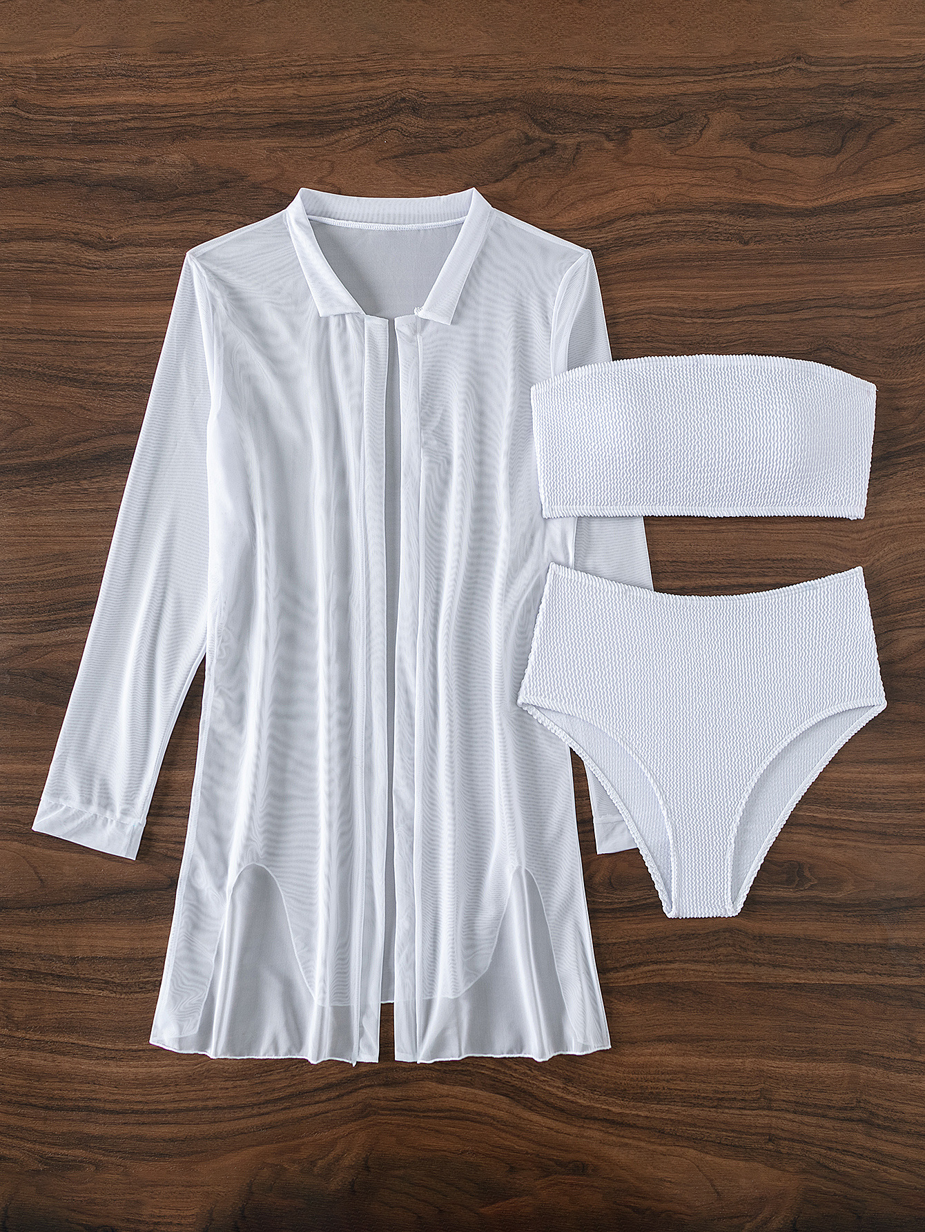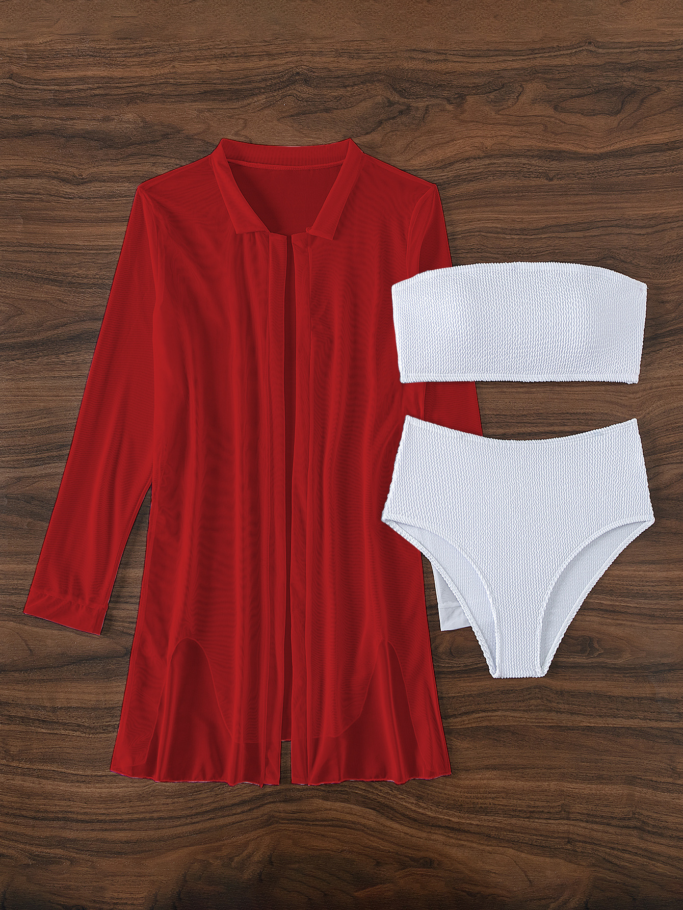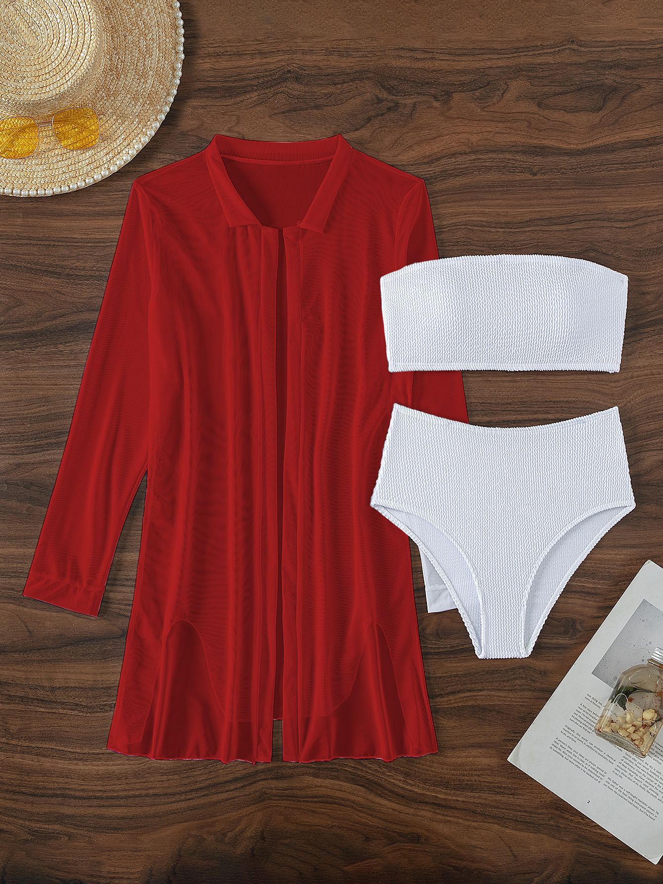 Swimsuit Women's Split High Waist Solid Color Bikini Internet Celebrity Blouse Long Sleeve Swimsuit