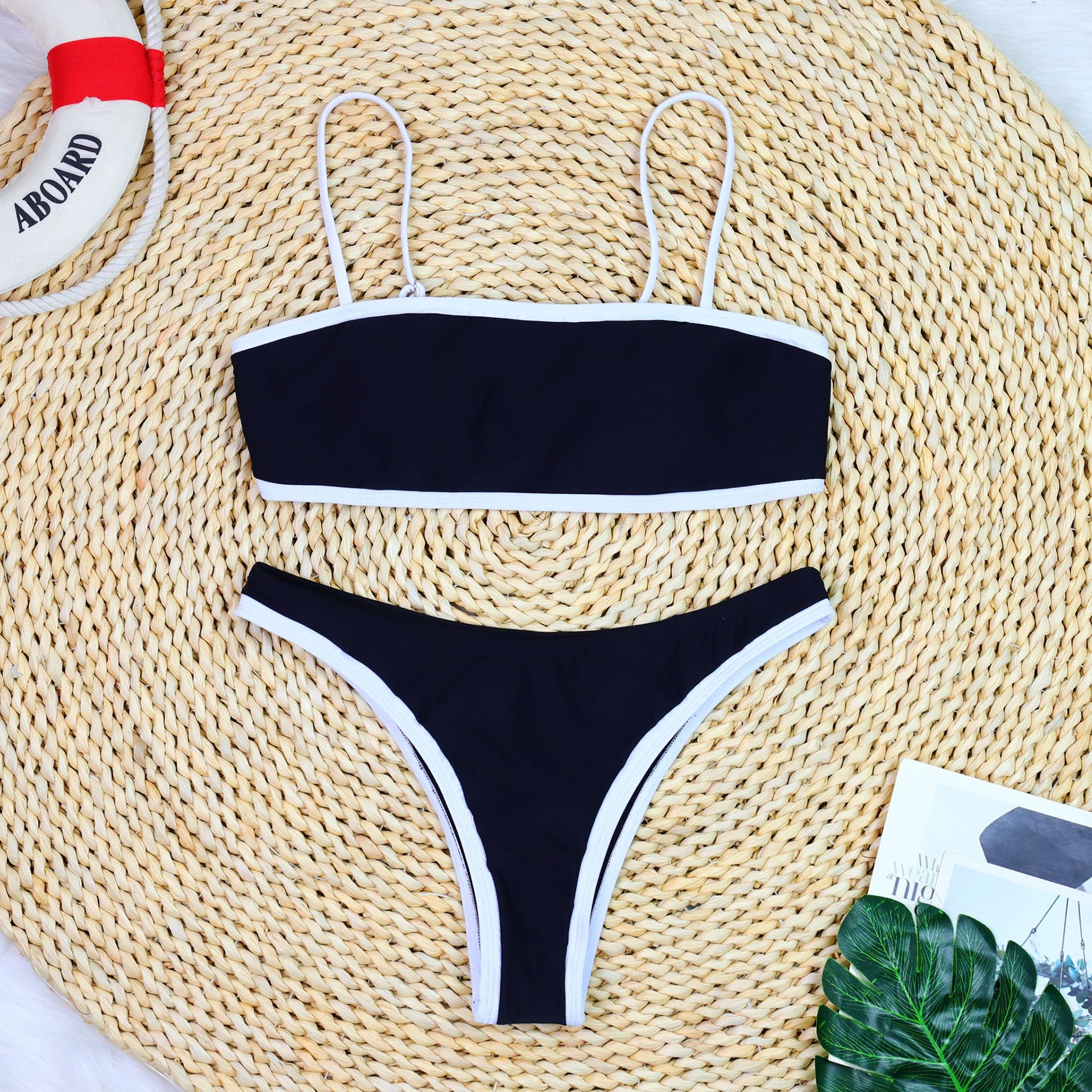 Tube Top Swimsuit Women High Waist Sexy Busty Gathering Color Matching Briefs Bikini Swimsuit