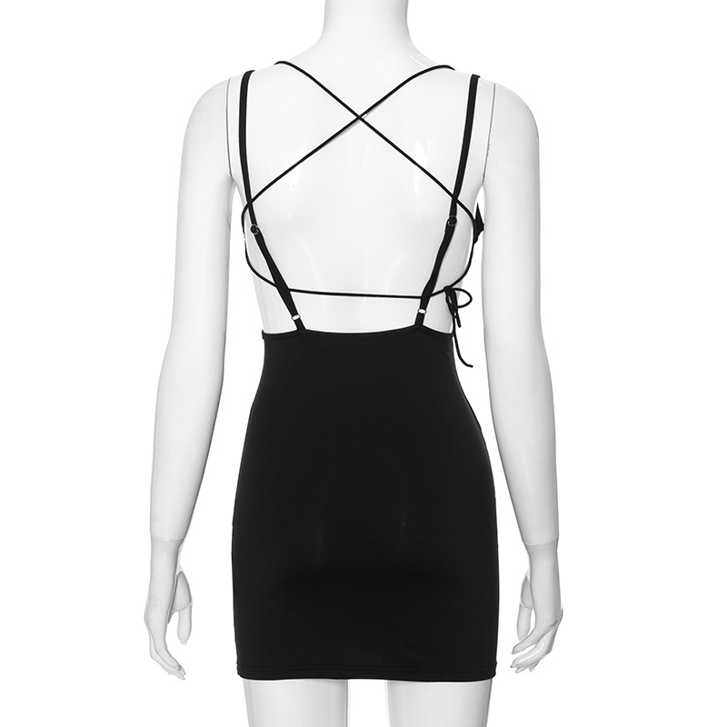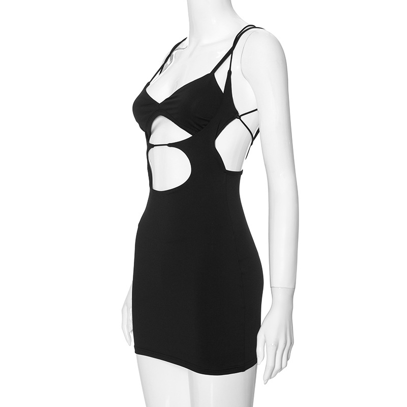 Women Clothing Spring Sleeveless Lace up Hollow Out Cutout out Sexy Sheath Dress