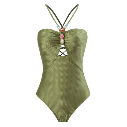 Arrival Solid Color One Piece Women Swimwear Suit French Retro Covering Belly Thin Swimming