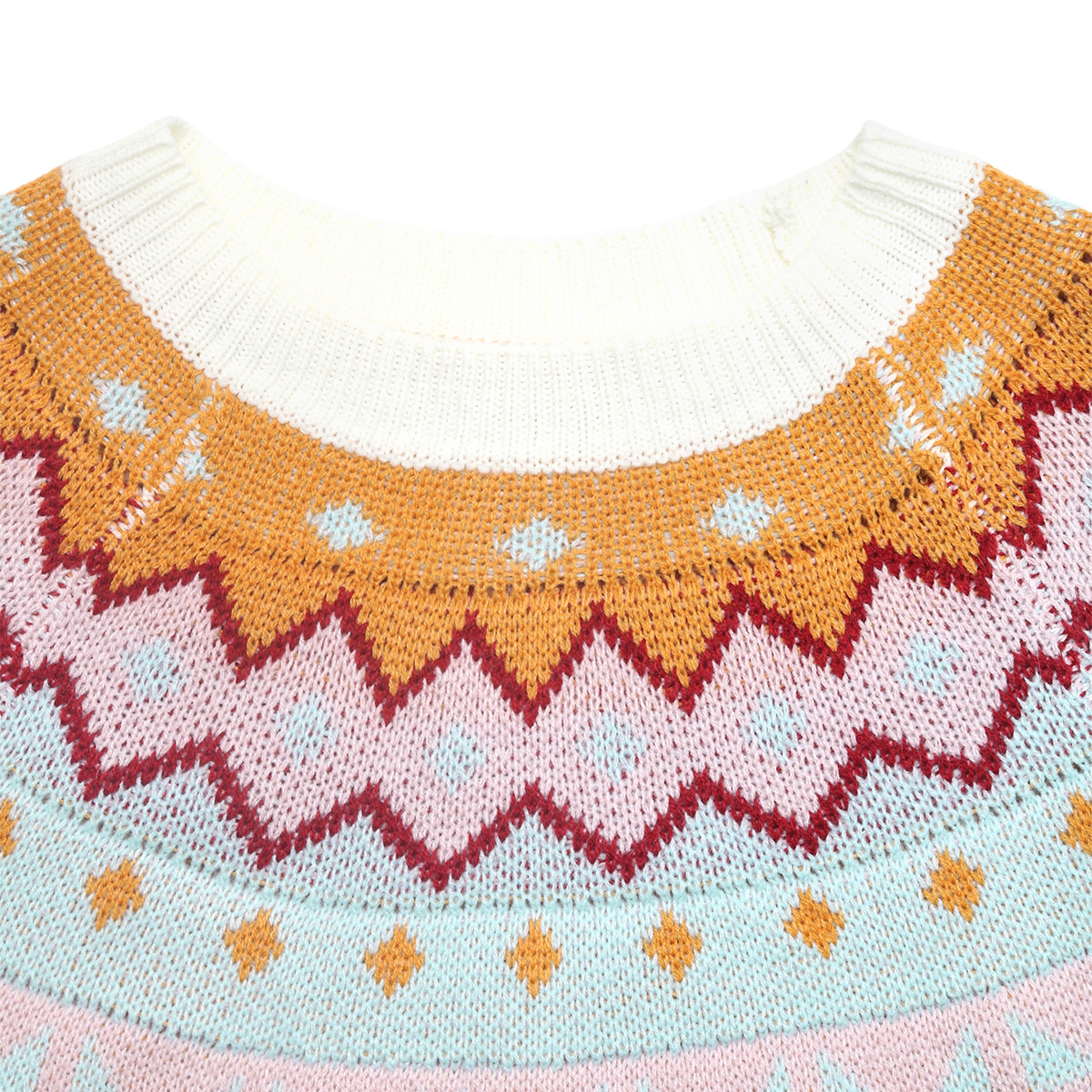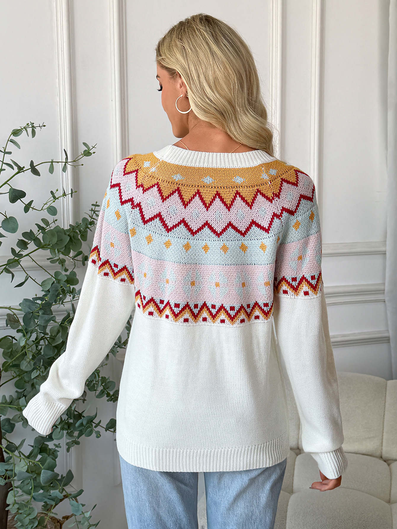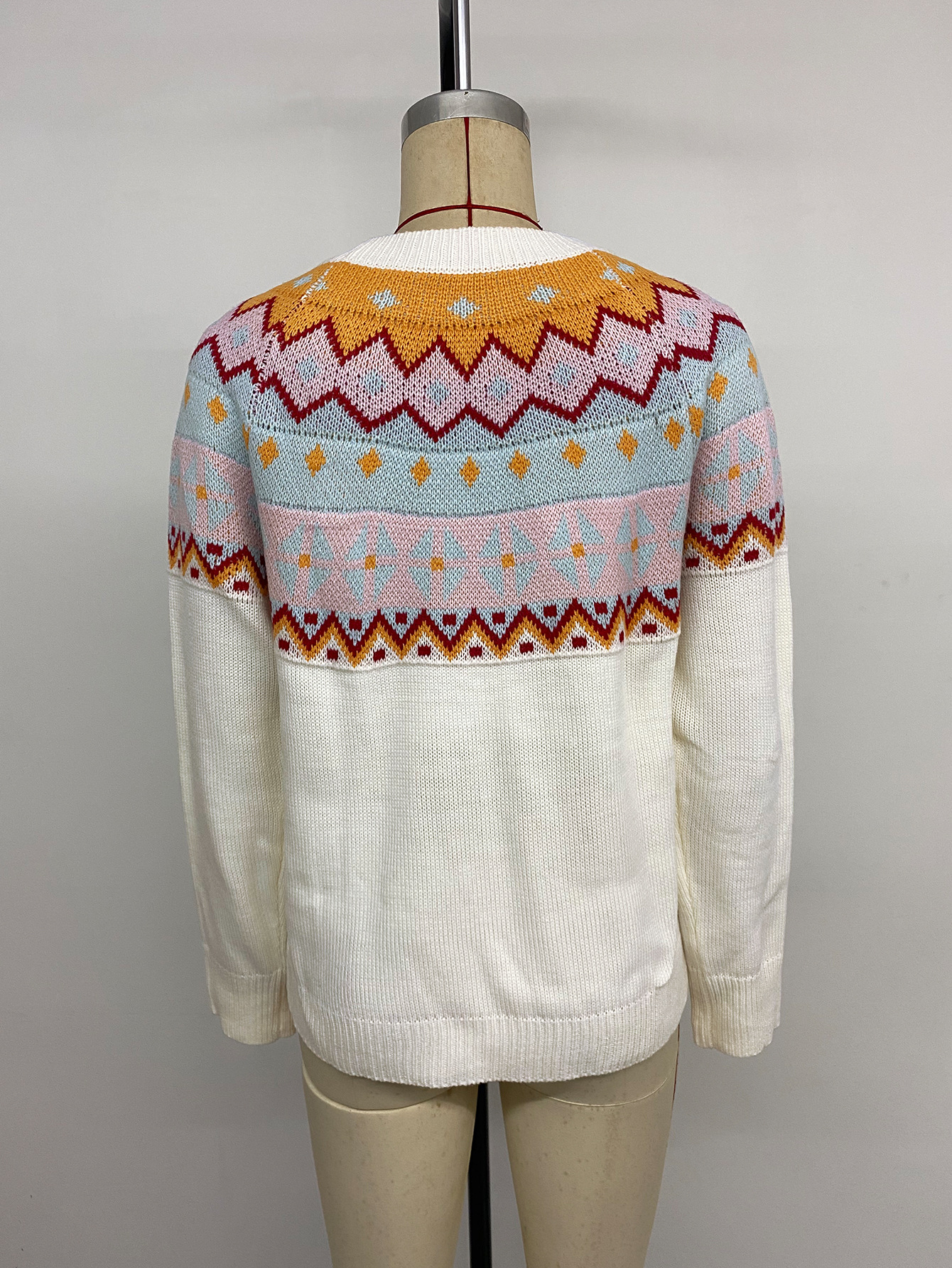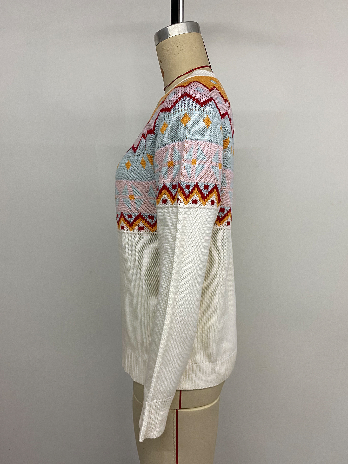 Autumn Winter Bottoming Shirt Casual Loose Contrast Color Jacquard Long Sleeve round Neck Sweaters Women Clothing
