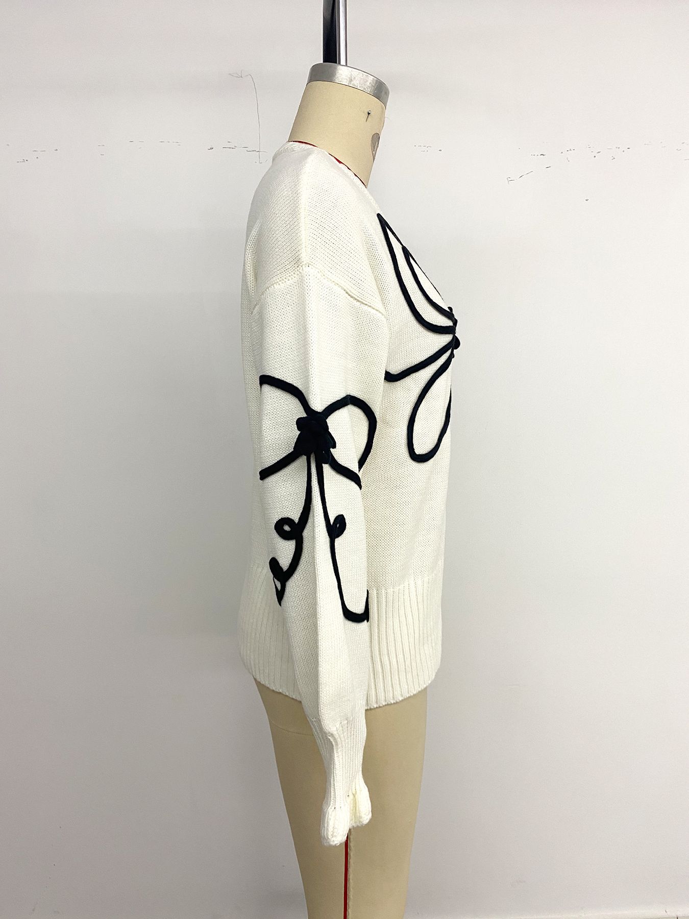Autumn Winter Cute Sweet Loose Bow Decorative round Neck Sweater for Women