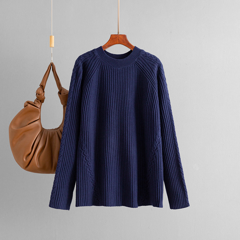 Autumn Winter Knitwear Women round Neck Loose Twisted Casual Solid Color Knitted