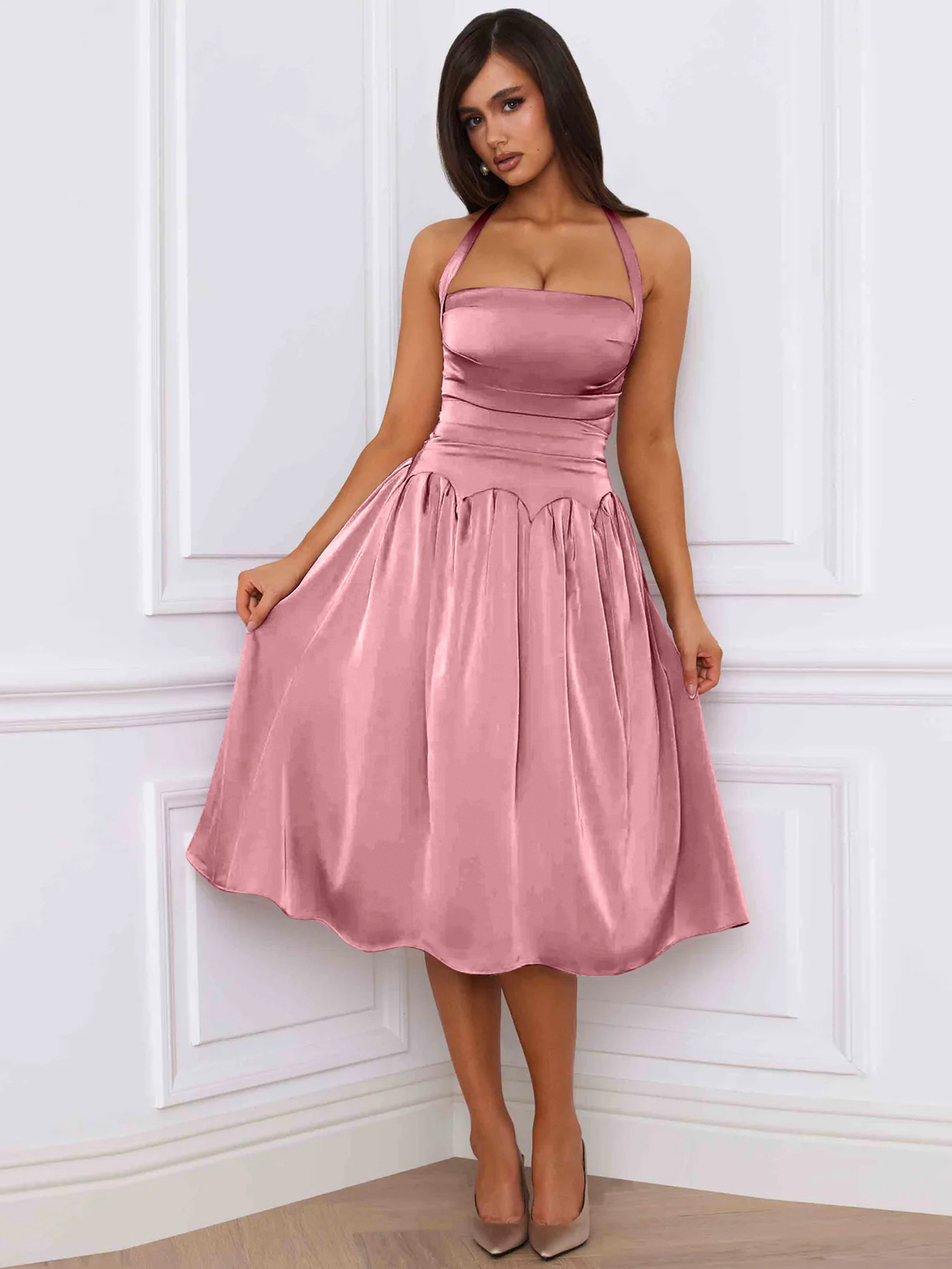 Autumn Winter Lace up Backless Midi Dress Sexy Sexy Halter Sleeveless Dress