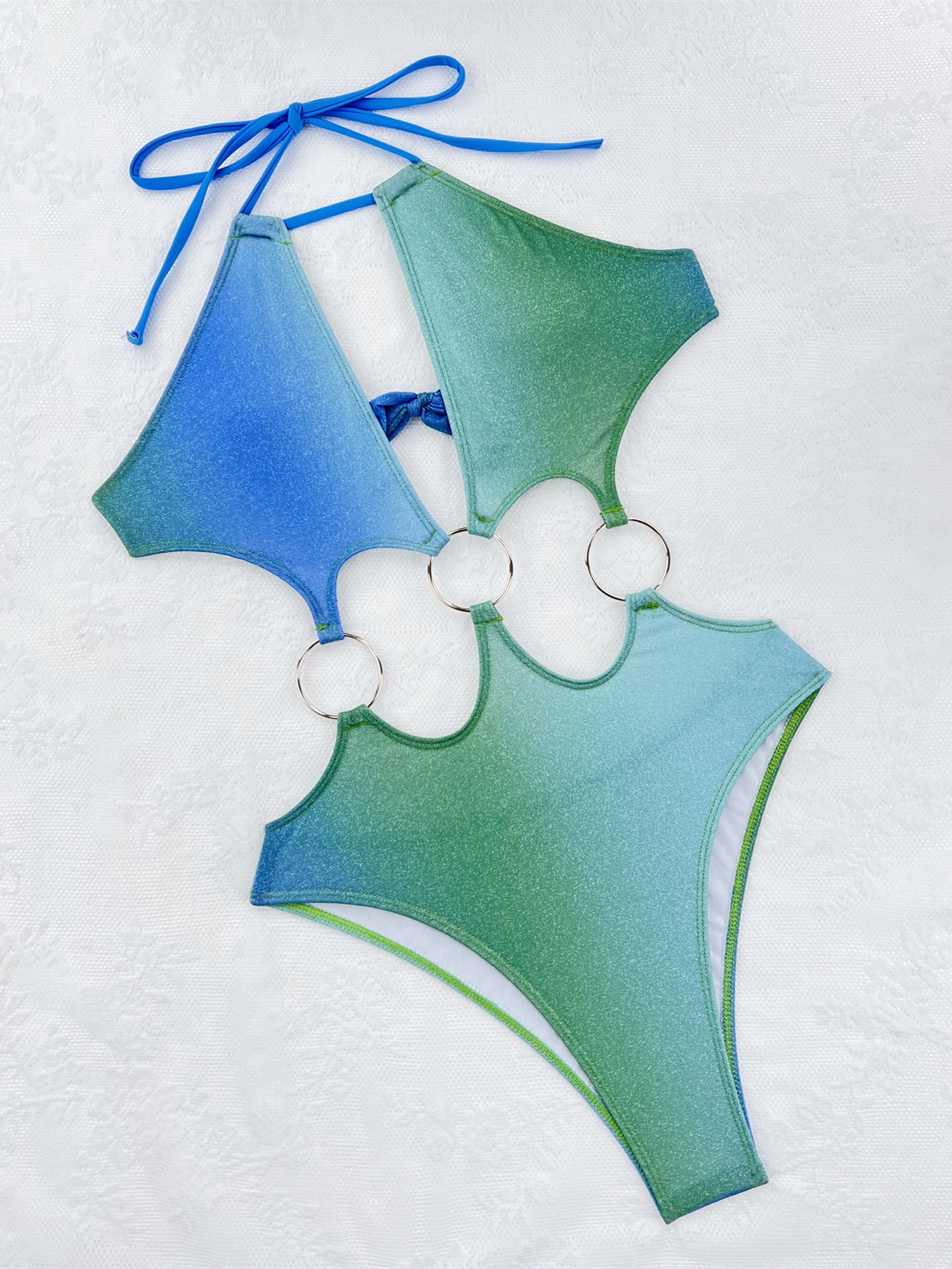Bikini Double One Piece Swimsuit Sexy Bikini Swimsuit Women Backless Swimsuit Gradient Bikini