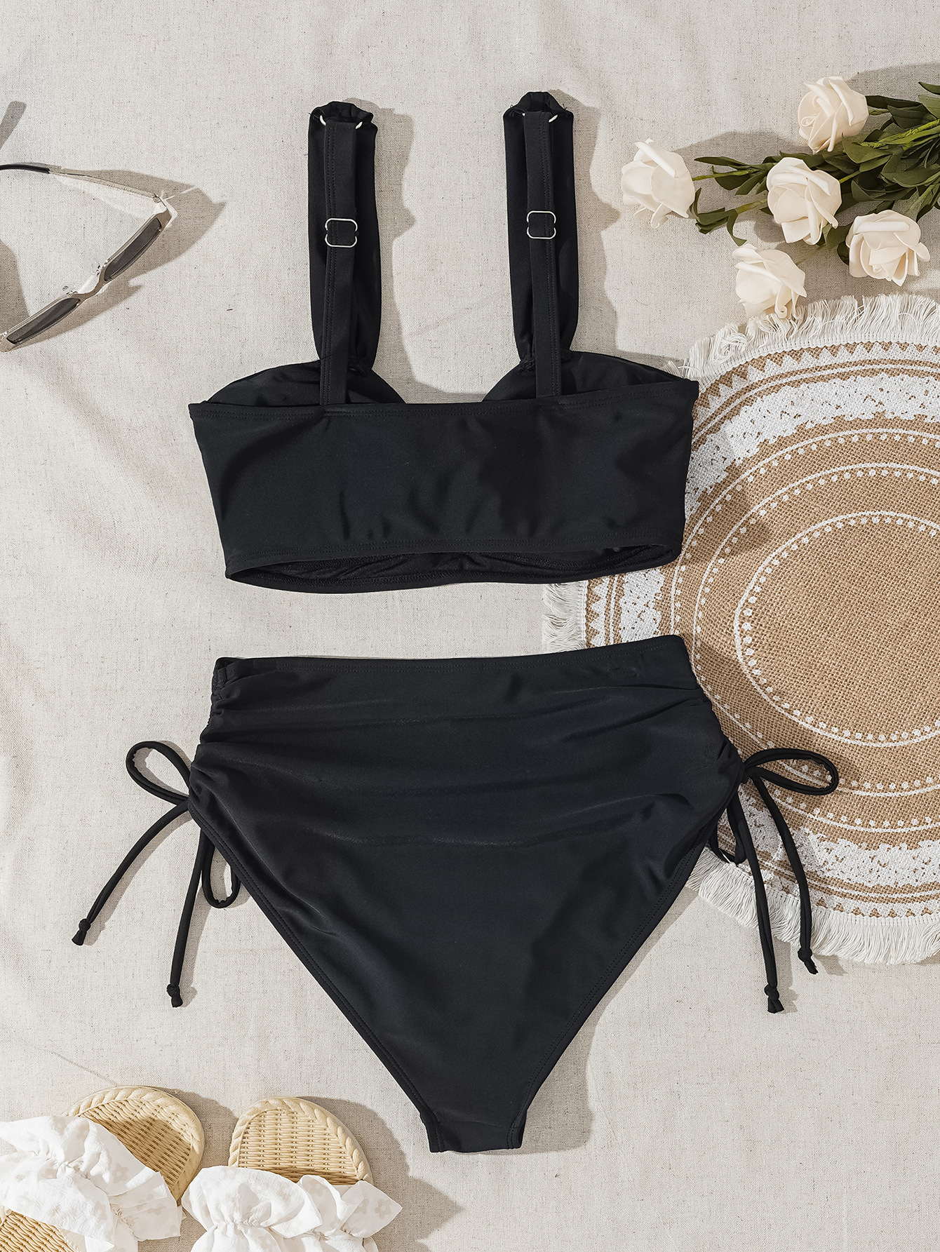 Bikini Wide Shoulder Strap Drawstring High Waist Sexy Bikini Split Swimwear Swimsuit Women