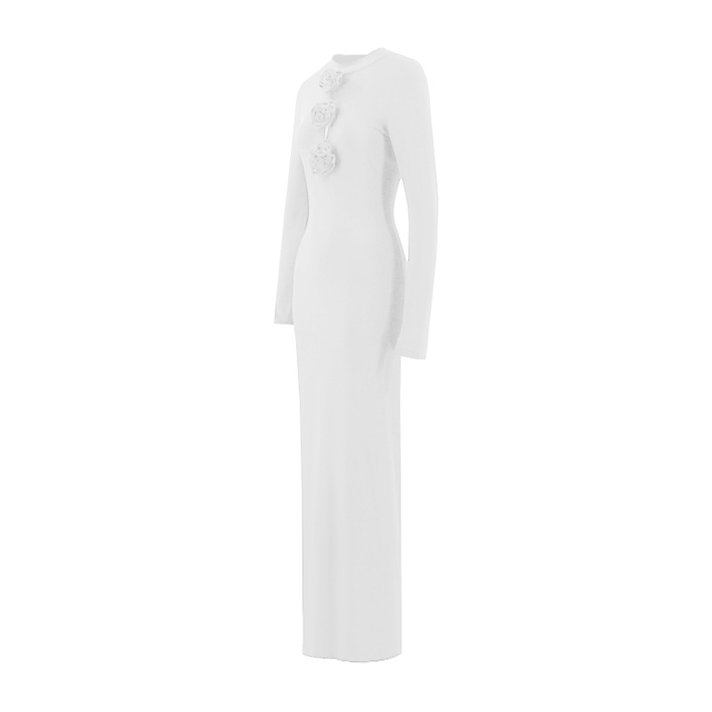 Fall Women Clothing Sexy Cutout Socialite Private Clothing Elegant Three Dimensional Floral Long Sleeve Slim Maxi Dress