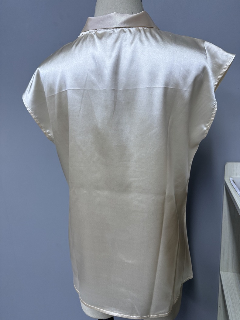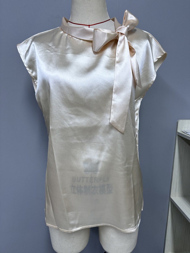 Half Open Collar Bow Satin Top Special Interest Design Satin Women Clothing T shirt
