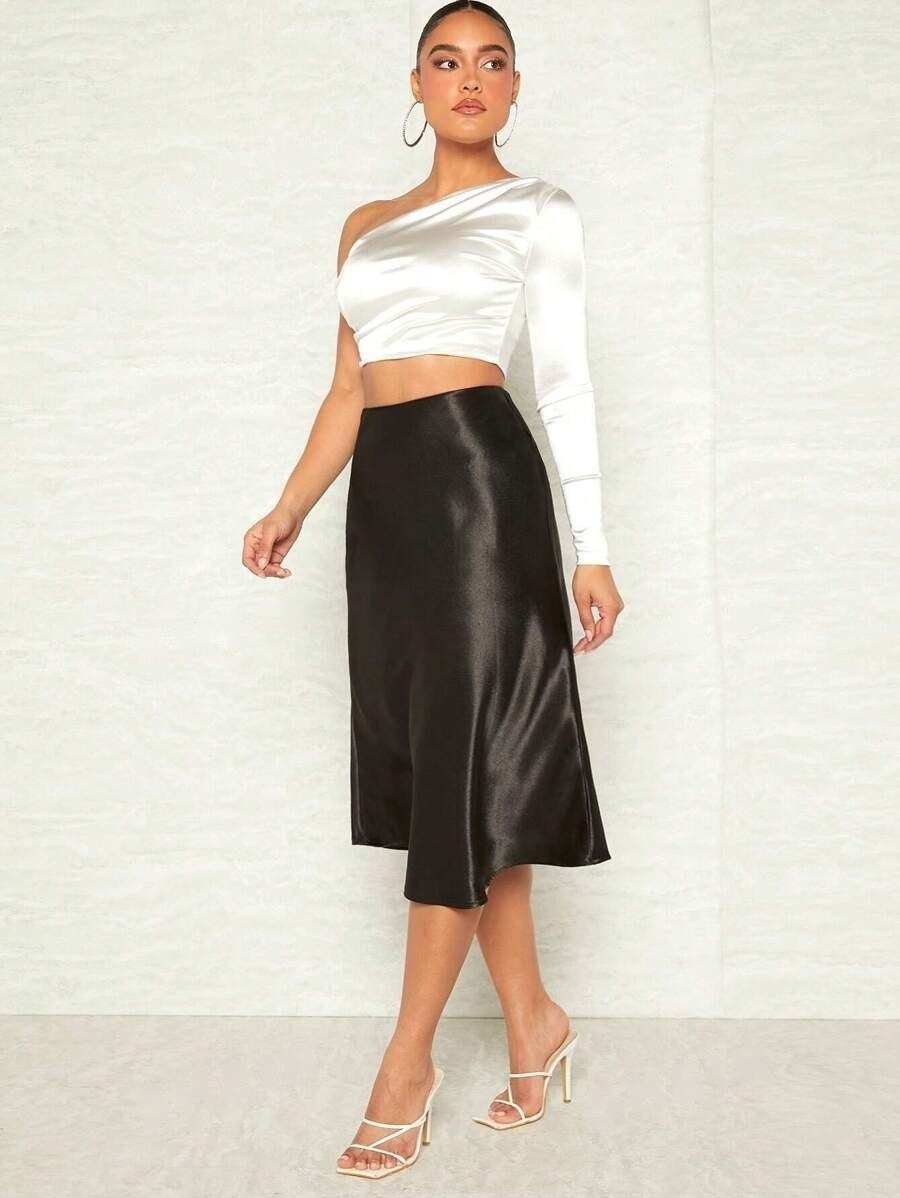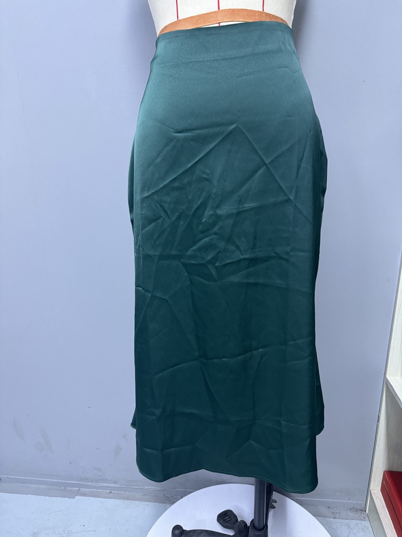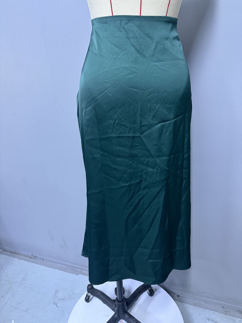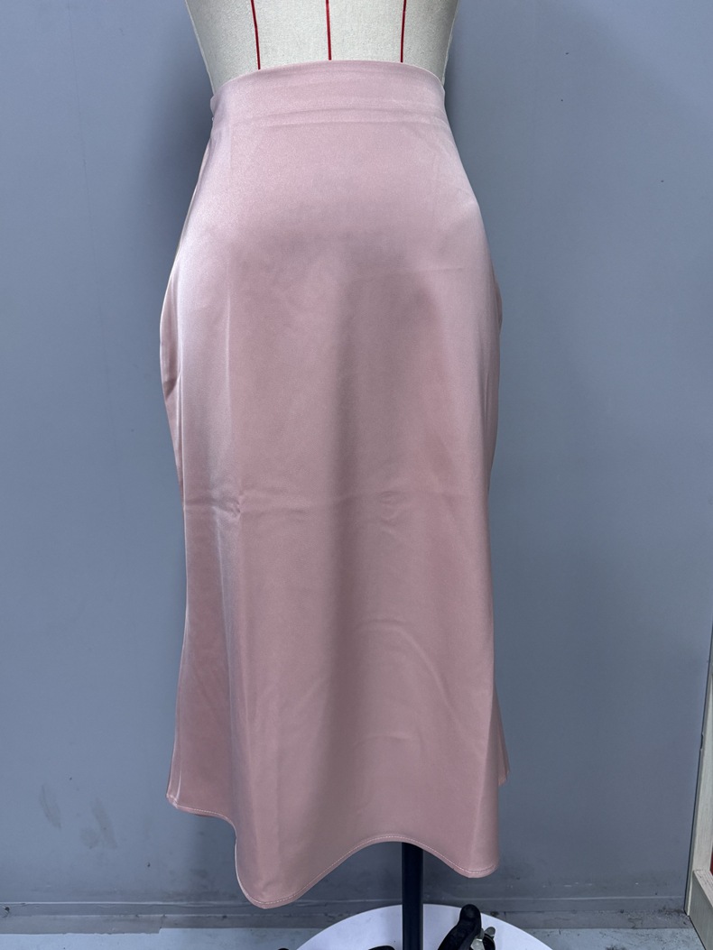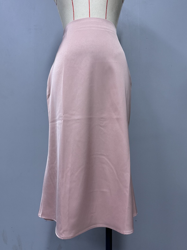 High Waist Satin Skirt Autumn Winter Women Midi Skirt Zipper Satin Skirt