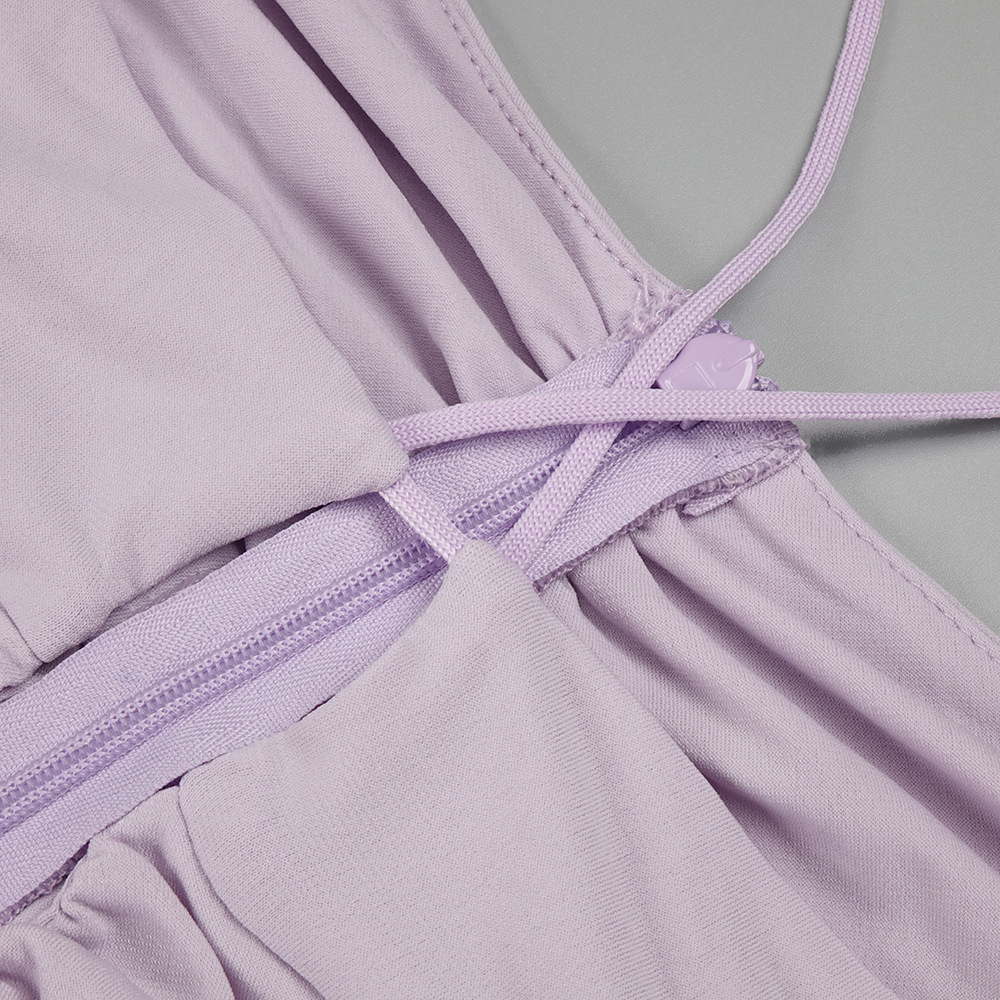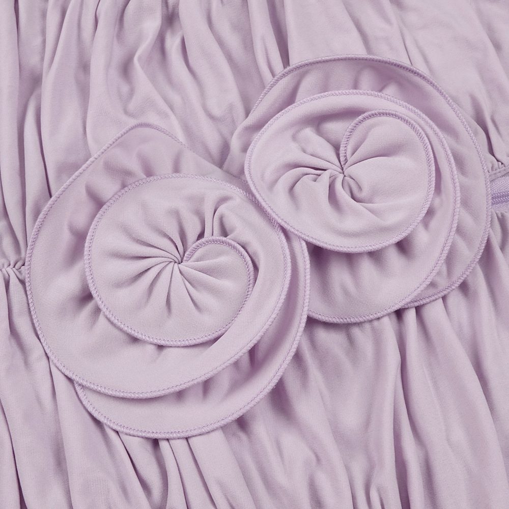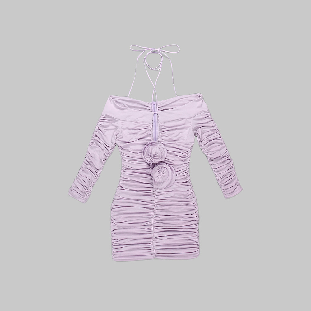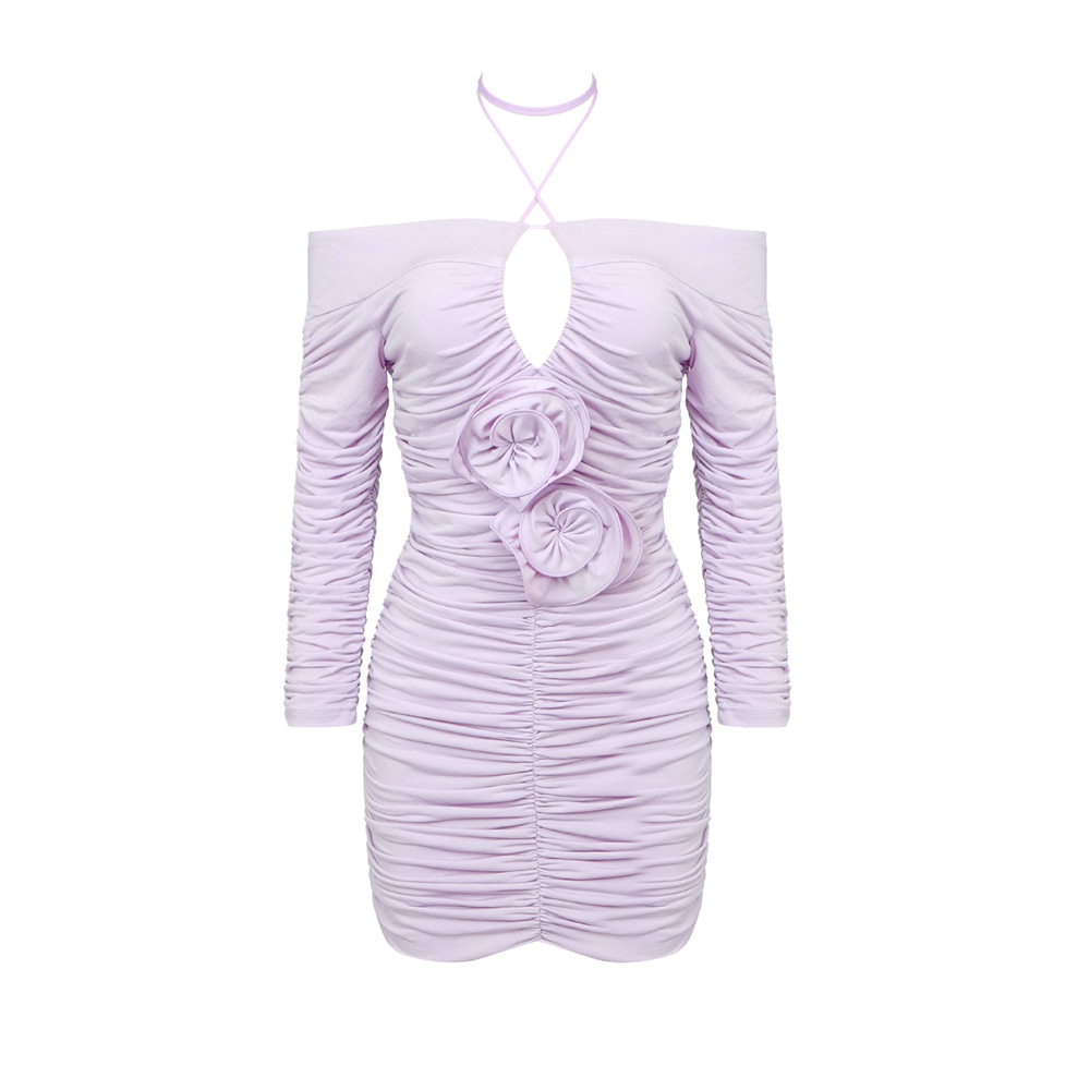 Light Purple Hollow Out Cutout Pleated Three Dimensional Floral Hip Women Clothing Halter Dress Autumn