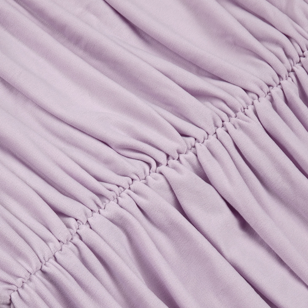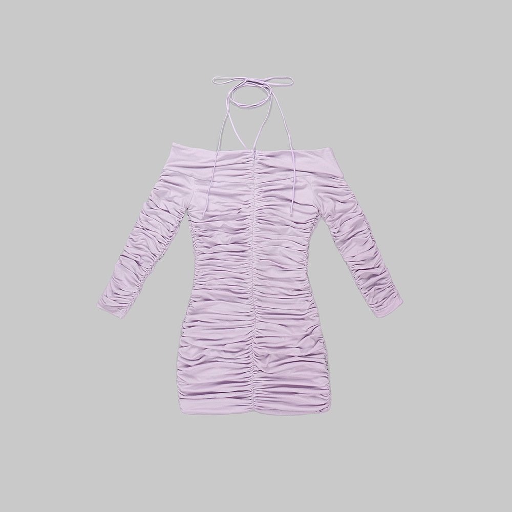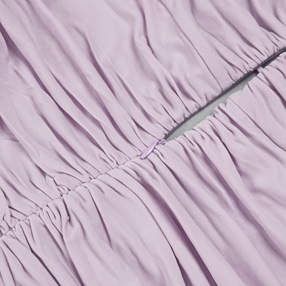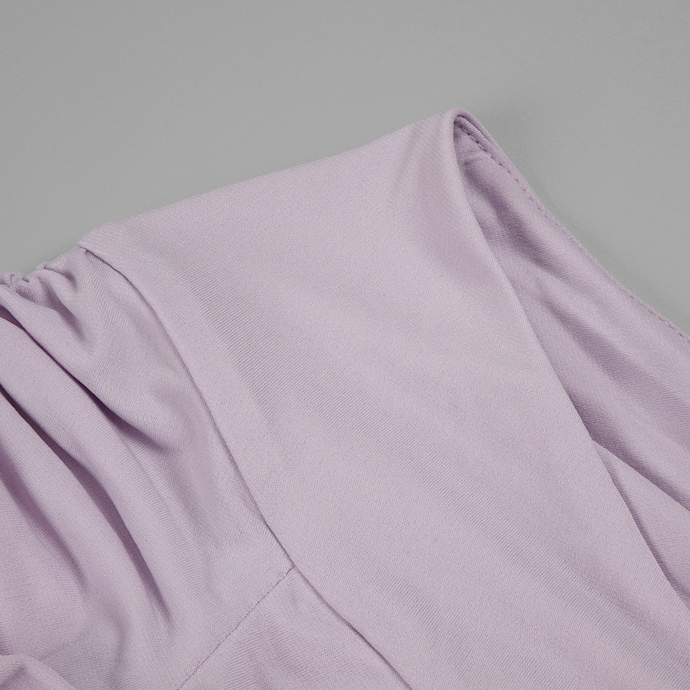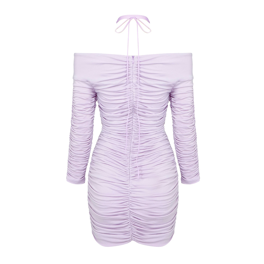 Light Purple Hollow Out Cutout Pleated Three Dimensional Floral Hip Women Clothing Halter Dress Autumn