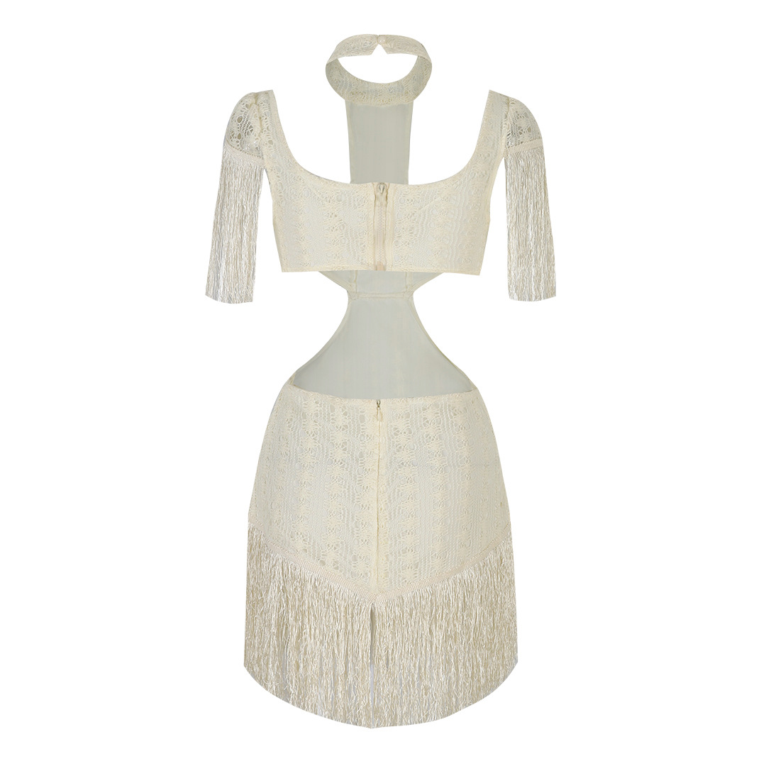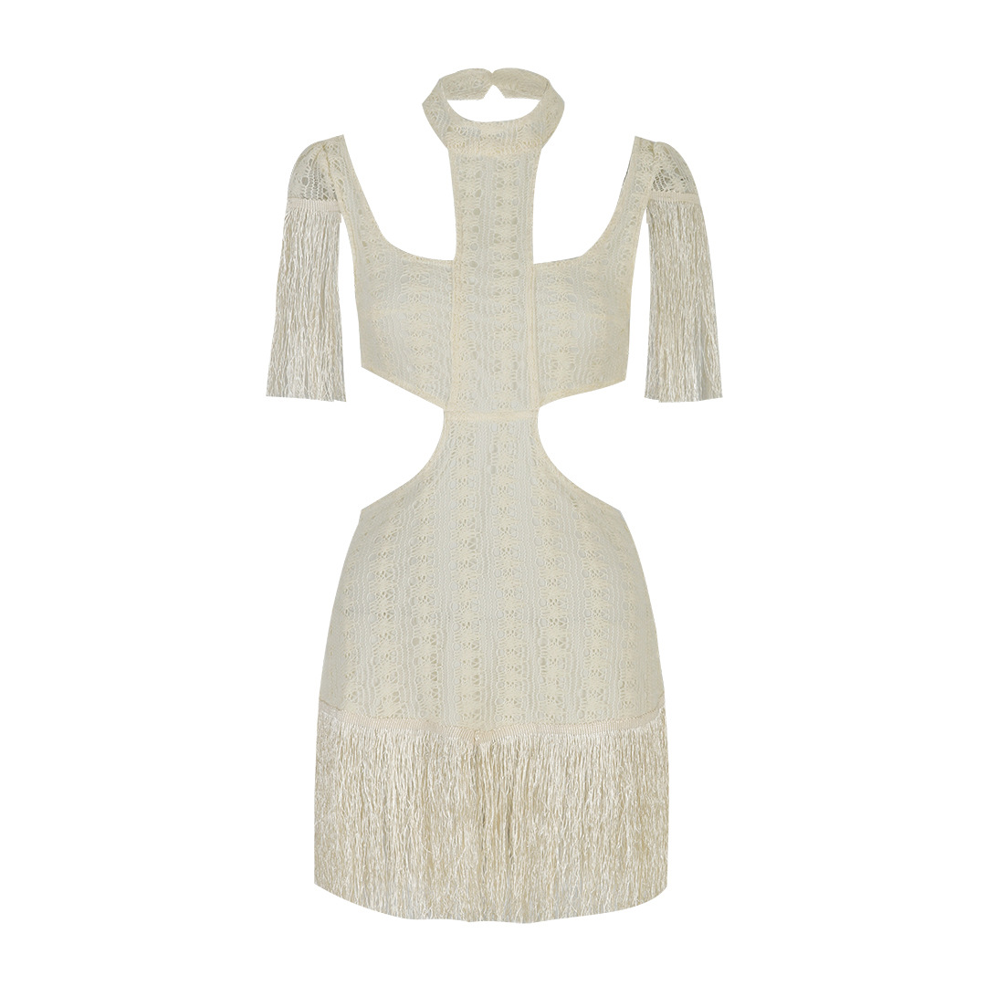 One Piece Hollow Out Cutout Beach Dress Set Sexy Waist Hollow Out Cutout out Seaside Vacation Tassel Summer