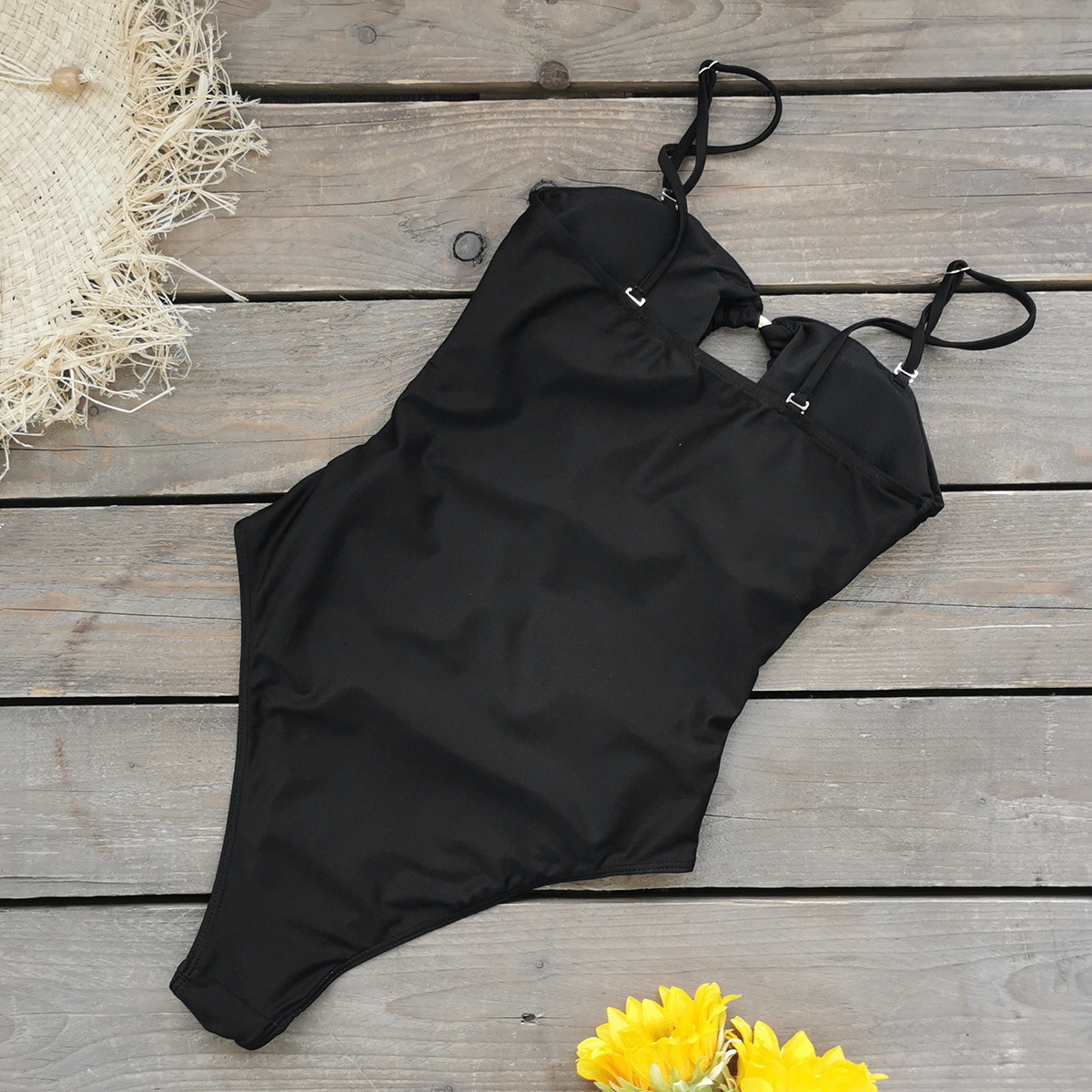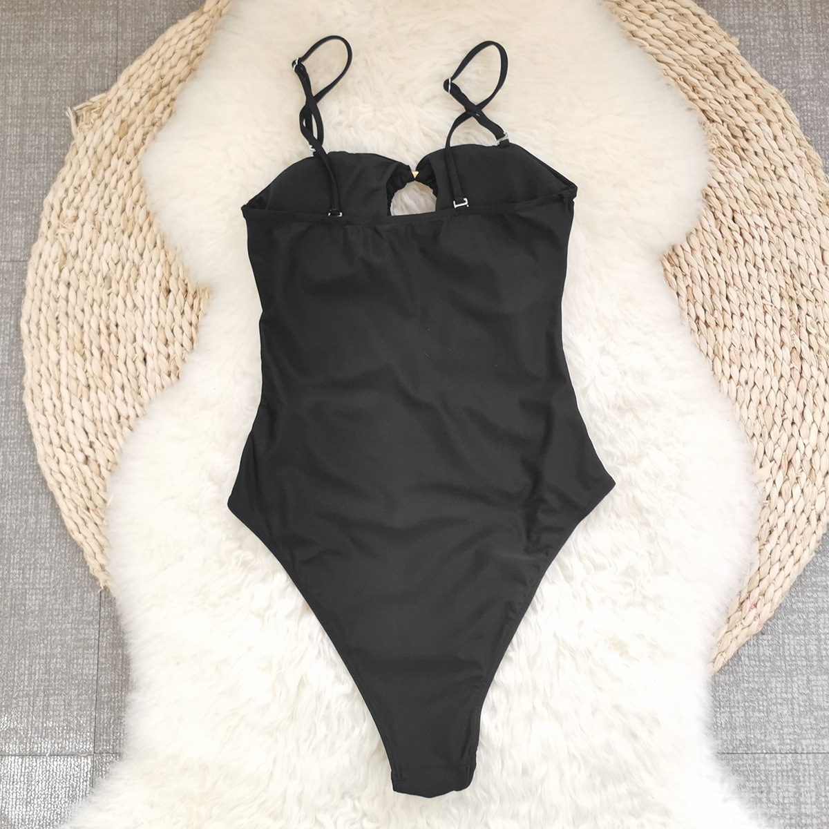 Pure Black One Piece Swimsuit Women Sexy Hollow Out Cutout out Tube Top One Piece