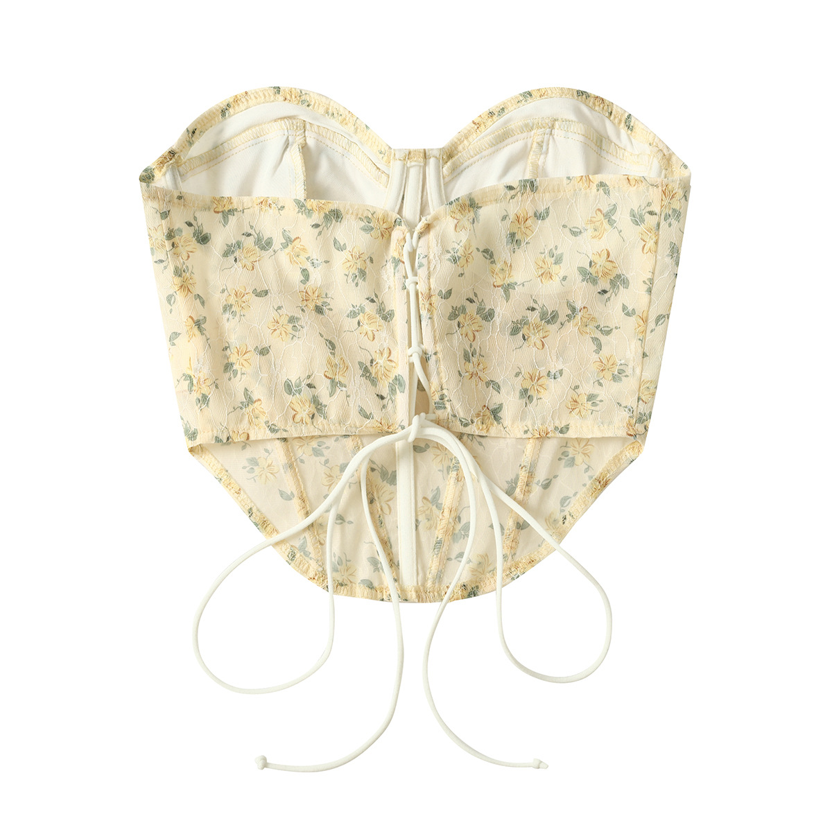 Sexy Mesh See through Shaped Chest Wrapped Steel Ring Boning Corset Waist Tied Vest Women