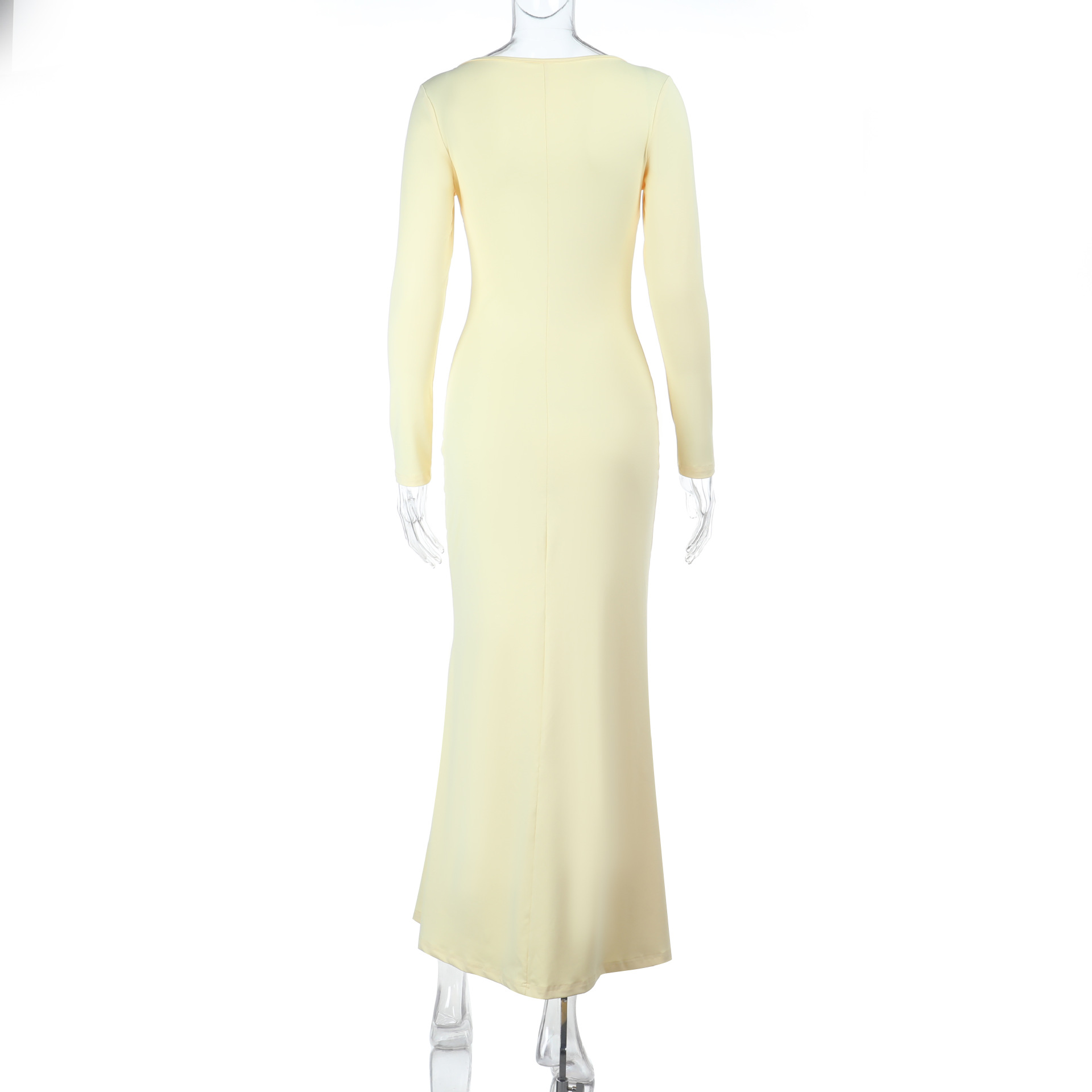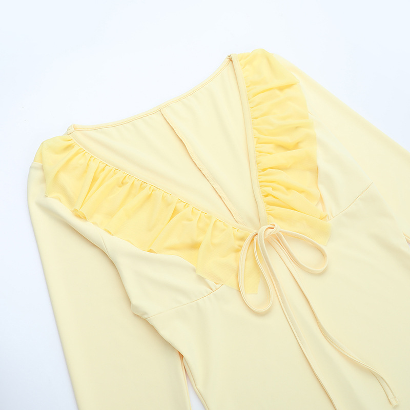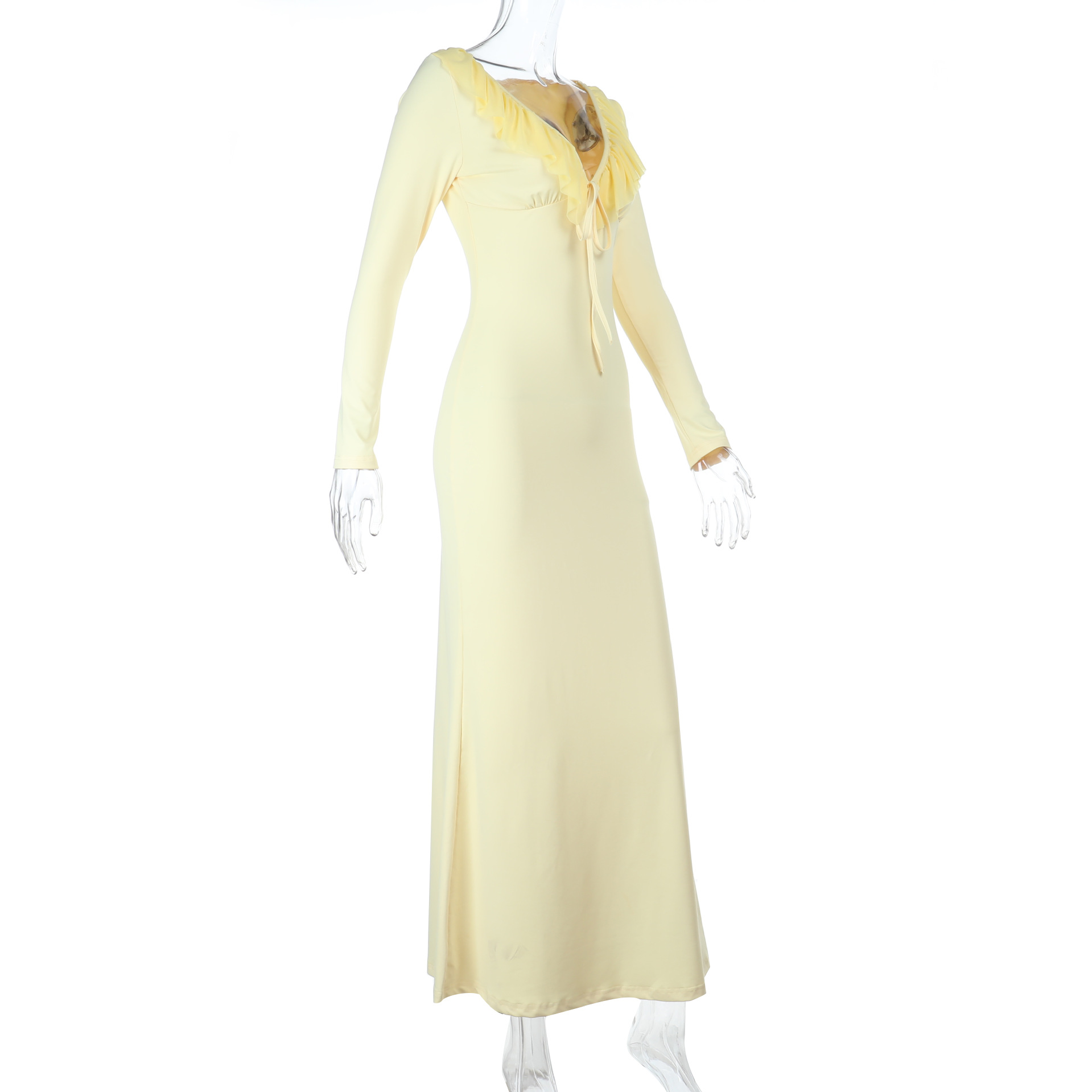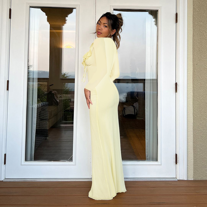 Sexy Ruffled Long Sleeve Slim Stretch Dress Autumn Type Hip Dress