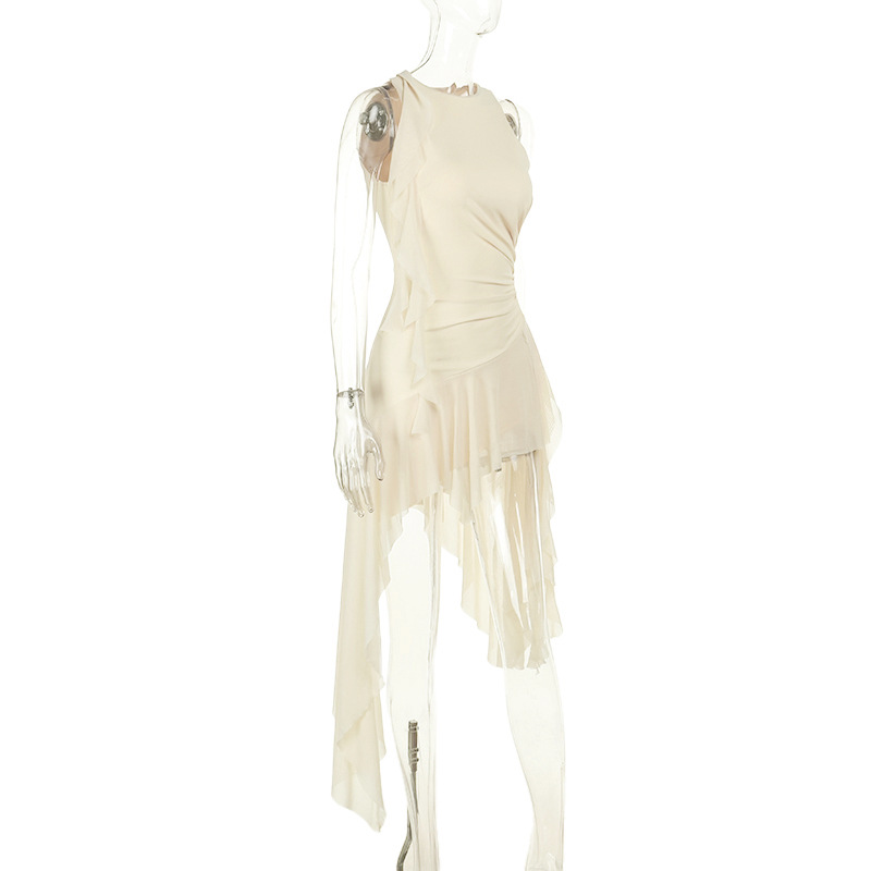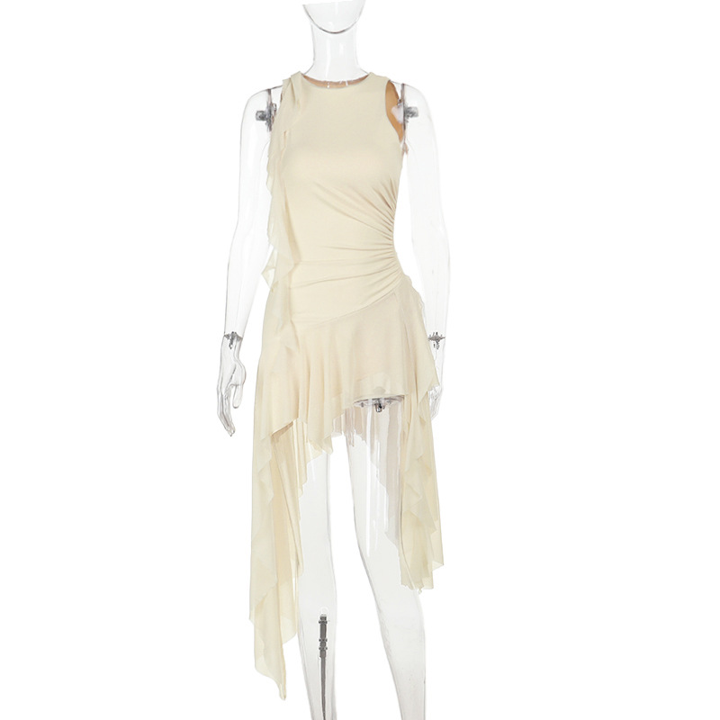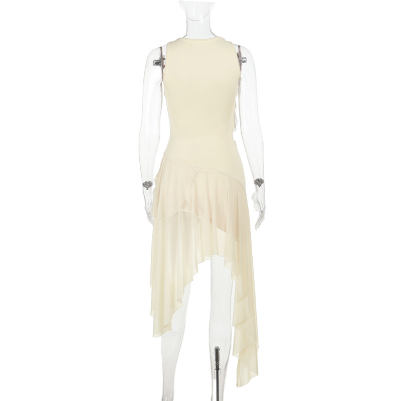Sexy Sleeveless Dress Slim Ribbon Asymmetric Vacation Dress