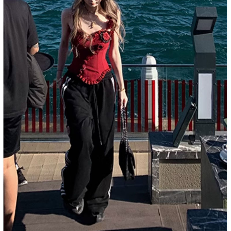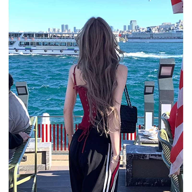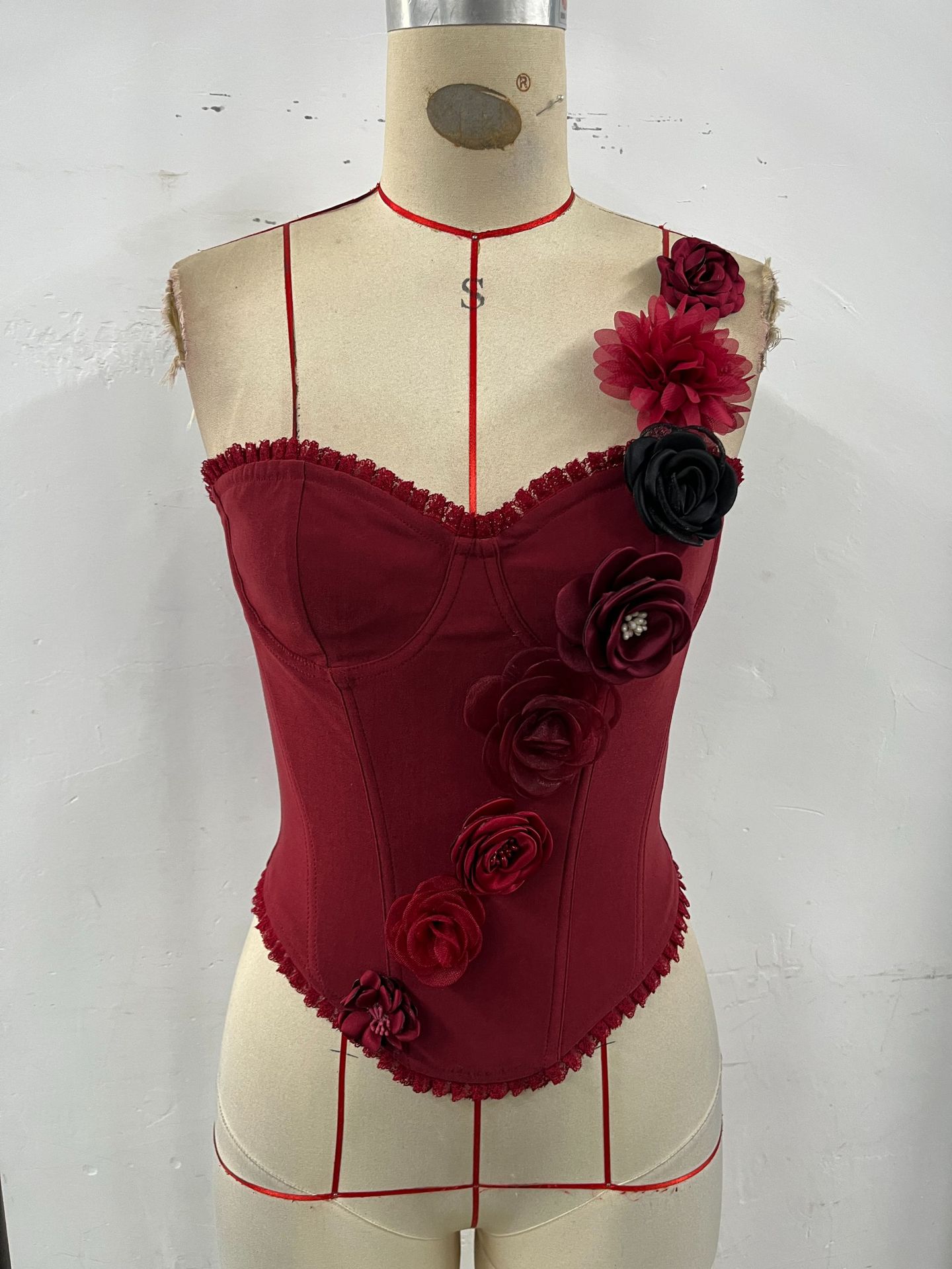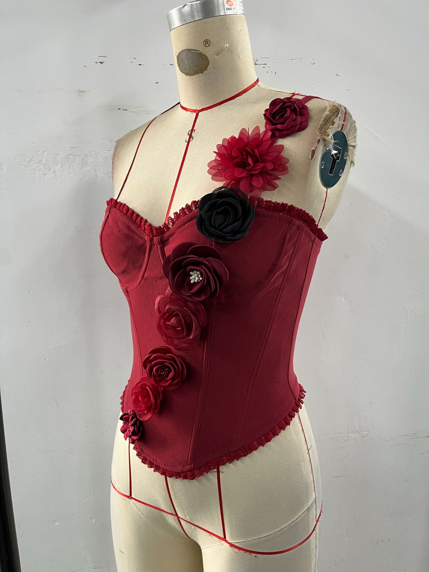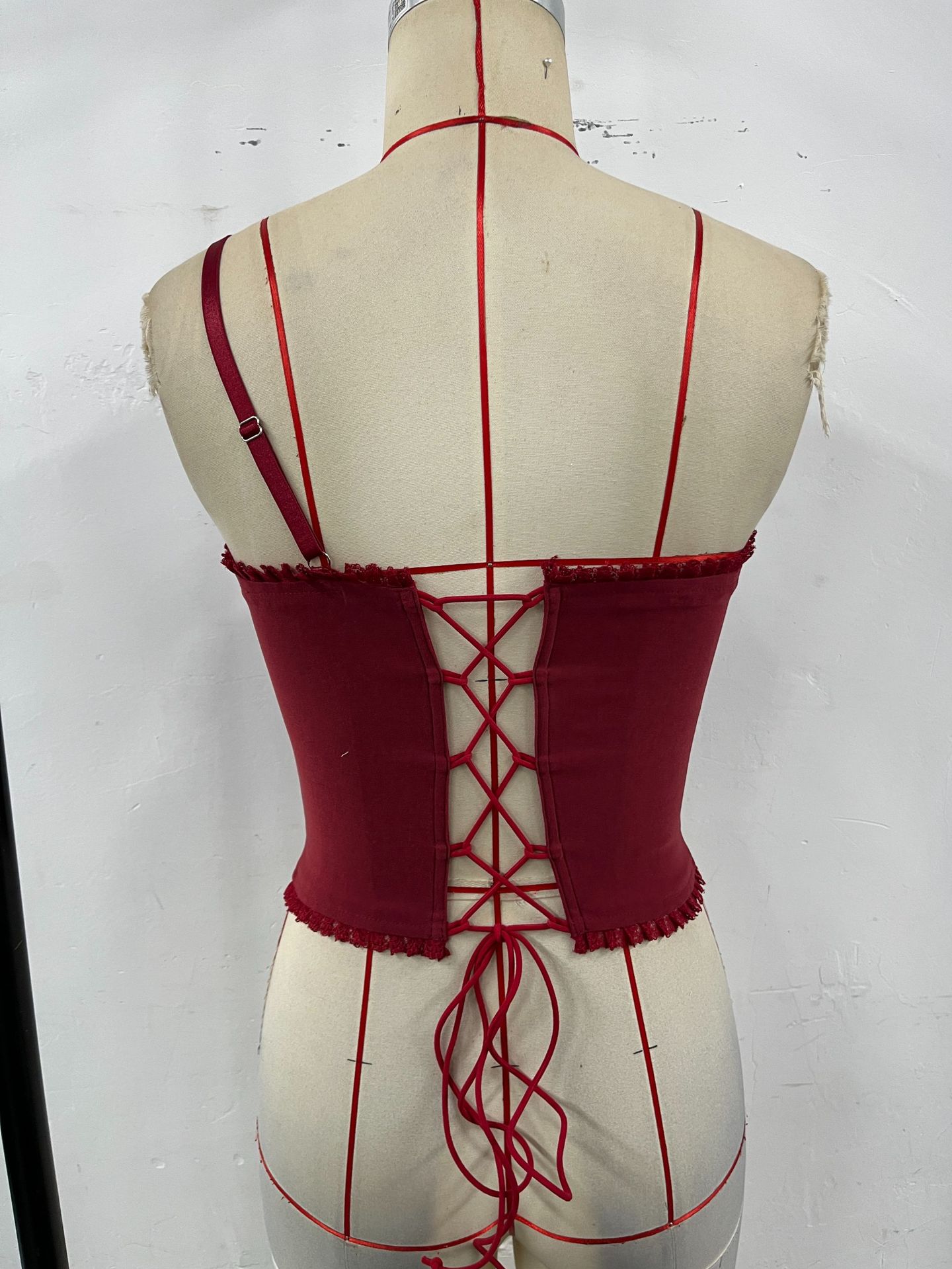 Sexy Street Red Women Three Dimensional Handmade Lace Boning Corset Advanced Tube Top