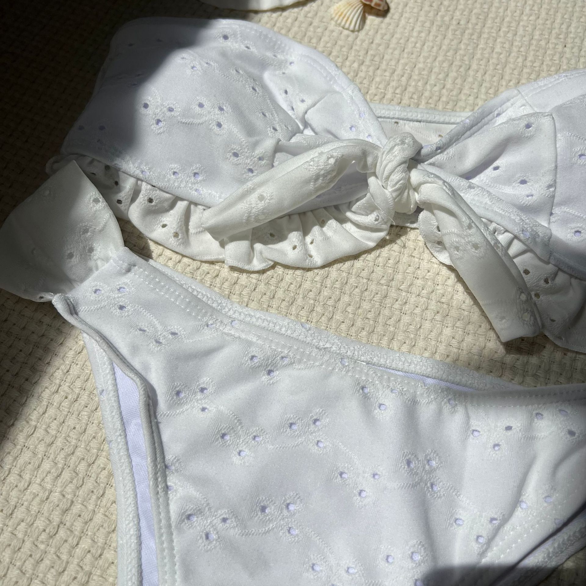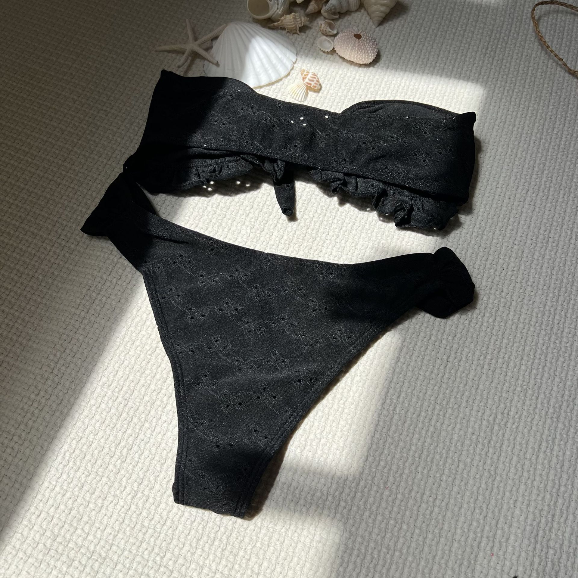 Solid Color Floral Special Fabric Tube Top Split Swimsuit Swimwear Bikini Bikini