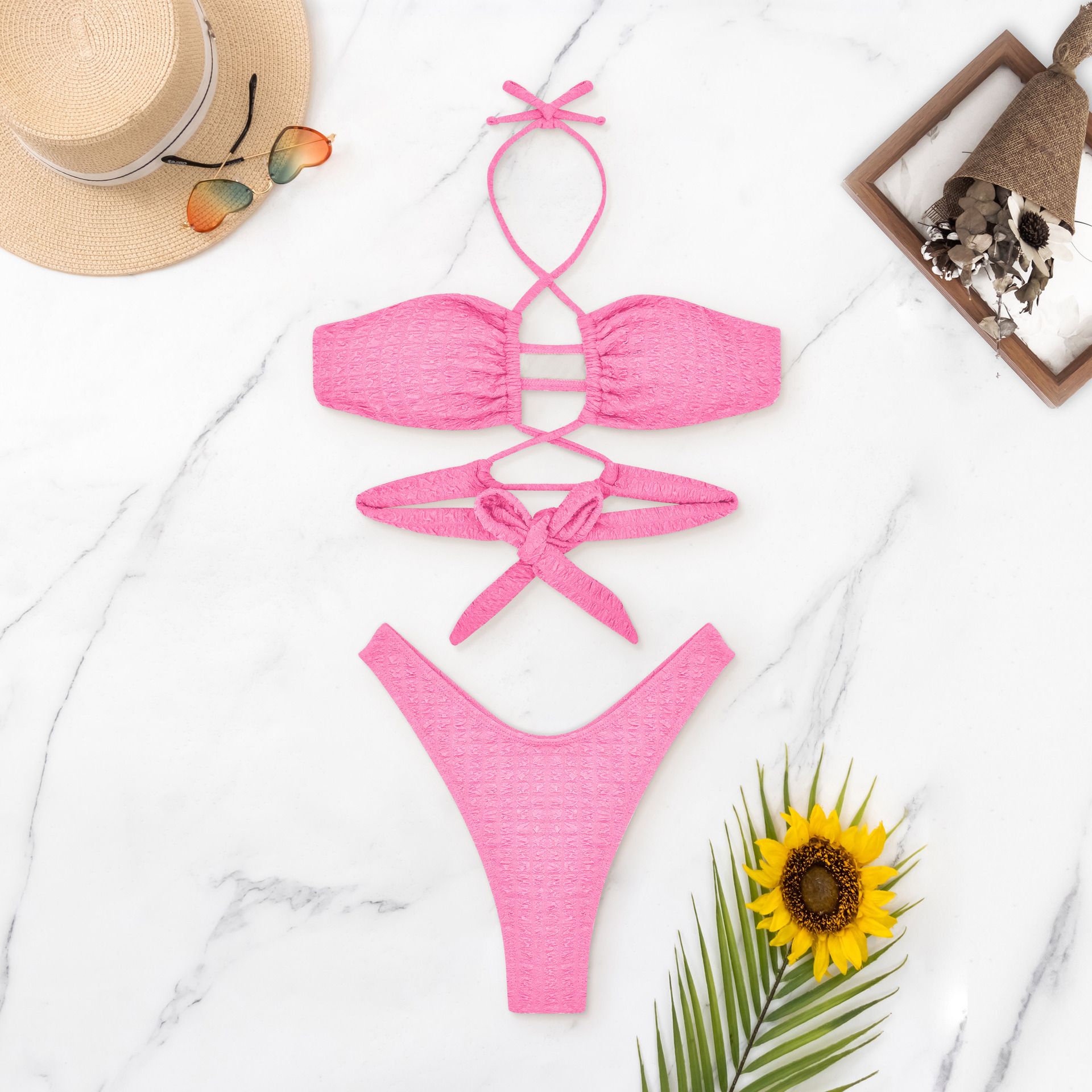 Split Swimsuit Women Sexy Push up Solid Color Bikini Three Point Swimsuit