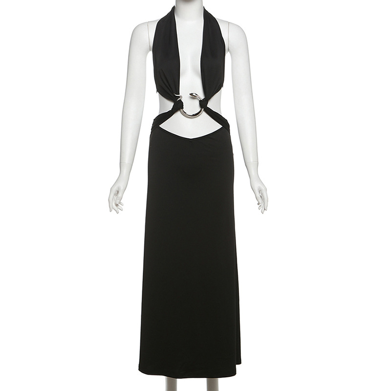 Spring Summer Women Clothing Sexy Halter Deep V Plunge neck Backless Three Dimensional Snake Decoration Dress