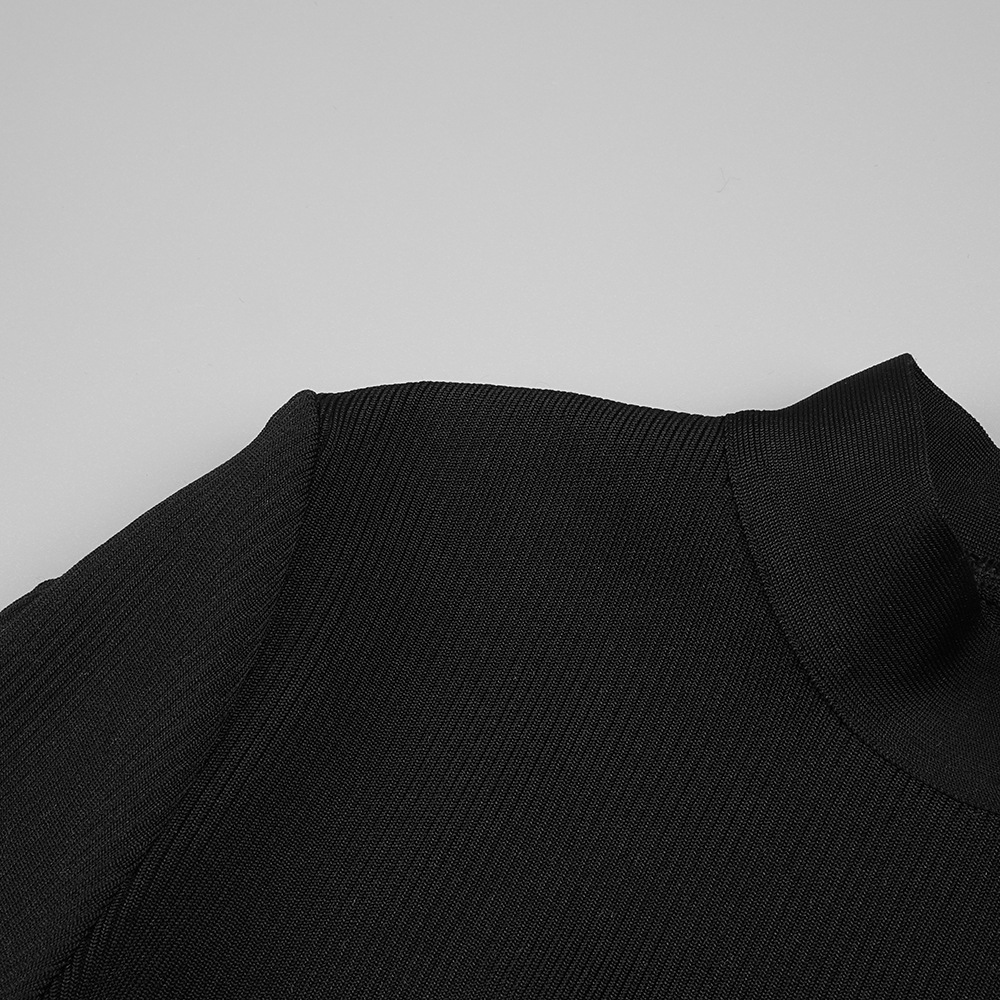 Summer Black Long Sleeve Bowknot Hollow Out Cutout Dark Pattern Cropped Outfit Mini Hip Sexy Women Clothing Dress